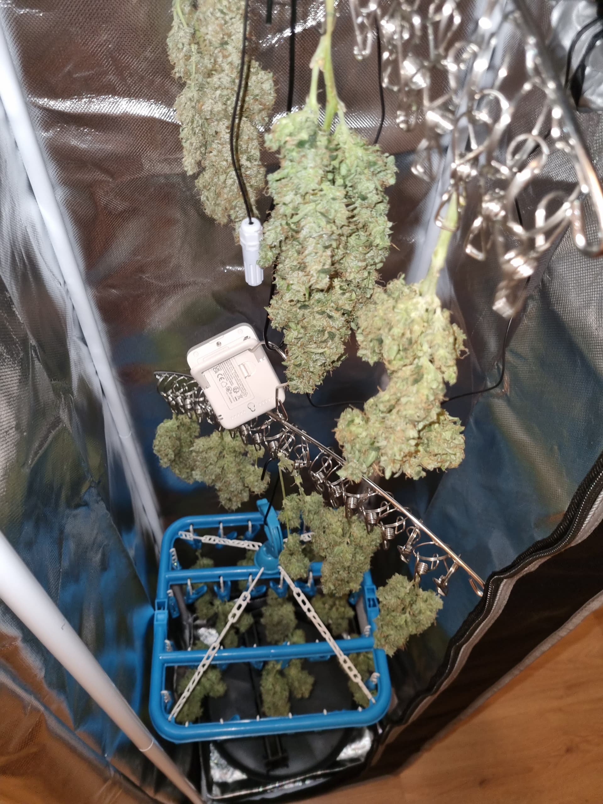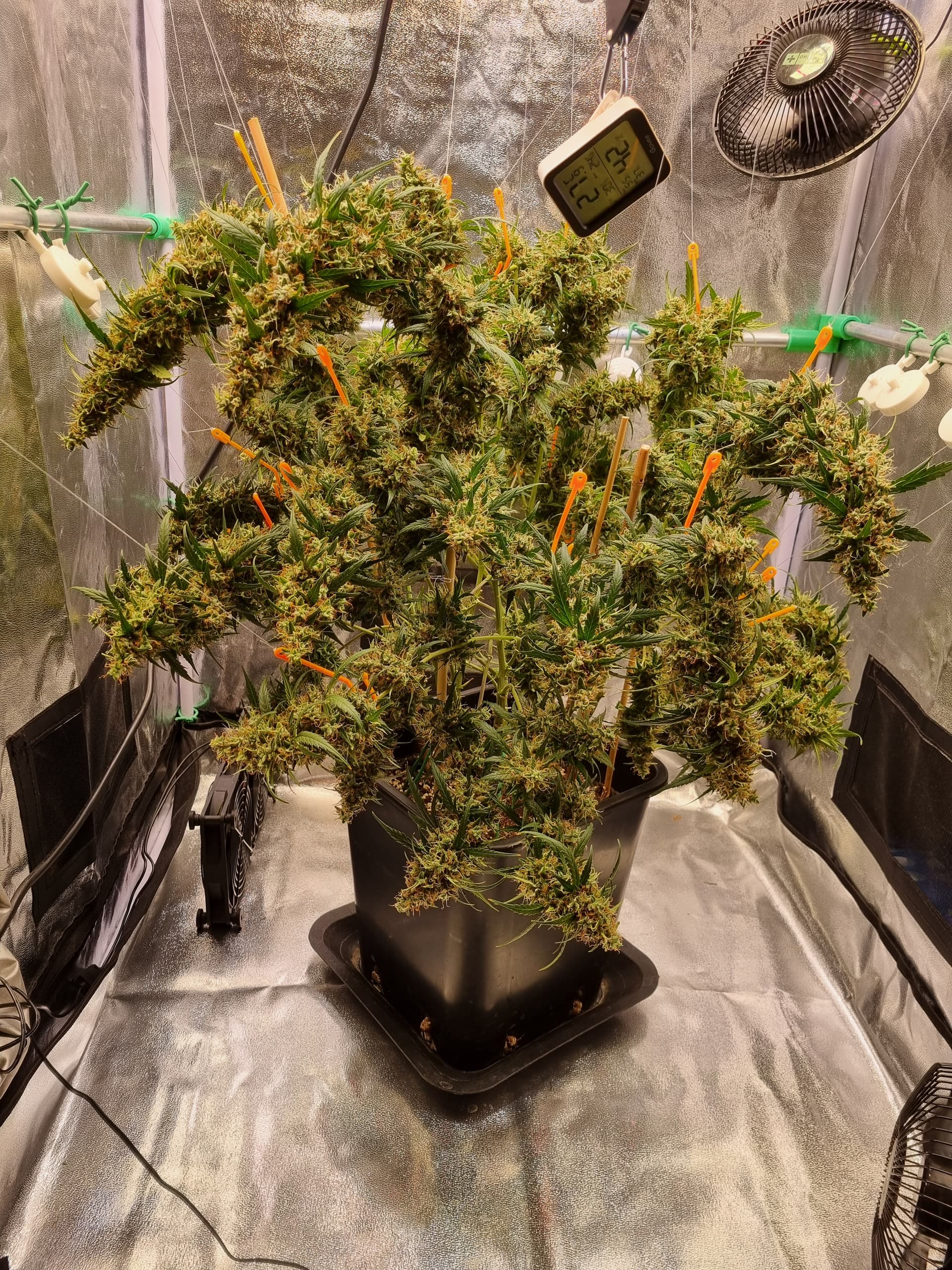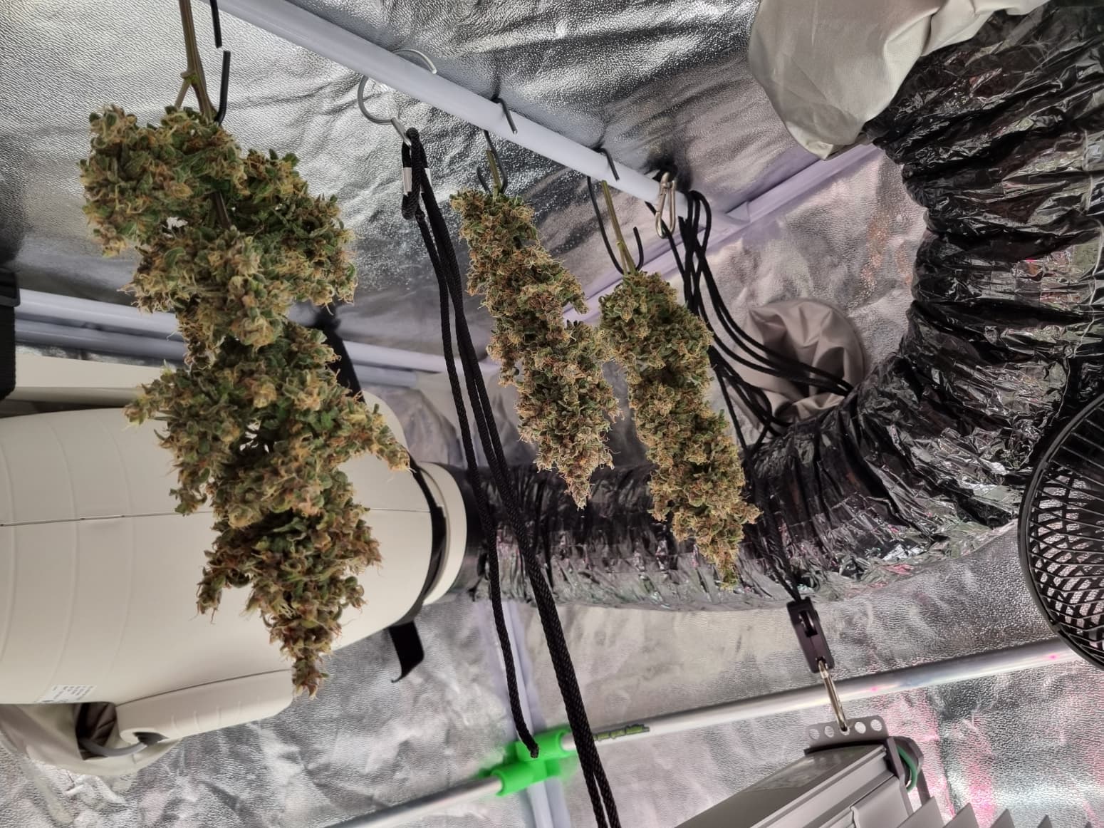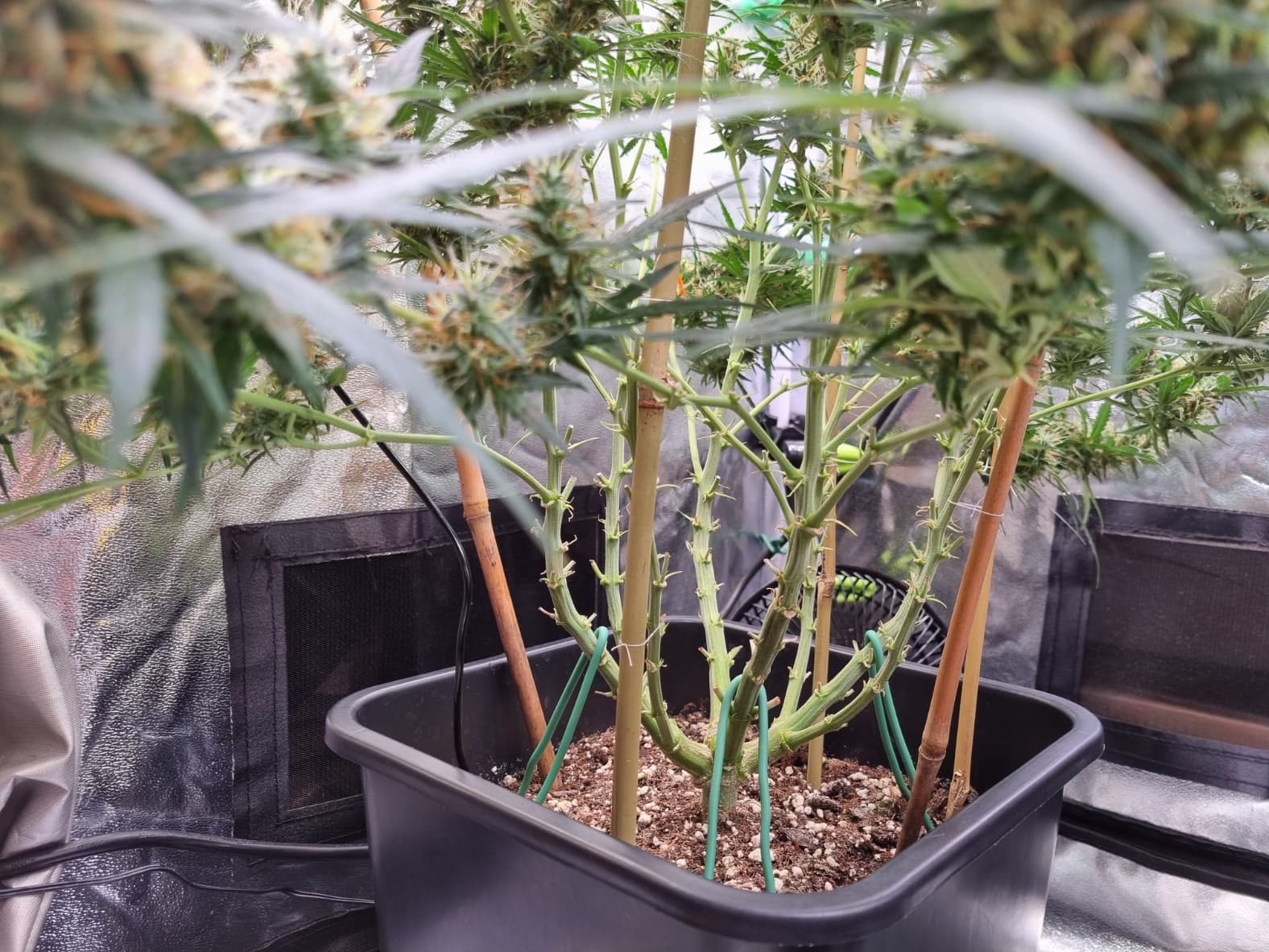 Aber die Triebe von Choco Nr. 2 waren so auch kaum zu bändigen, hinten rankommen sehr schwer, und die Buds hängen immer noch an der Wand.