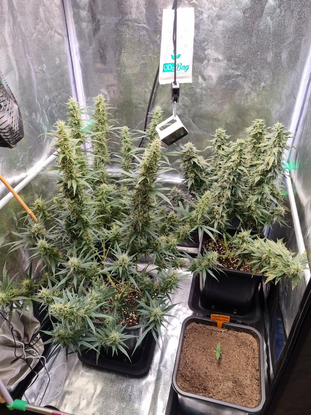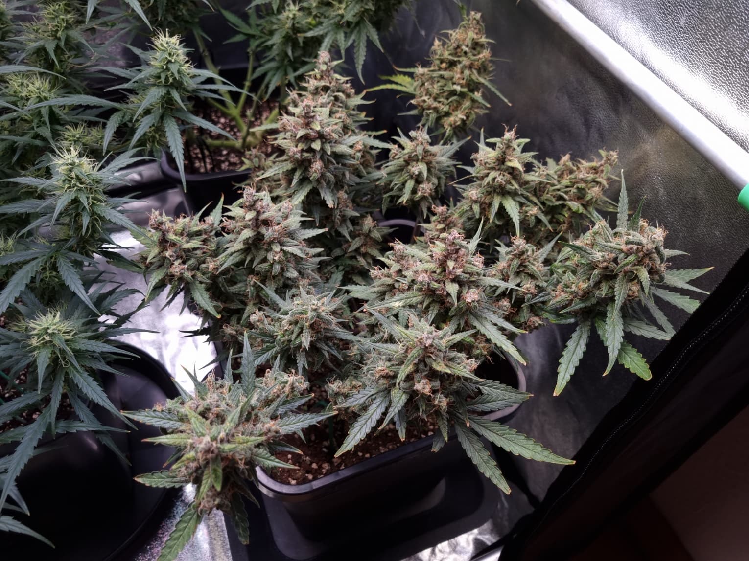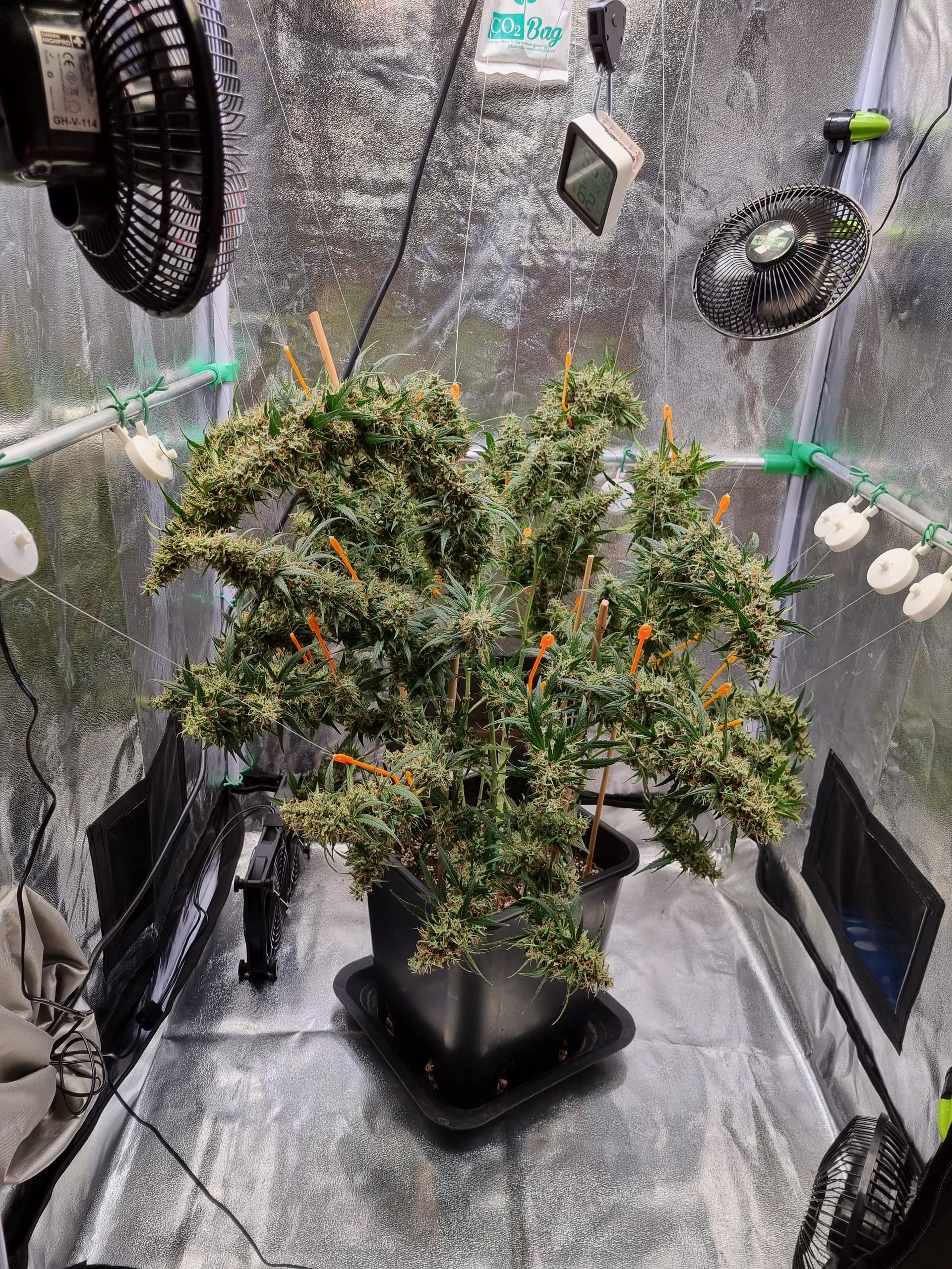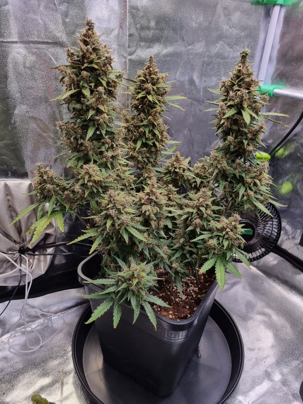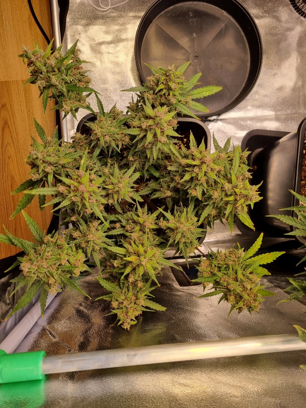 Aber die Triebe von Choco Nr. 2 waren so auch kaum zu bändigen, hinten rankommen sehr schwer, und die Buds hängen immer noch an der Wand.