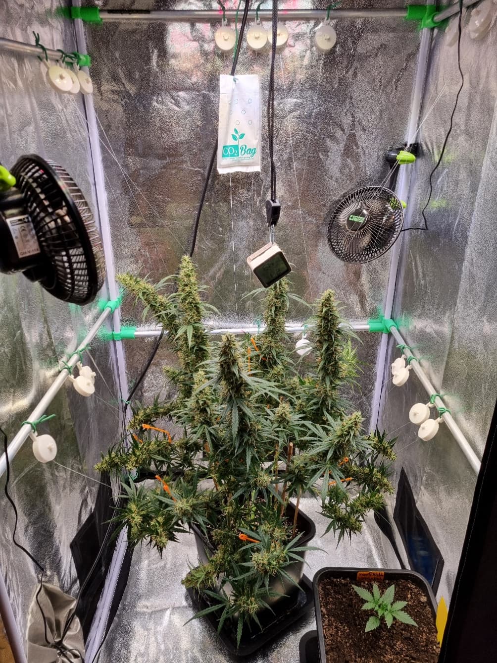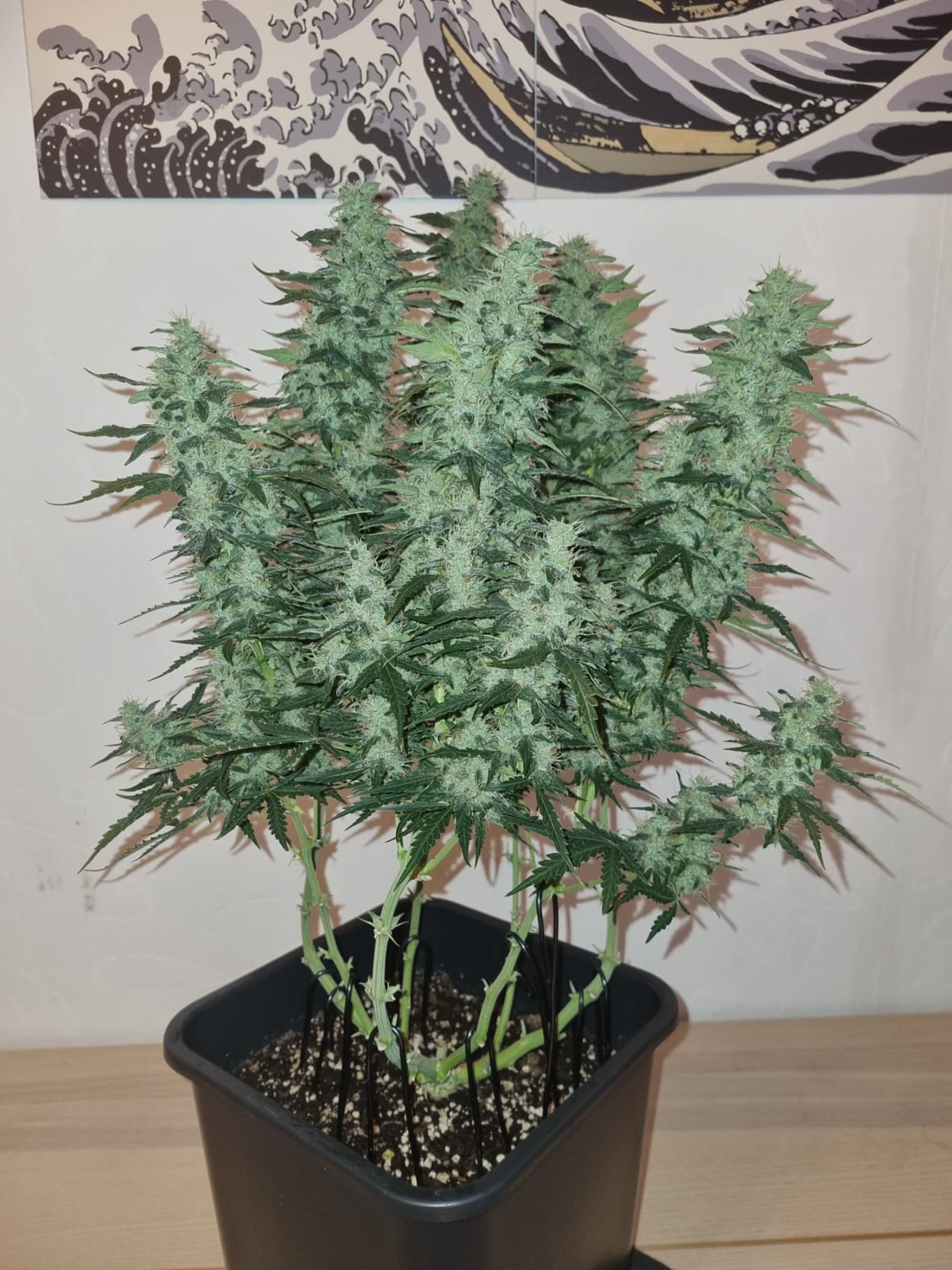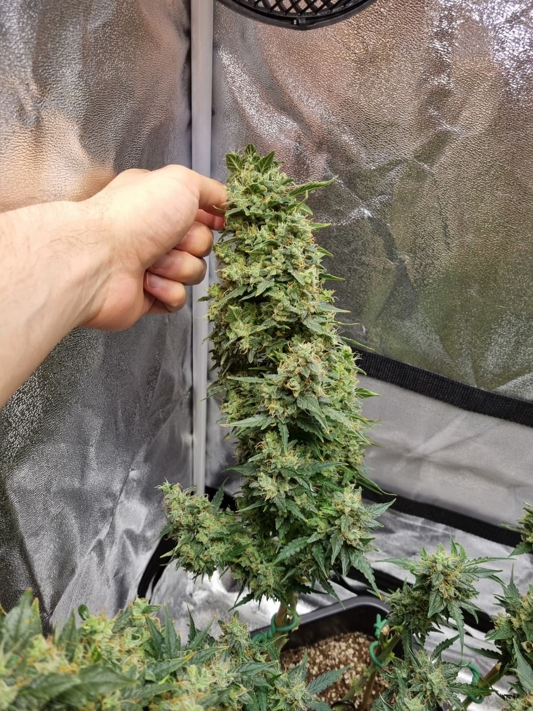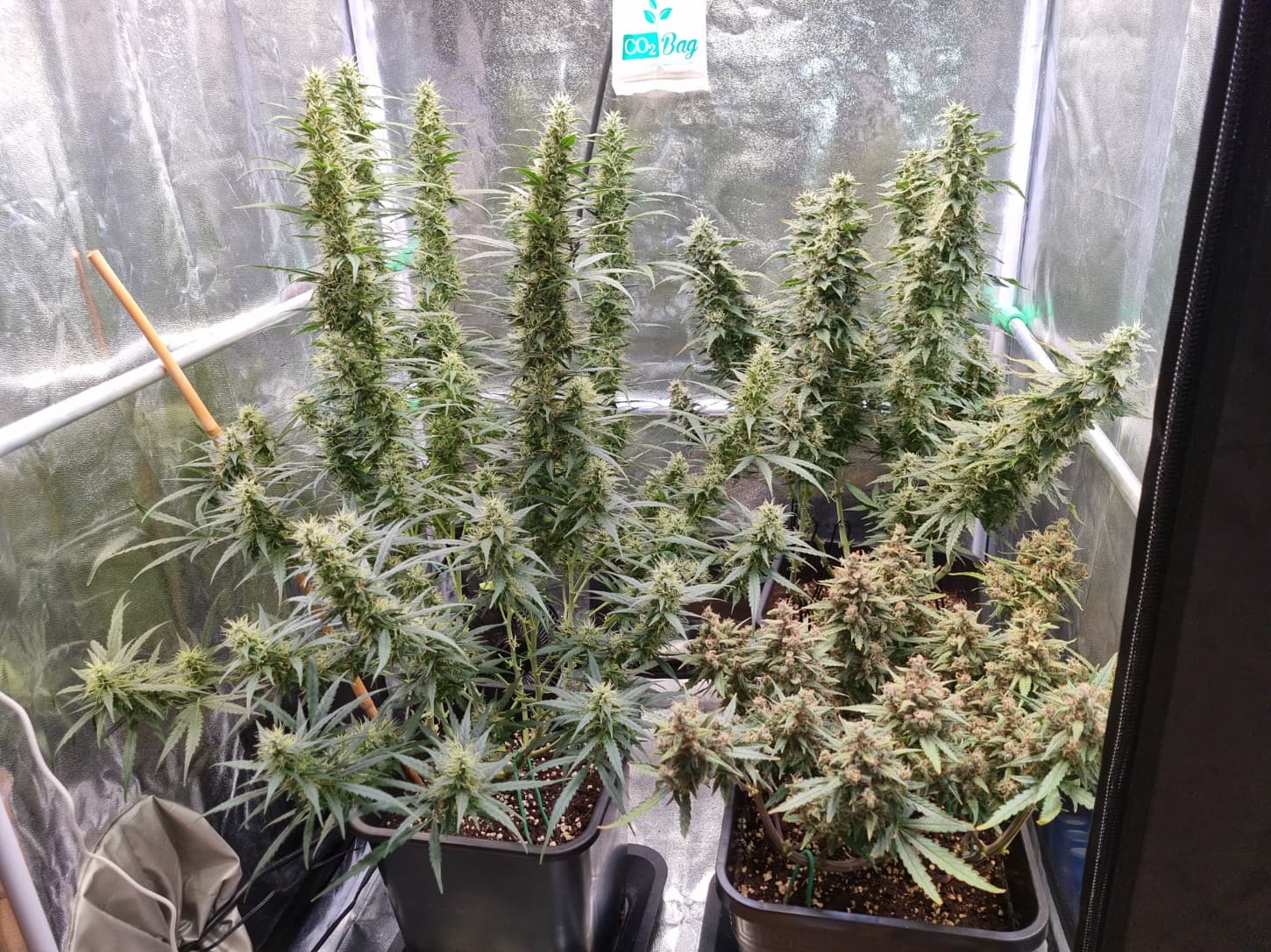 Aber die Triebe von Choco Nr. 2 waren so auch kaum zu bändigen, hinten rankommen sehr schwer, und die Buds hängen immer noch an der Wand.