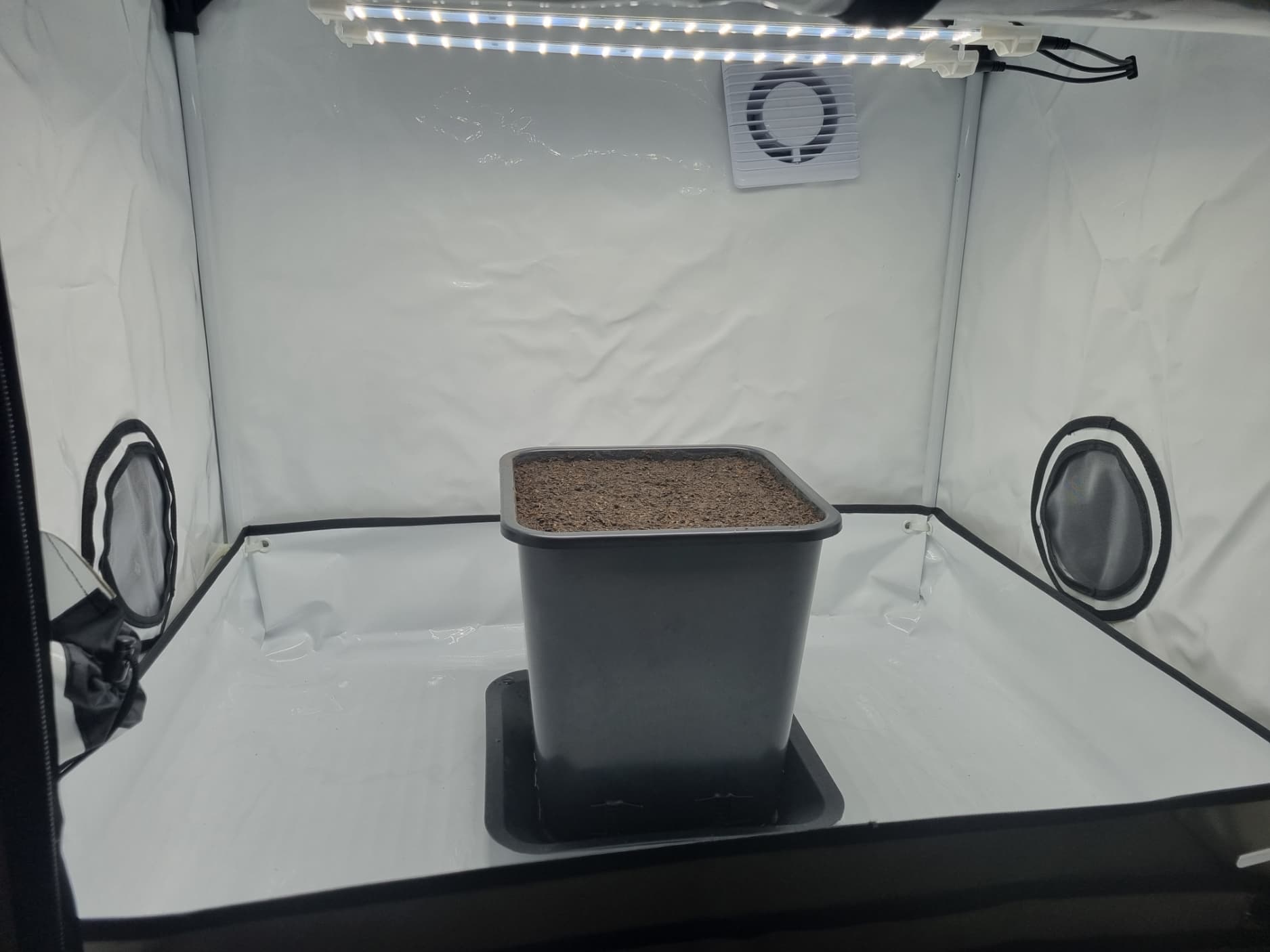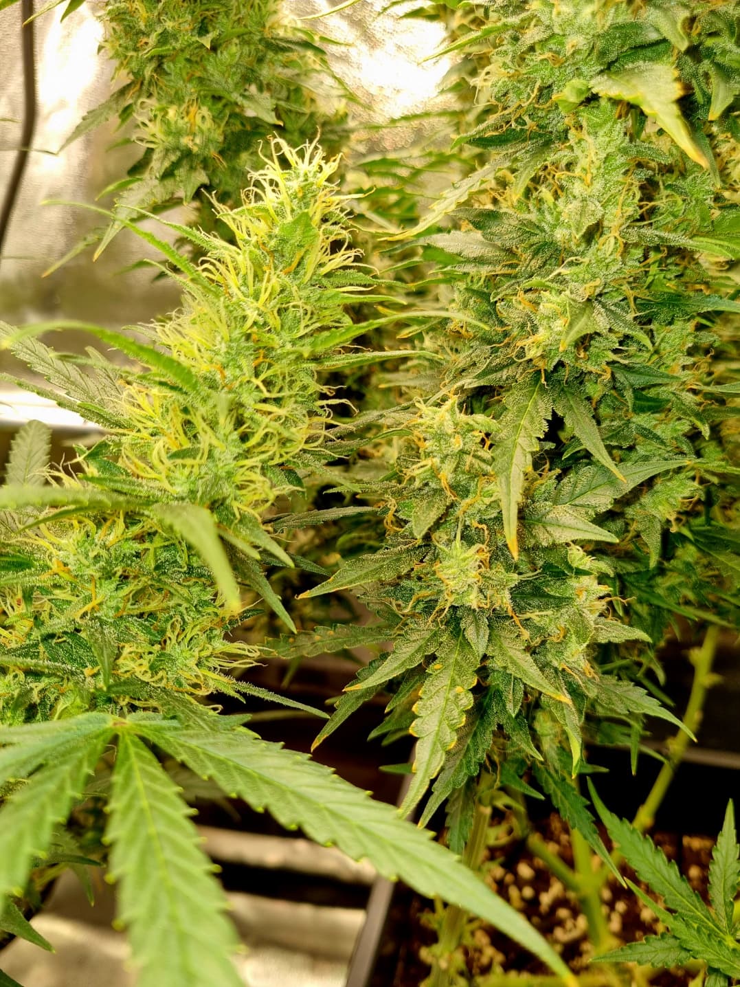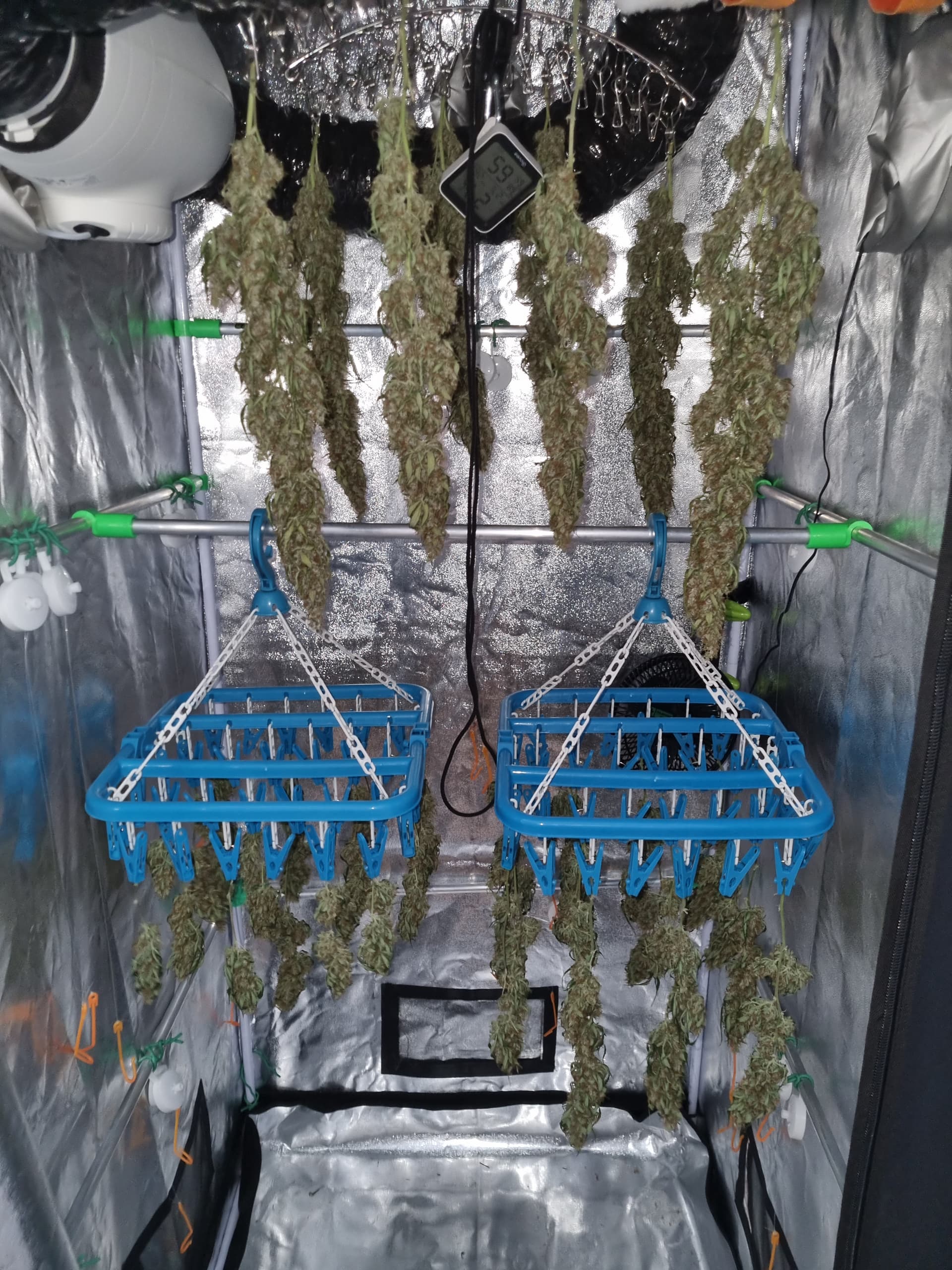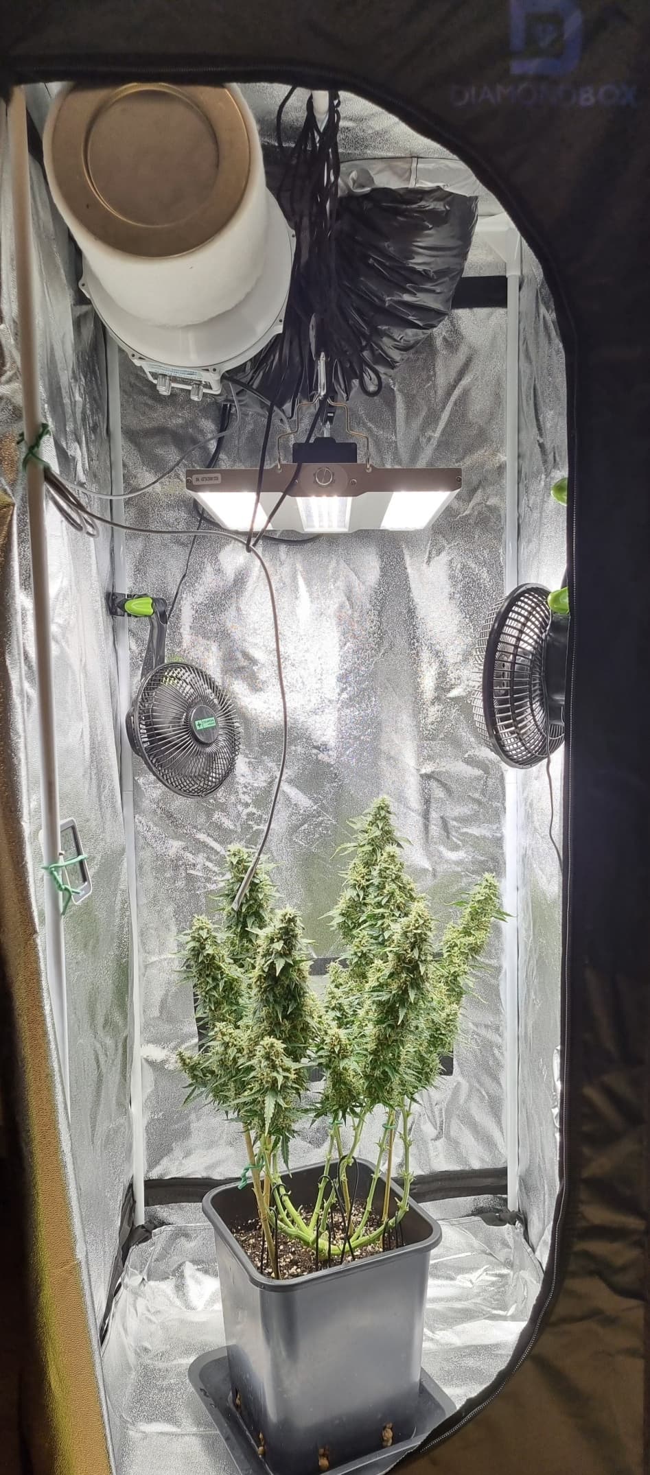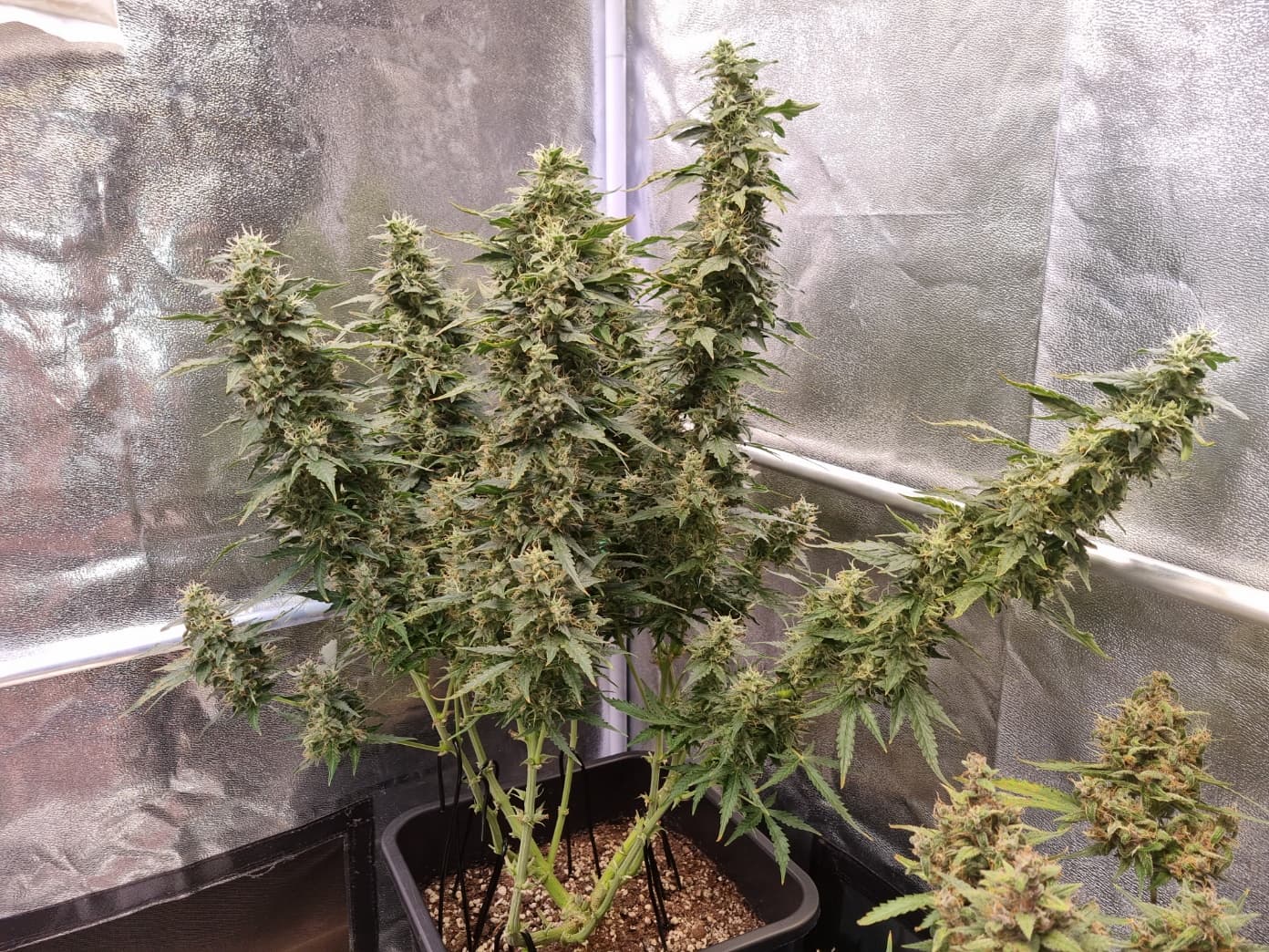 Aber die Triebe von Choco Nr. 2 waren so auch kaum zu bändigen, hinten rankommen sehr schwer, und die Buds hängen immer noch an der Wand.