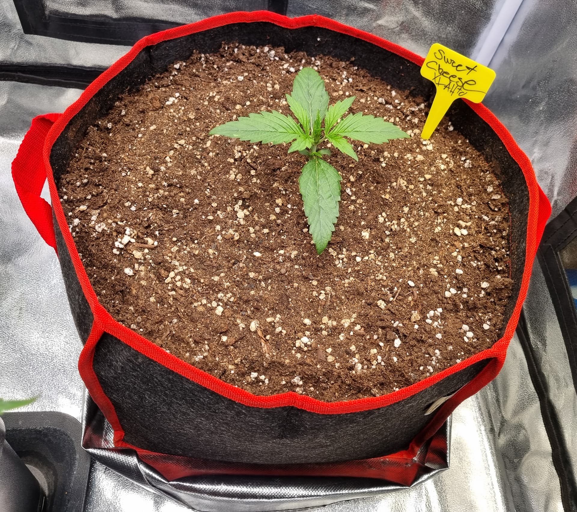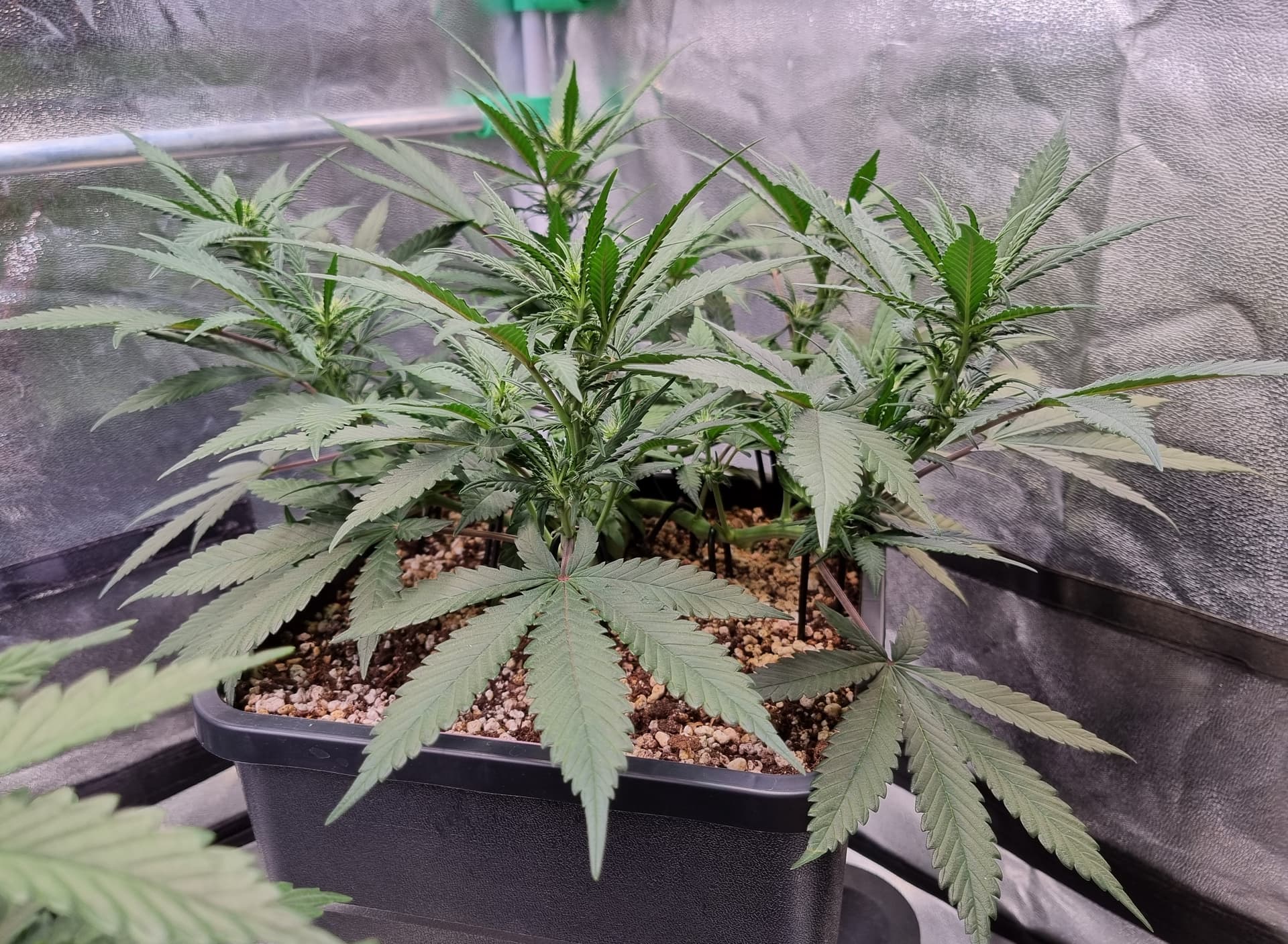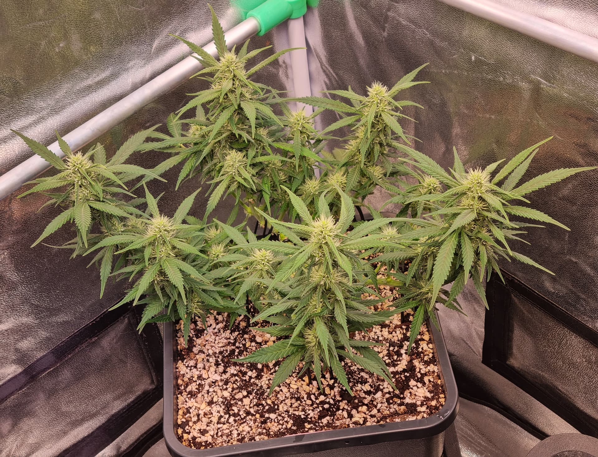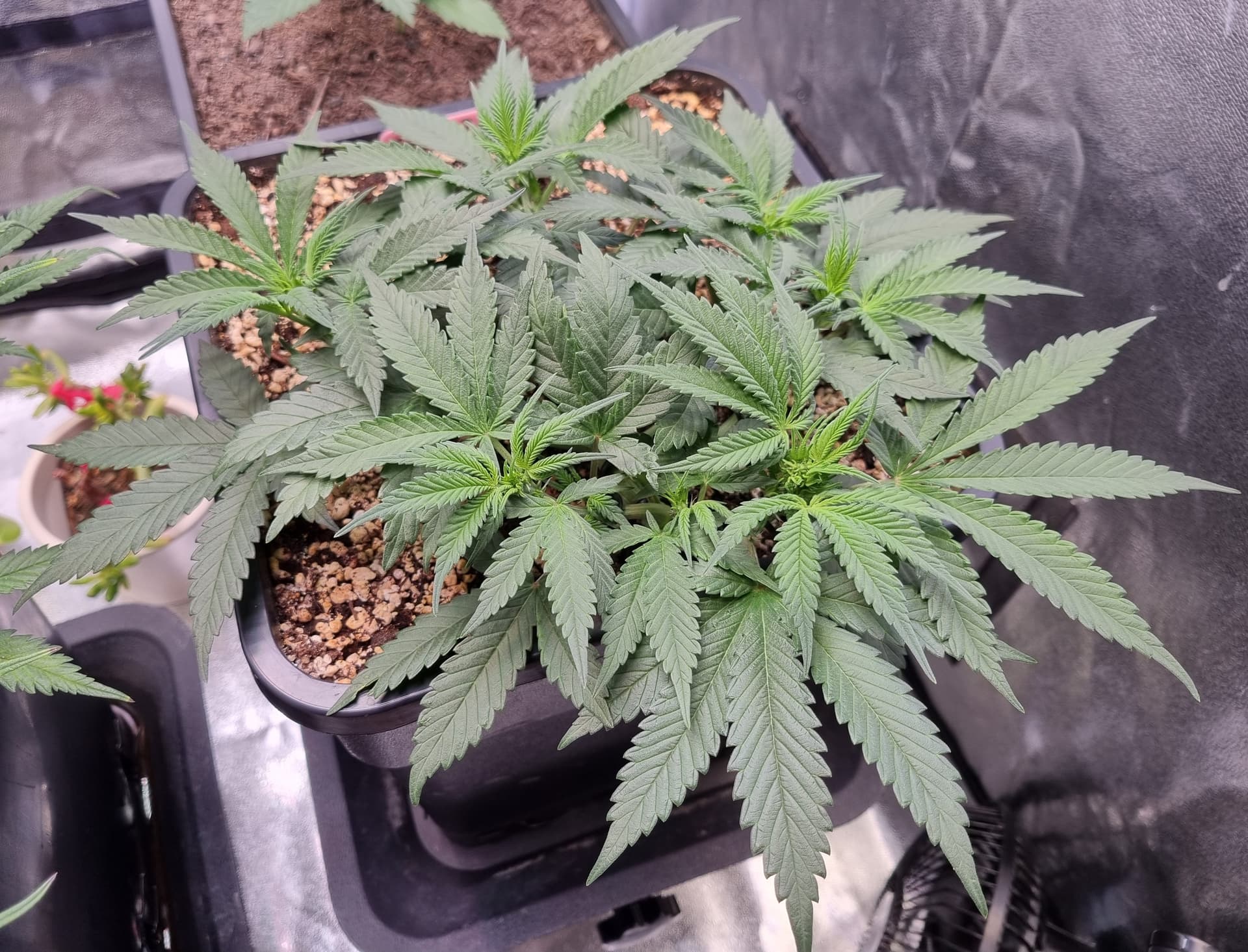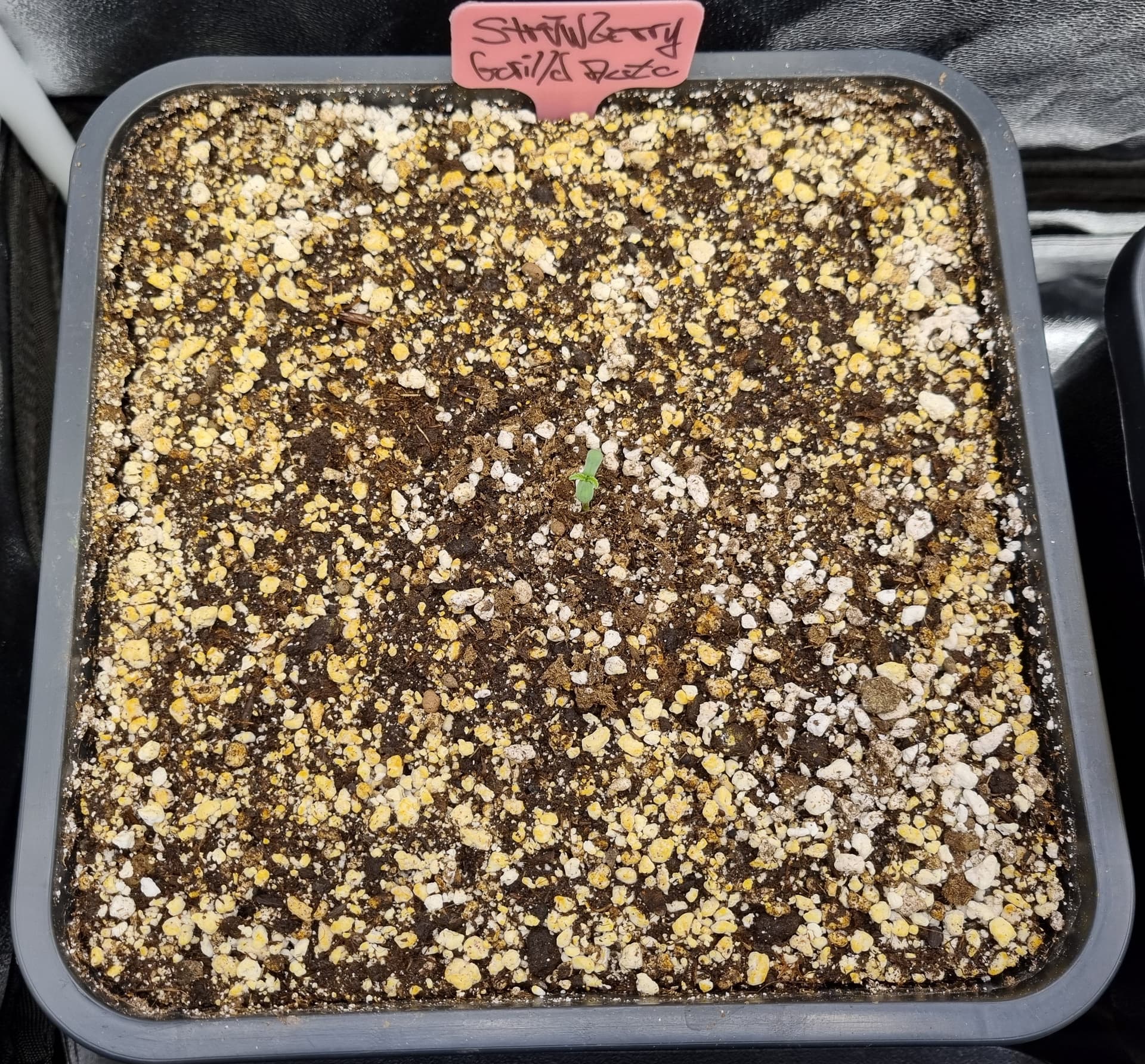 Die Erde besteht zu gleichen Teilen aus Perlite und BB Light Mix, wieder im 11L Pot, Tag 7: