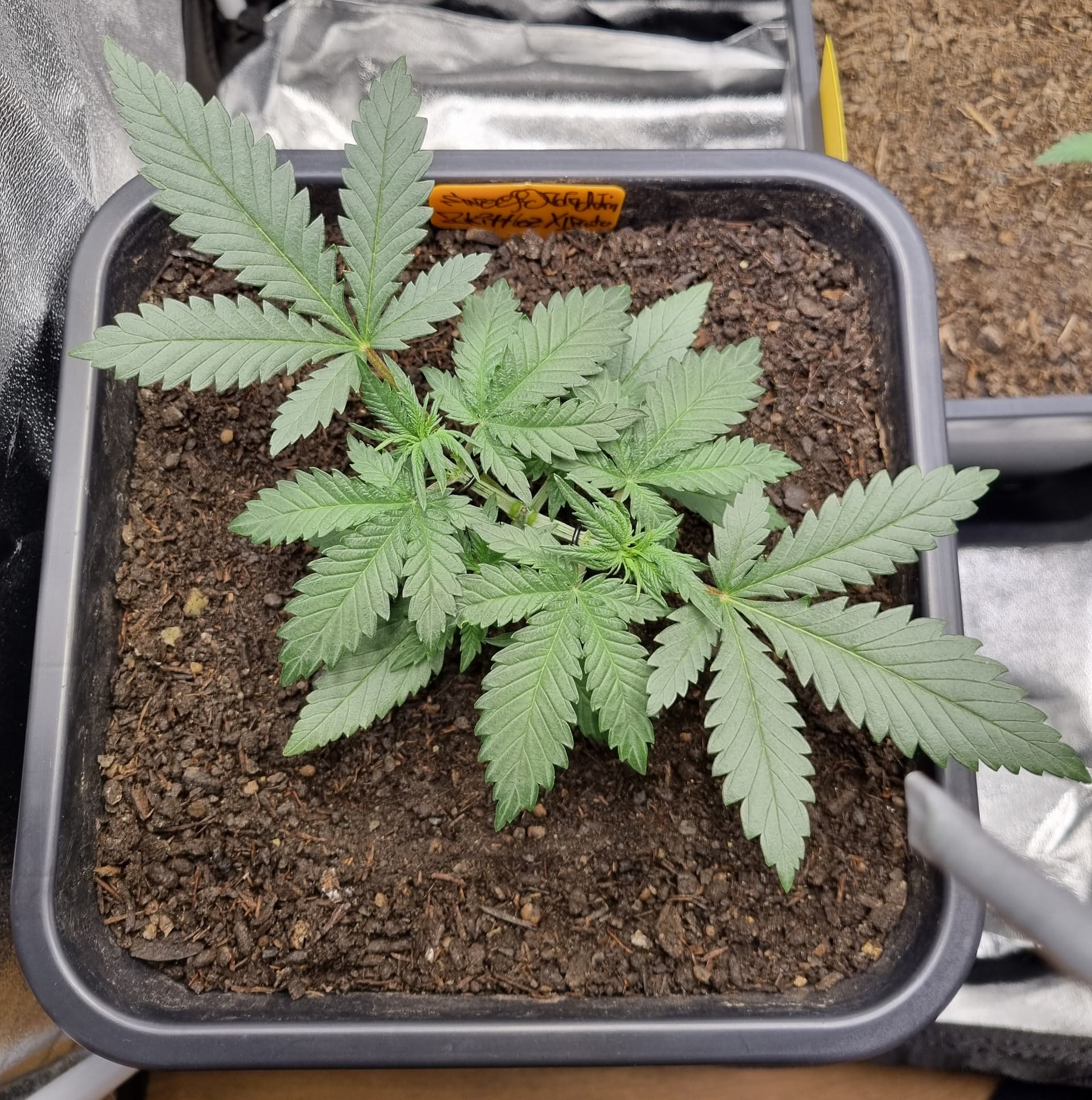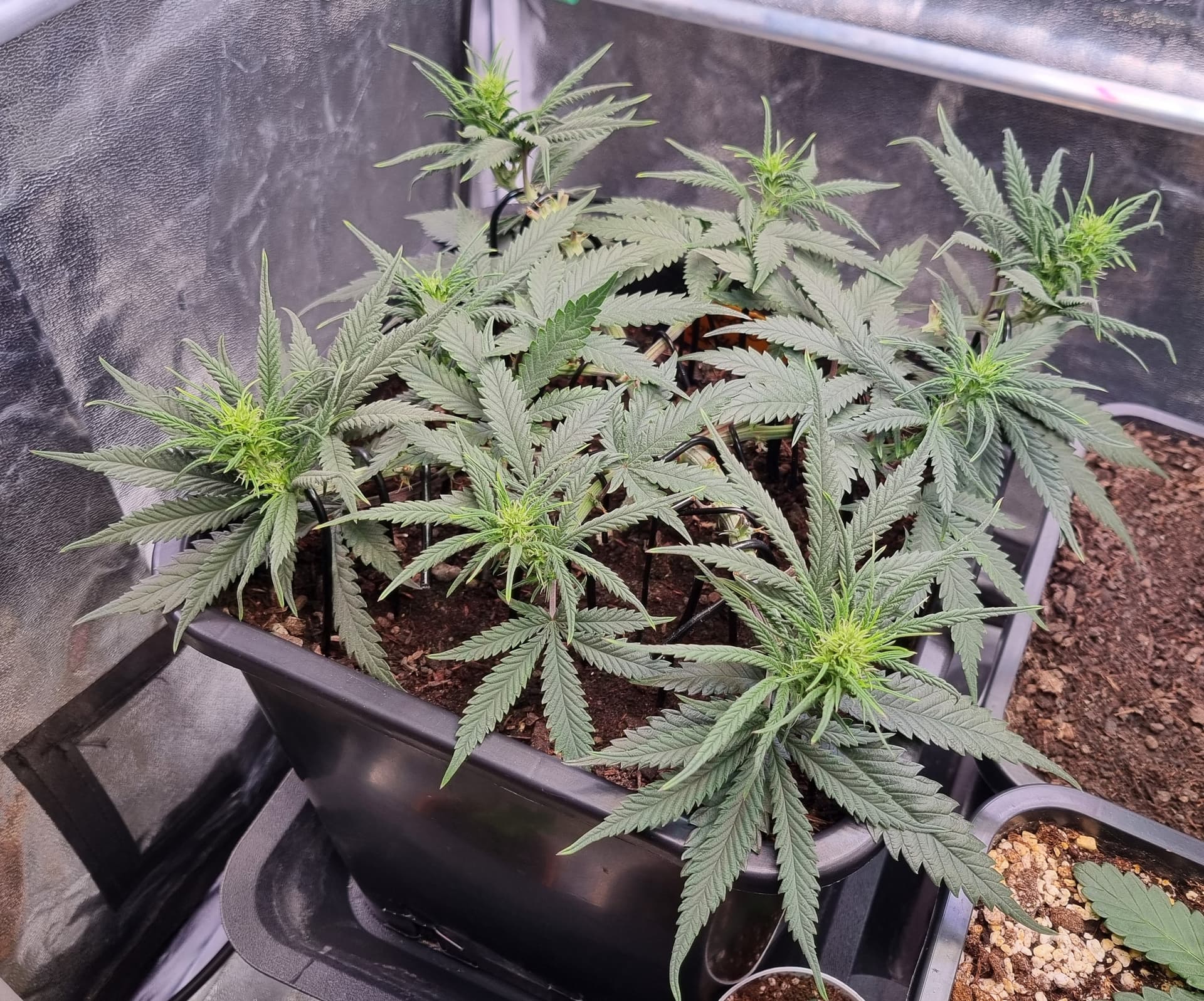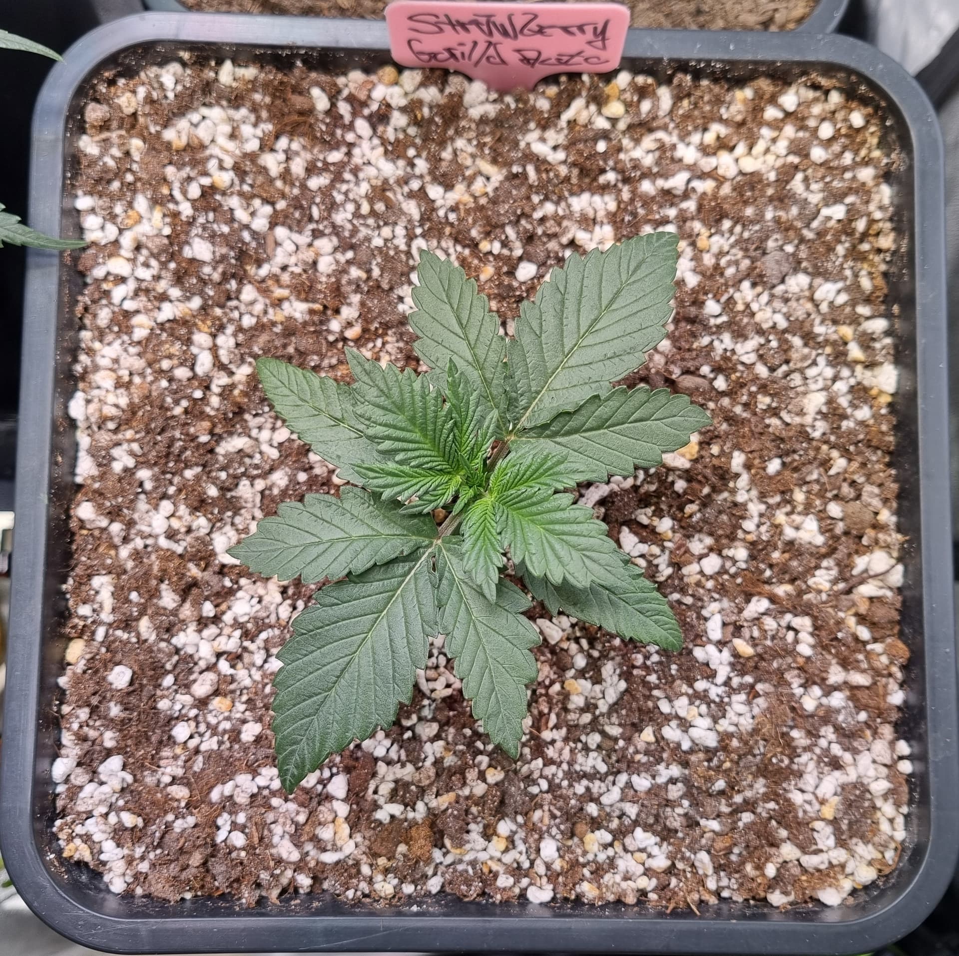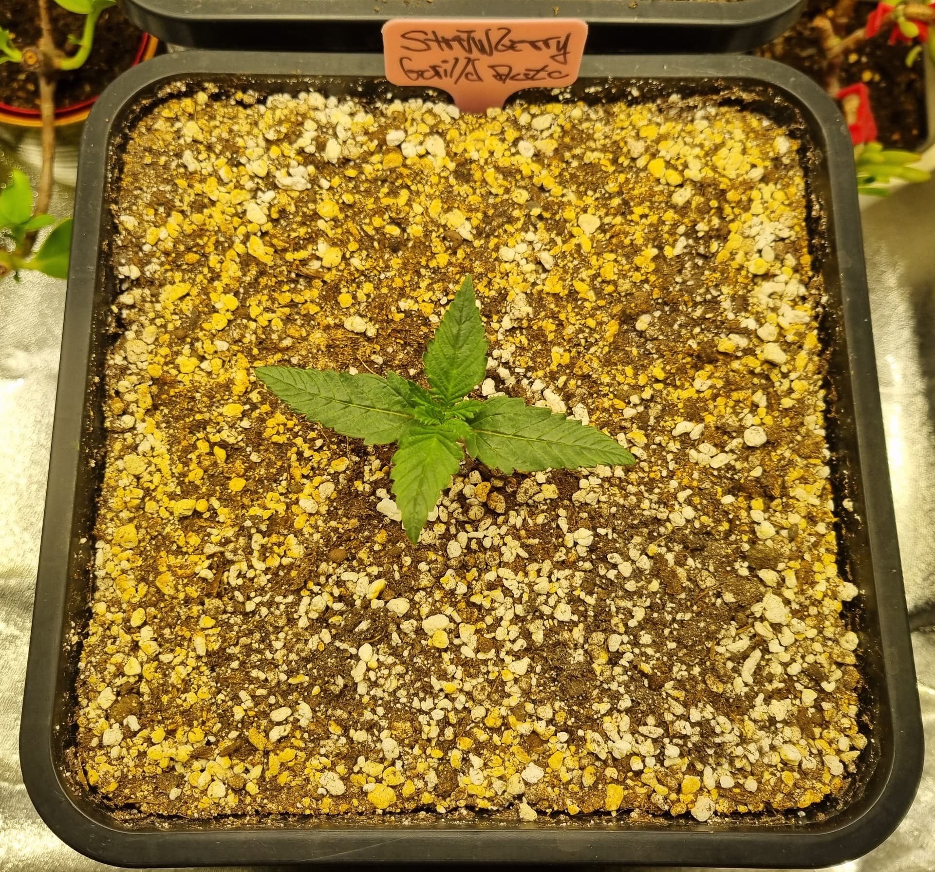 Die Erde besteht zu gleichen Teilen aus Perlite und BB Light Mix, wieder im 11L Pot, Tag 7: