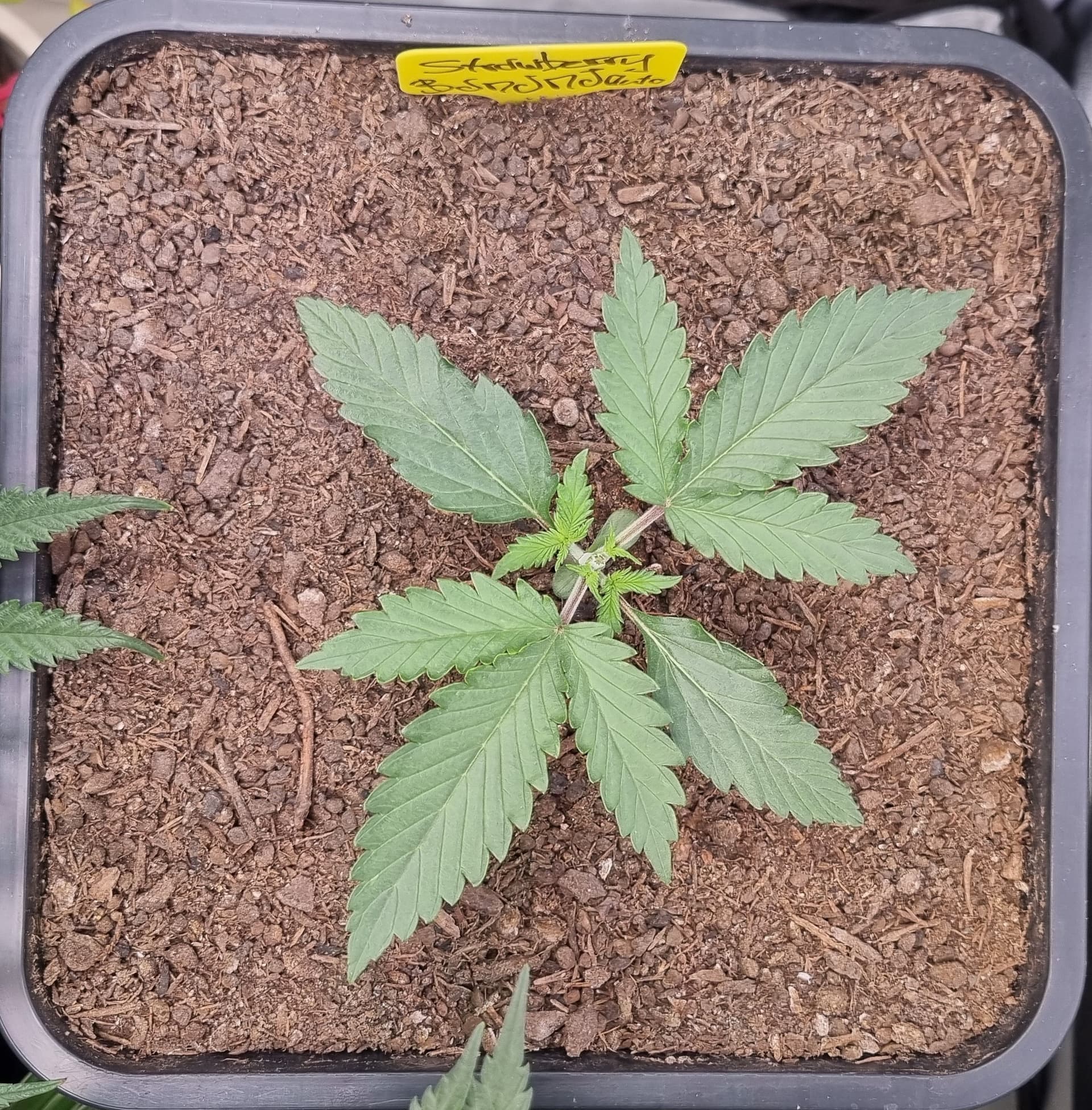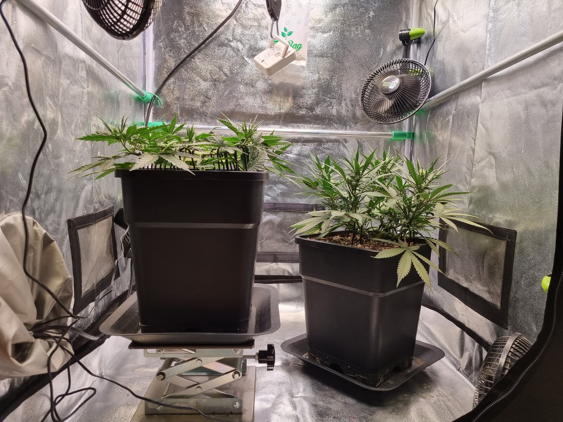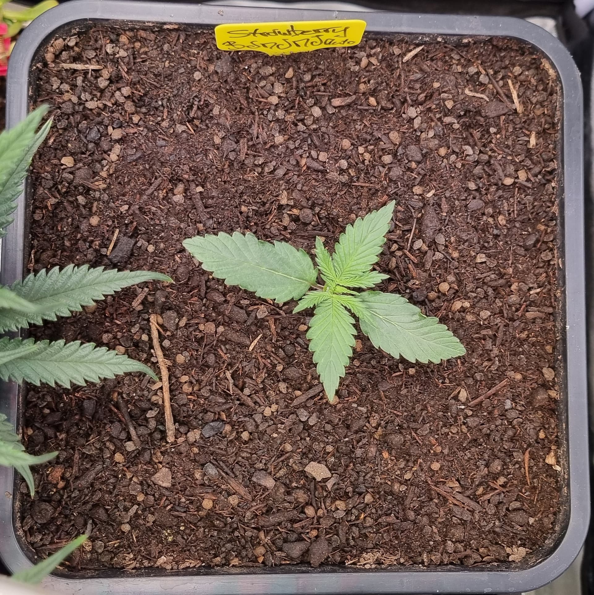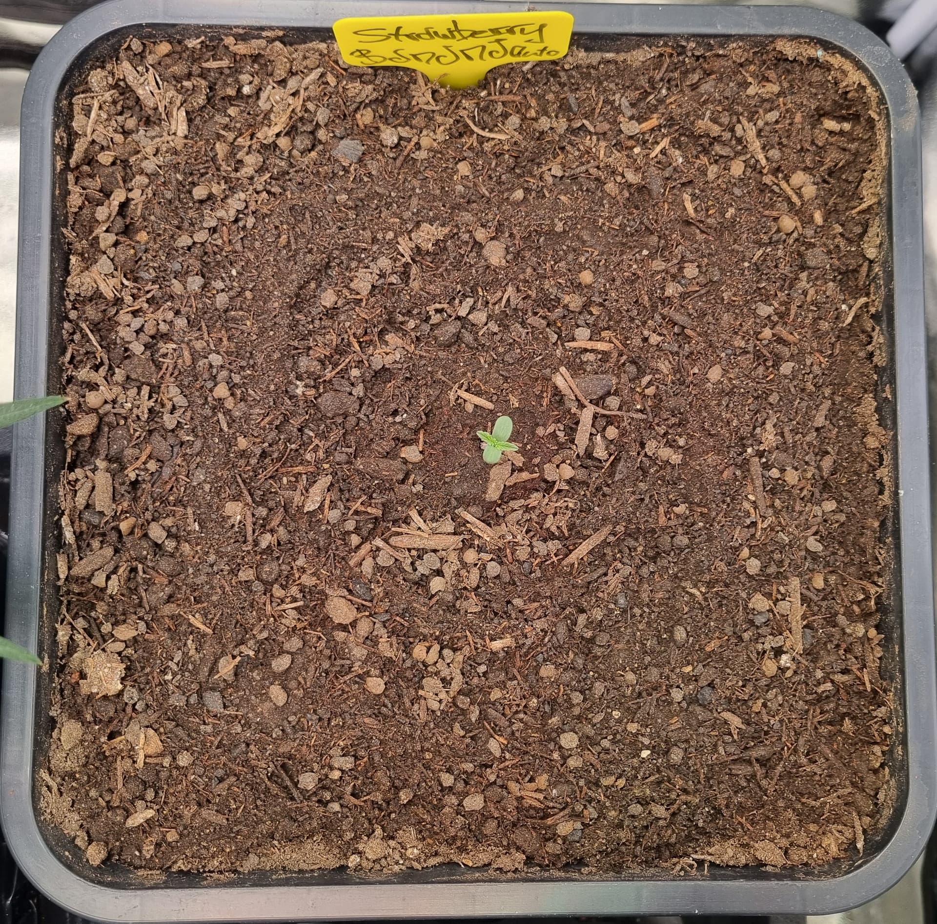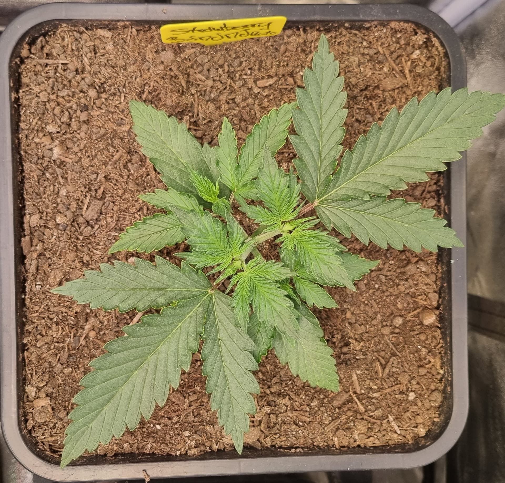 Die Erde besteht zu gleichen Teilen aus Perlite und BB Light Mix, wieder im 11L Pot, Tag 7: