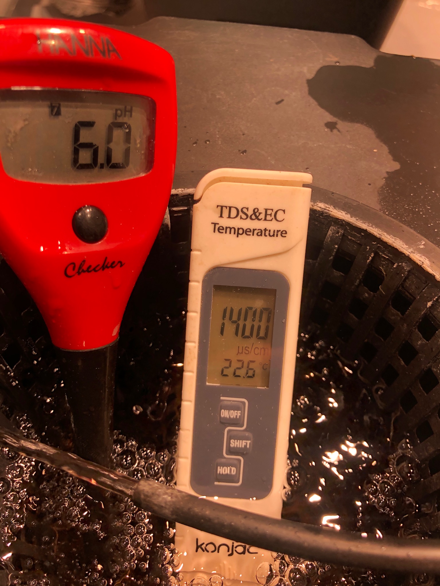 Temperatur der Nährlösung beim einstellen 25 grad, pH 6.00 Ec 1.4