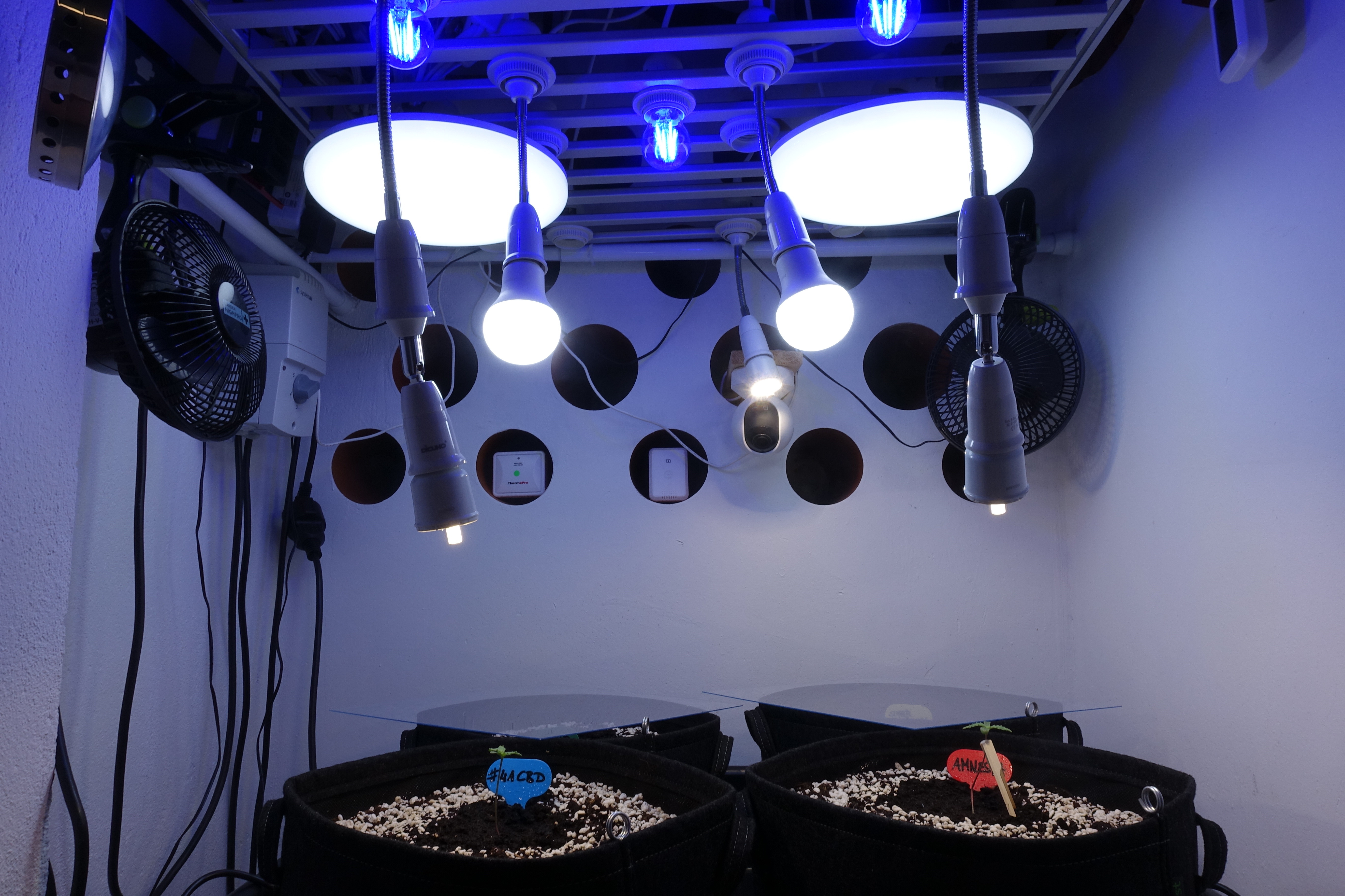 Habe die Lampe ein wenig nach unten gezogen, die 6.500K ESL gegen ebenso kalte LED ausgetauscht und den beiden Erstgeschlüpften ne 4.000K Dusche spendiert.