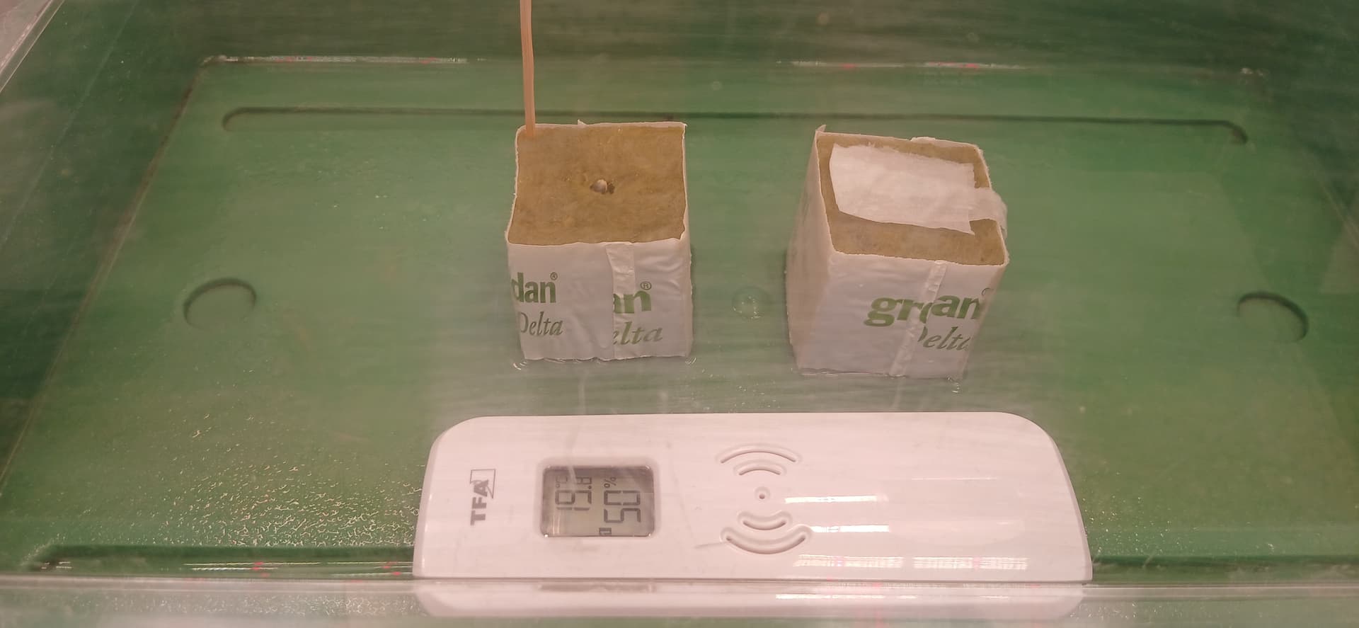 Die Samen sind jetzt im Küchenschrank zum keimen diesmal haben wir auch das Wasser zum keimen auf ph wert 6 gebracht. Habe ich noch nie gemacht ist das erste mal. Hier noch ein paar Bilder für die erste Reihe