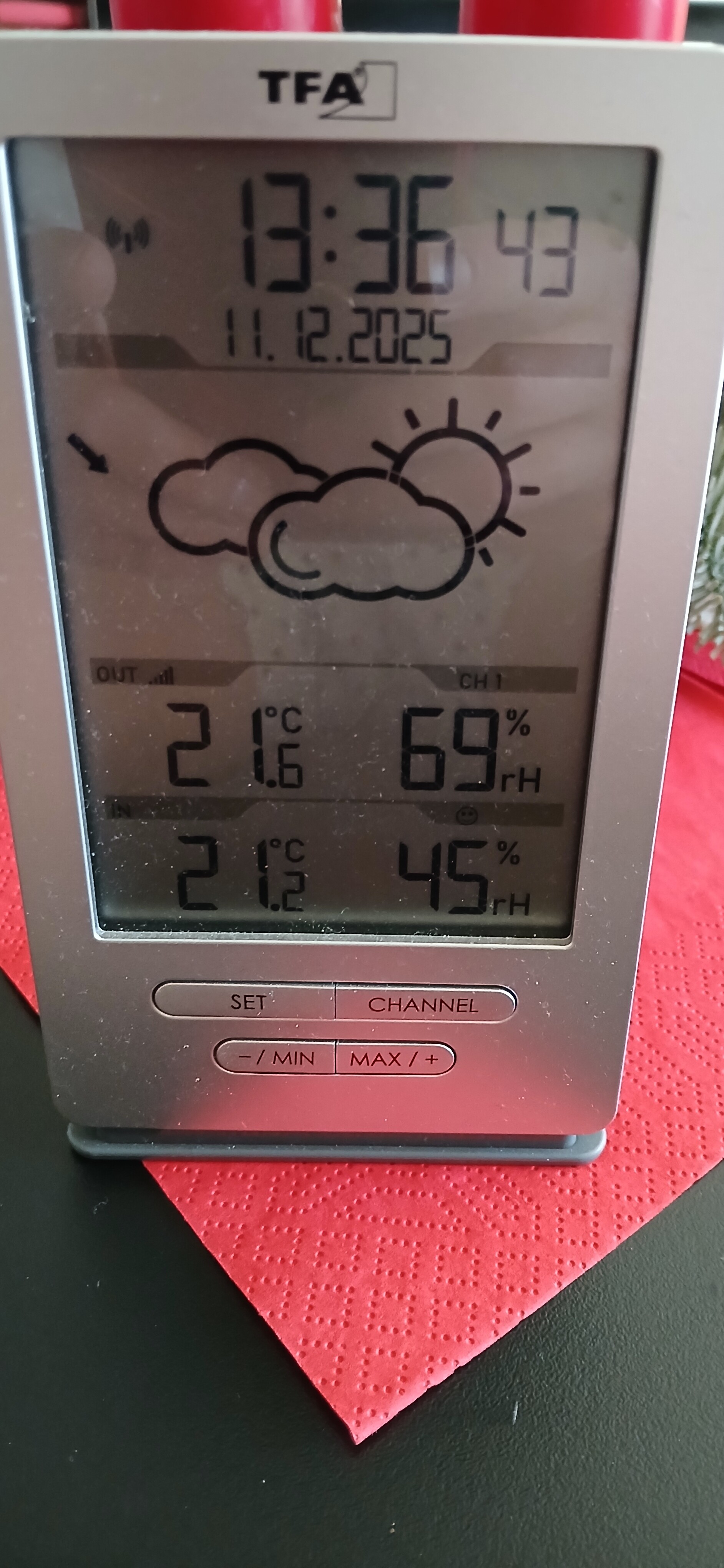 Huhu ja da geb ich dir vollkommen recht. Luftfeuchte liegt bei 81% und Temperatur bei 24,6 Grad