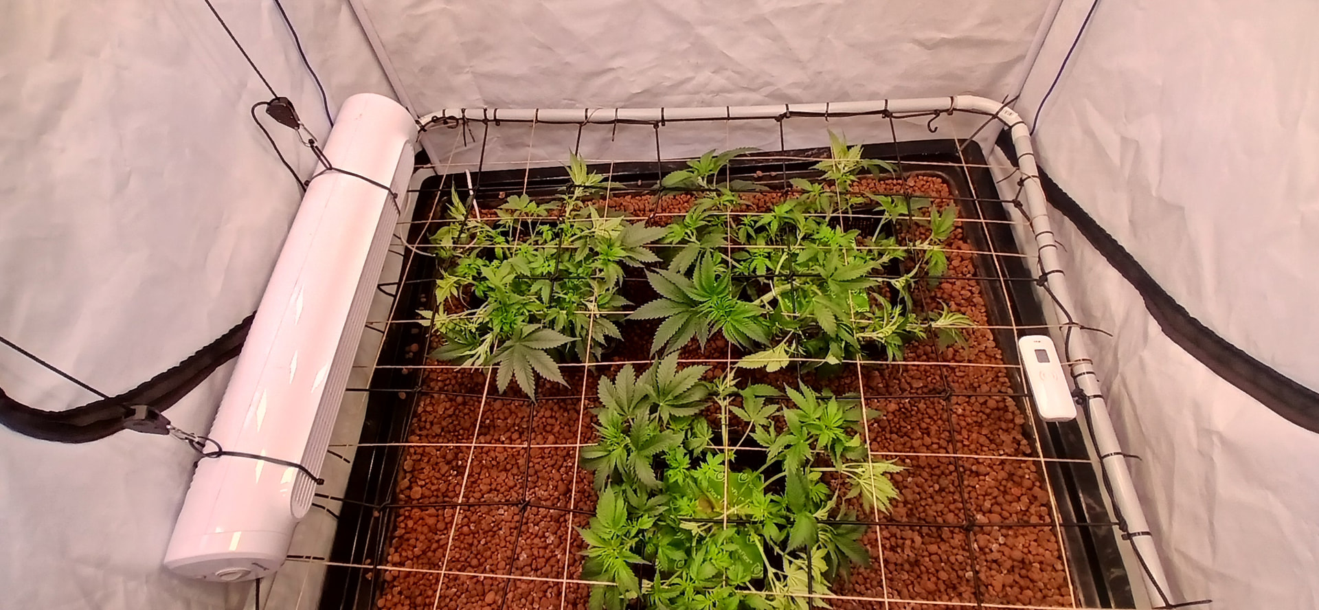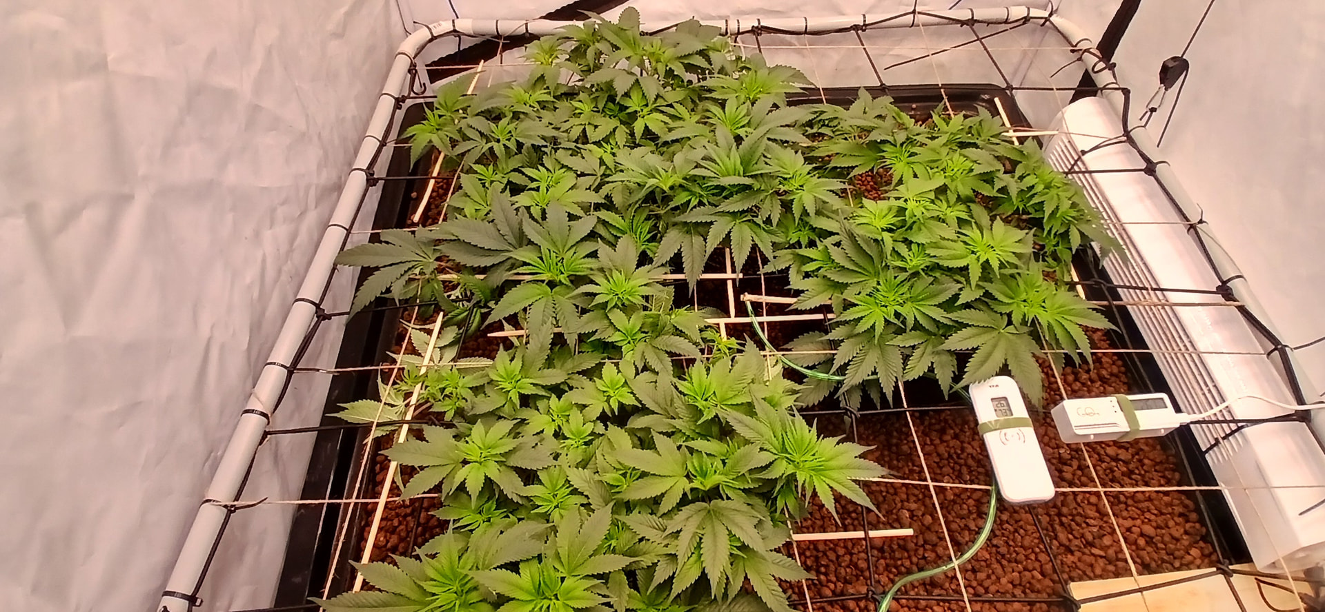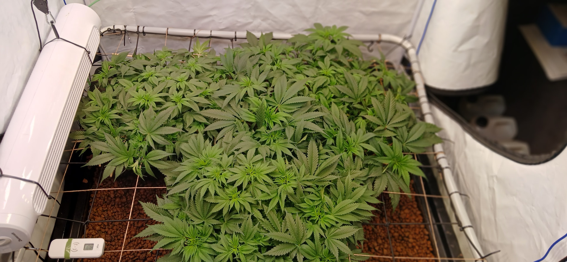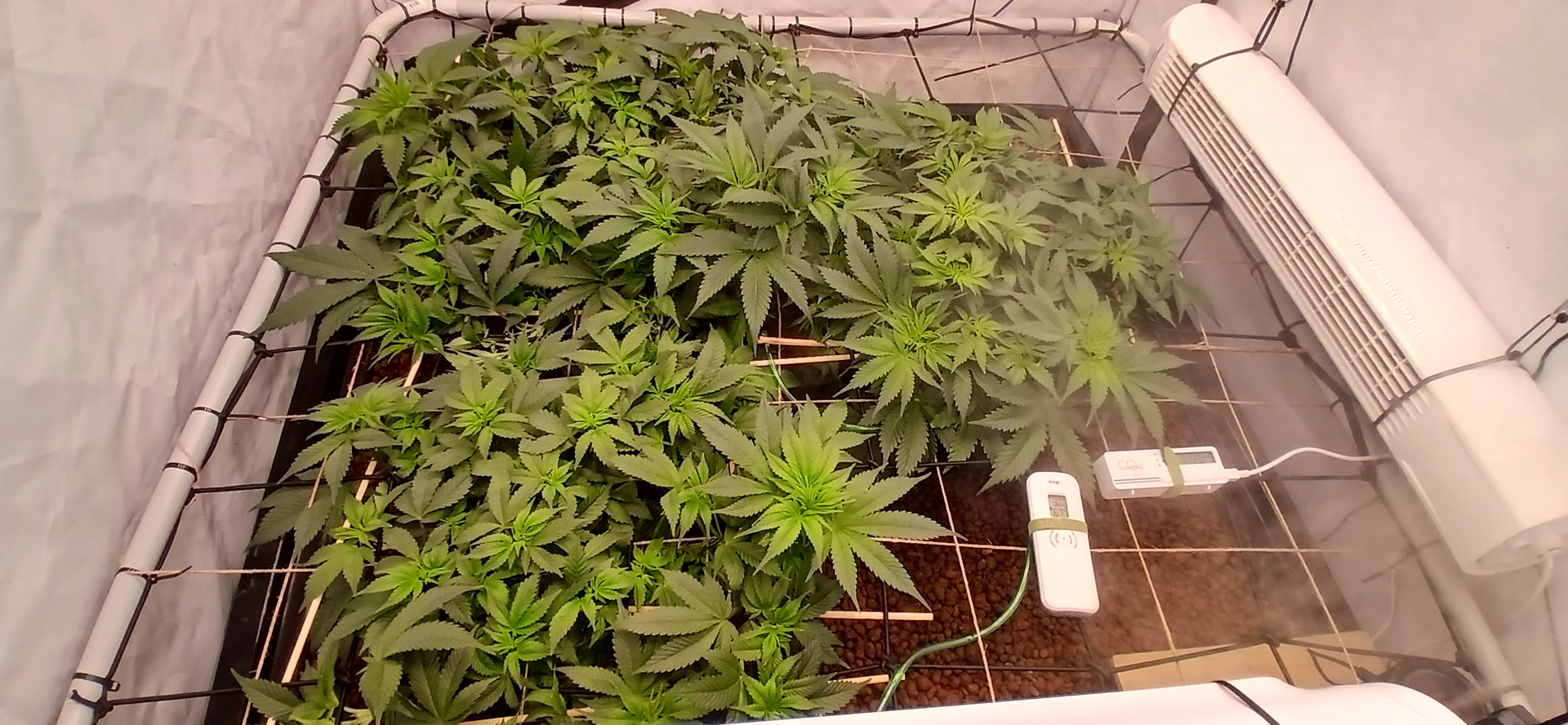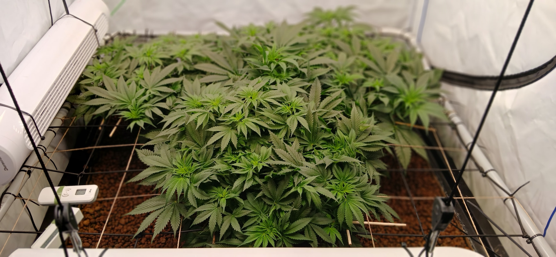 Durch das höher hängen der Lampen haben wir jetzt bei 80 % Leistung 900 bis 1200 ppdf im gesamten Zelt.