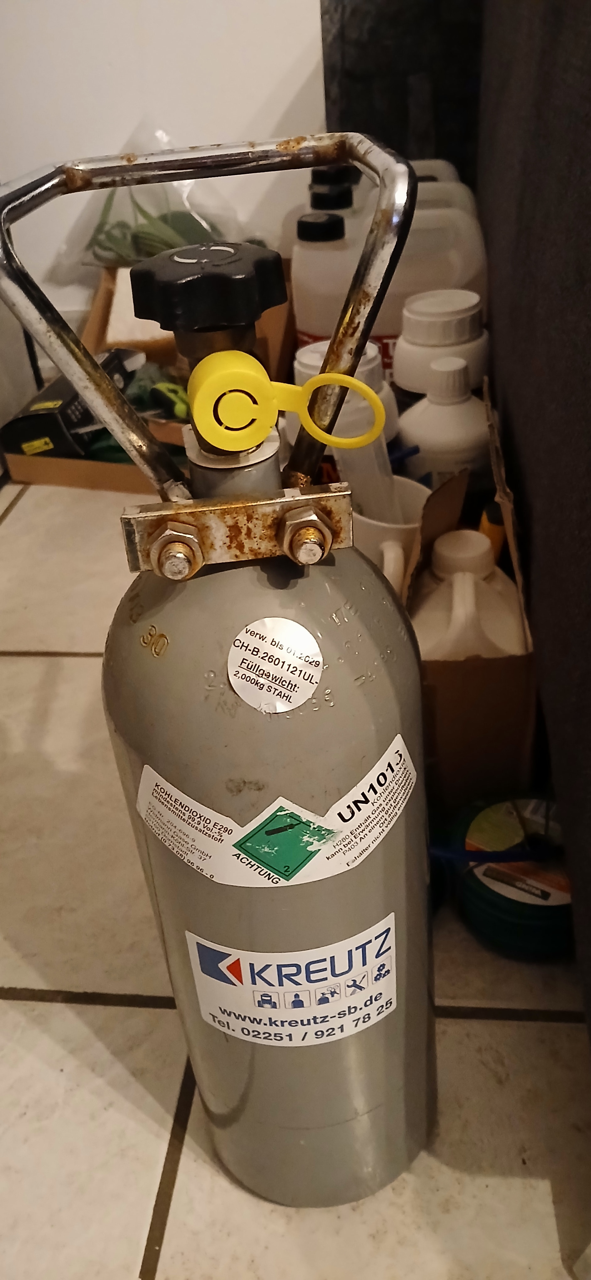 Wir haben uns dann gedacht ok wir haben alles optimiert und alles am oberen Limit das die Pflanzen die besten Voraussetzungen haben um zu wachsen außer vielleicht co2 . Und das haben wir uns dann heute zu gelegt. Eine 2 Liter Flasche und den passenden Regler mit Magnetventil. Das heißt sobald das Licht an geht wird auch das Magnetventil an gesteuert und das Gas kann ins Zelt strömen. Funktionieren wird das ganze allerdings erst morgen früh weil wir dafür das Licht aus haben müssen es muss alles umgestöpselt werden.