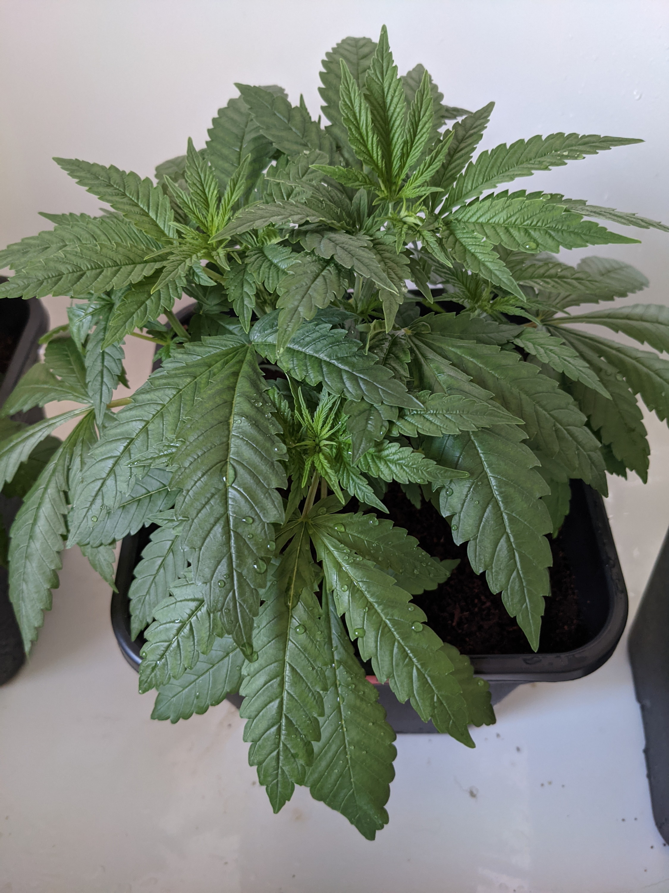 deswegen auch immer mit drain arbeiten und den checken⊠und ggf. sofort durch mehr drain anpassen⊠so kannst du den salzgehalt im medium und somit der pflanze steuern. das geht nĂ€mlich recht schnell dass dieser im coco auf werte jeneseits von 2,6 ansteigen wĂŒrde ohne ausreichend drain⊠die blĂŒten sind dann eher klein und schmecken kratzig am ende⊠darum immer das medium unter kontrolle halten⊠das ist einer der grössten pluspunkte beim coco⊠und der grund warum kleine töpfe praktischer sind⊠man benötigt weniger nĂ€hrlösung pro gieĂvorgang um drain zu bekommen⊠hat dadurch viele nass/trockenphasen⊠kann in der blĂŒte somit tĂ€glich giessen und dadurch absolute kontrolle walten lassen. je nach strain⊠bei deinen vermutlich bw 6,5-7,5 wird sich der wasserverrauch spĂŒrbar reduzieren⊠ab diesen zeitpunkt ist es besser mit dem ec wieder runter zufahren⊠bei mir geht es auf 1,7 runter⊠und eine woche vor ernte wird nur mehr wasser gegossen⊠ph je nach dem was ich vorhabe⊠will ich noch farbe in die buds zaubern senke ich die temps und gehe mit dem ph auf ĂŒber 8⊠bekommst schöne blaulila töne z.b⊠oder du willst auf nummer sicher gehen⊠einfach ph anpassen oder sein lassen⊠in der letzten woche ist er nur spielzeug.