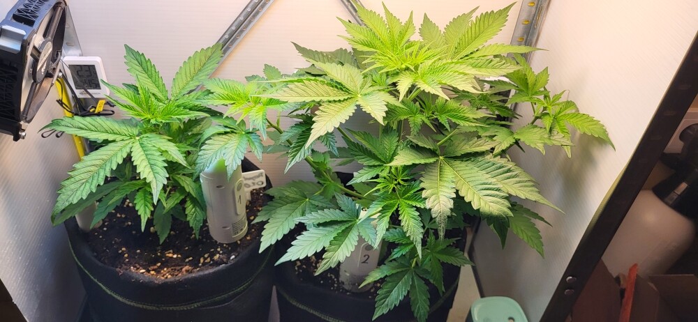 Anschließend waren beide relativ durstig, die große lag bei 3800g, die kleine bei 3600g und hat nachdem se wieder in ihrer Zelle war, auch die ersten Blätter hängen lassen. Bei ungefähr dem selben Gewicht hab ich auch zuletzt gegossen, die große am 05.05., die kleine am 03.05.).