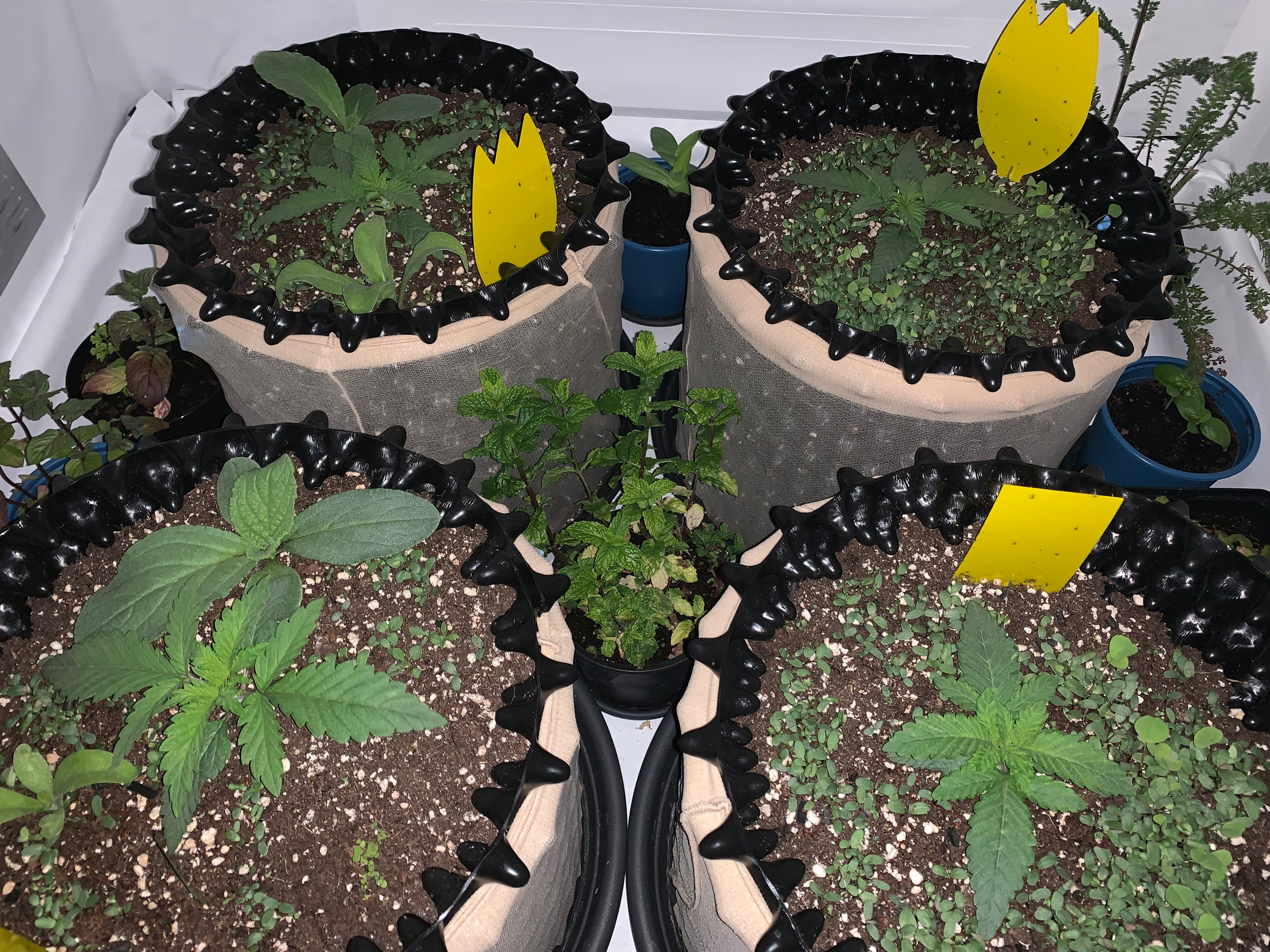 2 töpfe mit beipflanzen und alle 4 mit klee und alphalfa