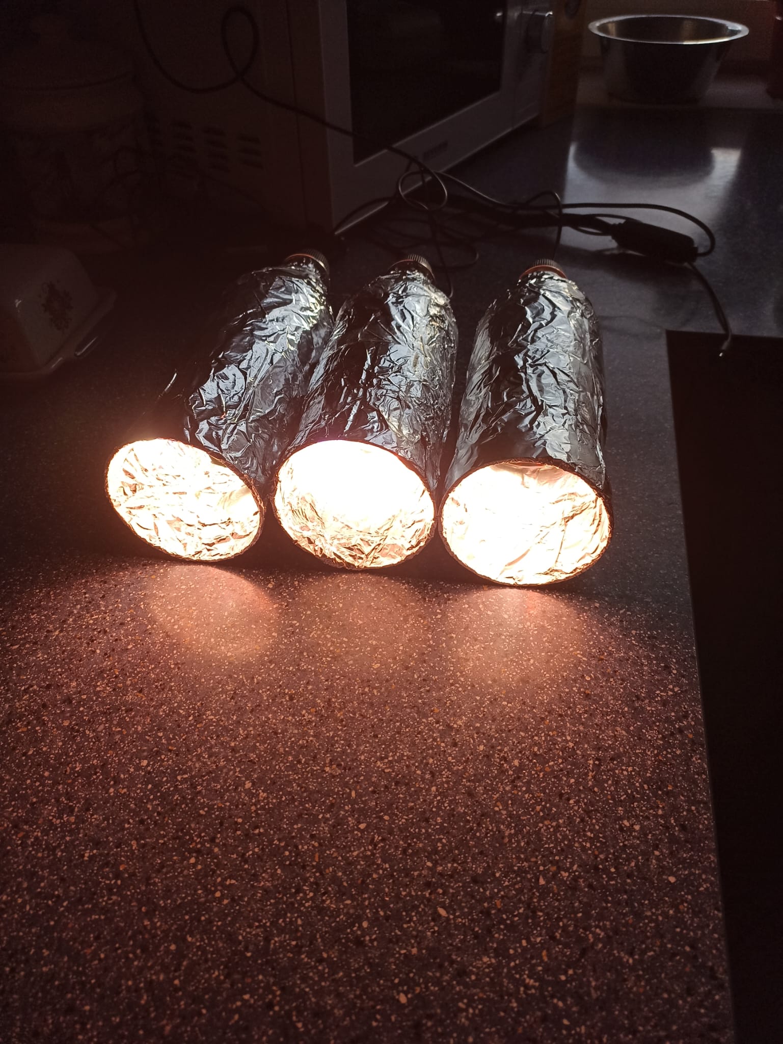 Tagsüber geht’s ins Gewächshaus und morgens und abends noch in die Billo-Solette mit Anzuchtlampen vom Lidl.