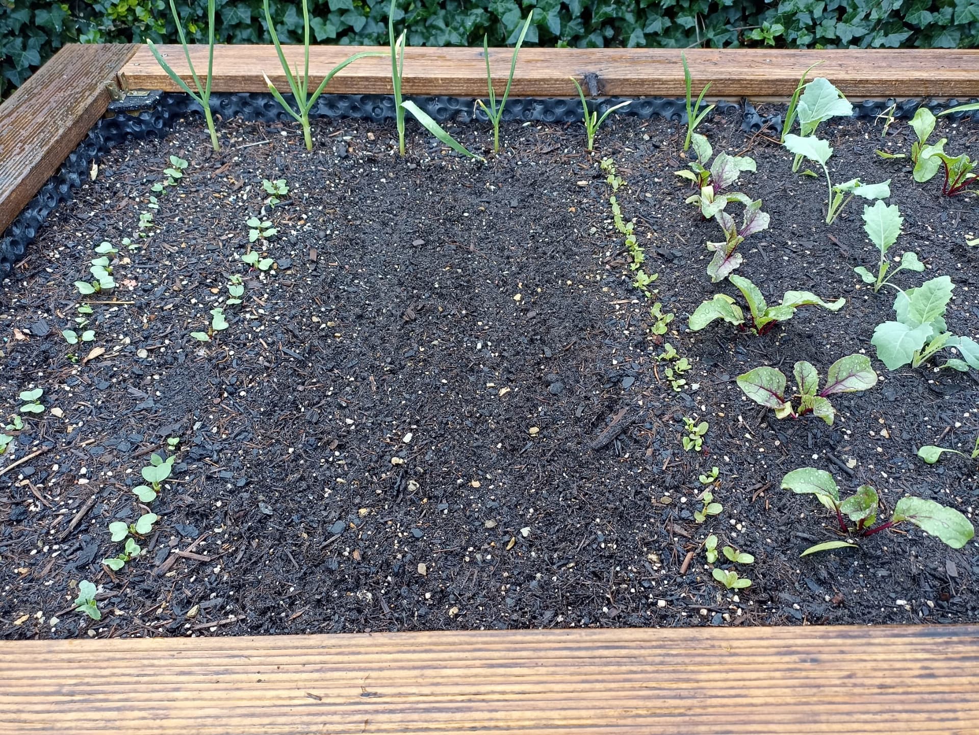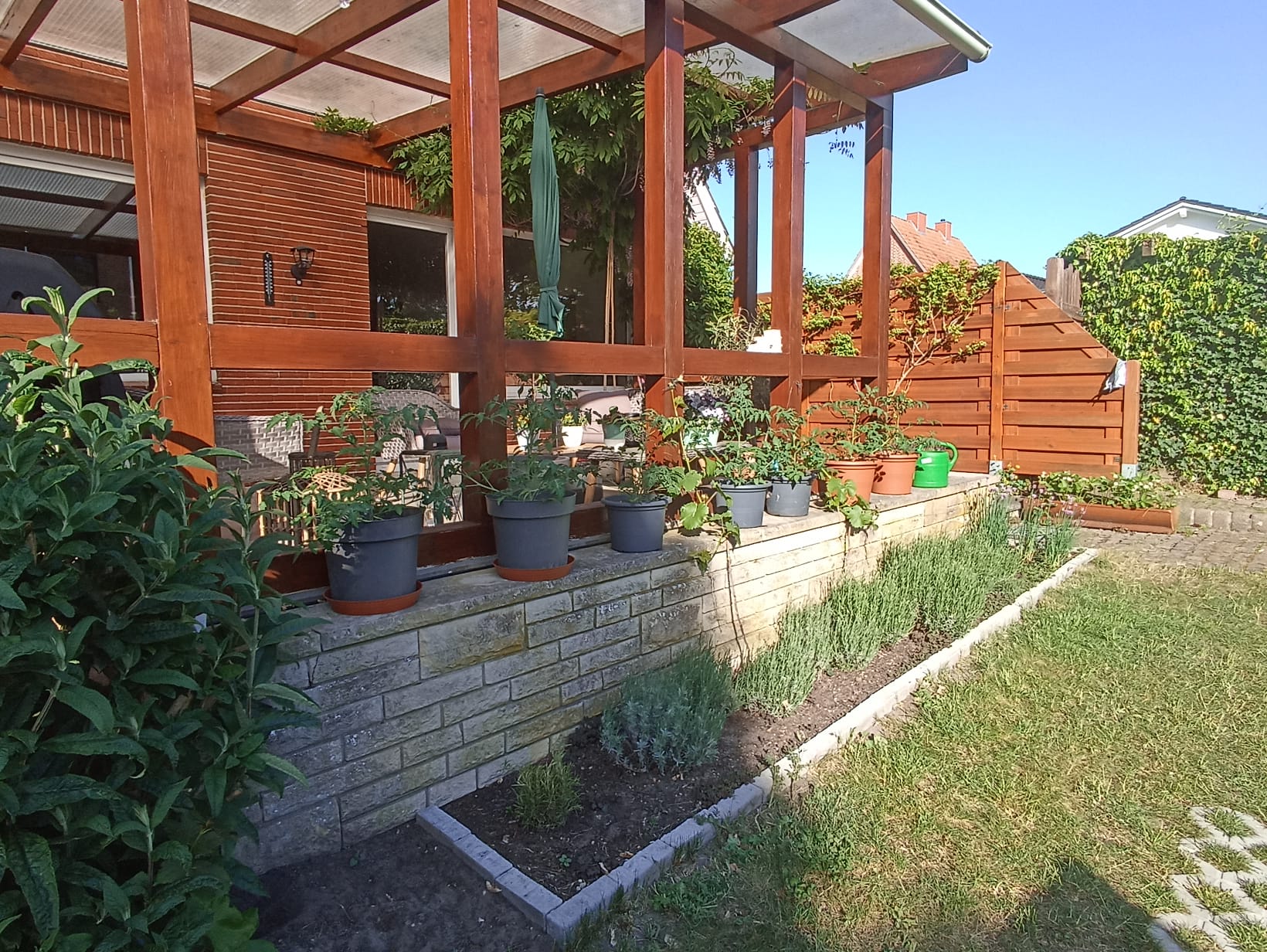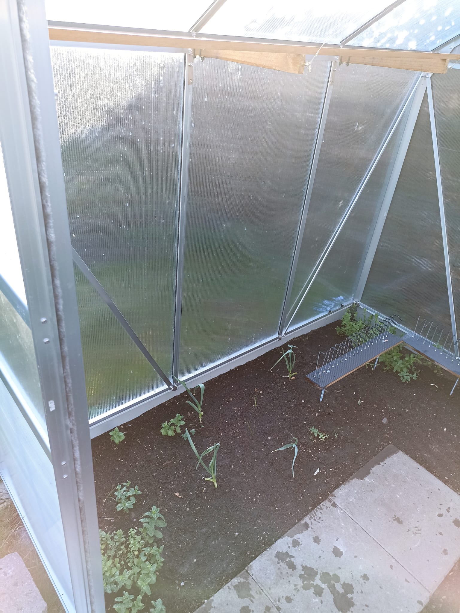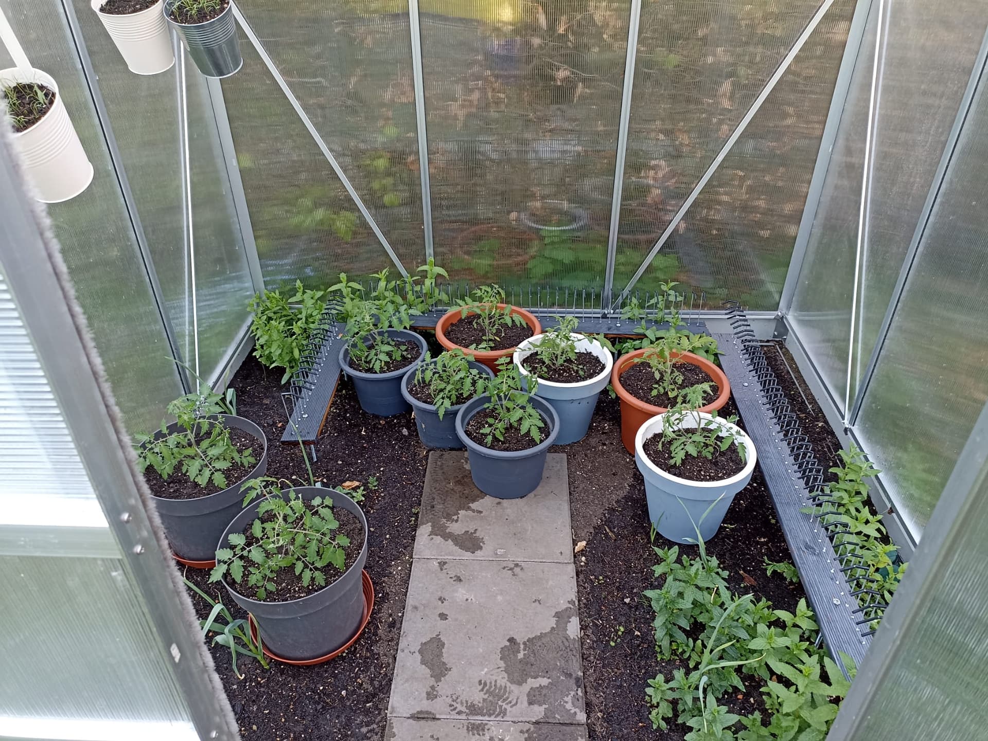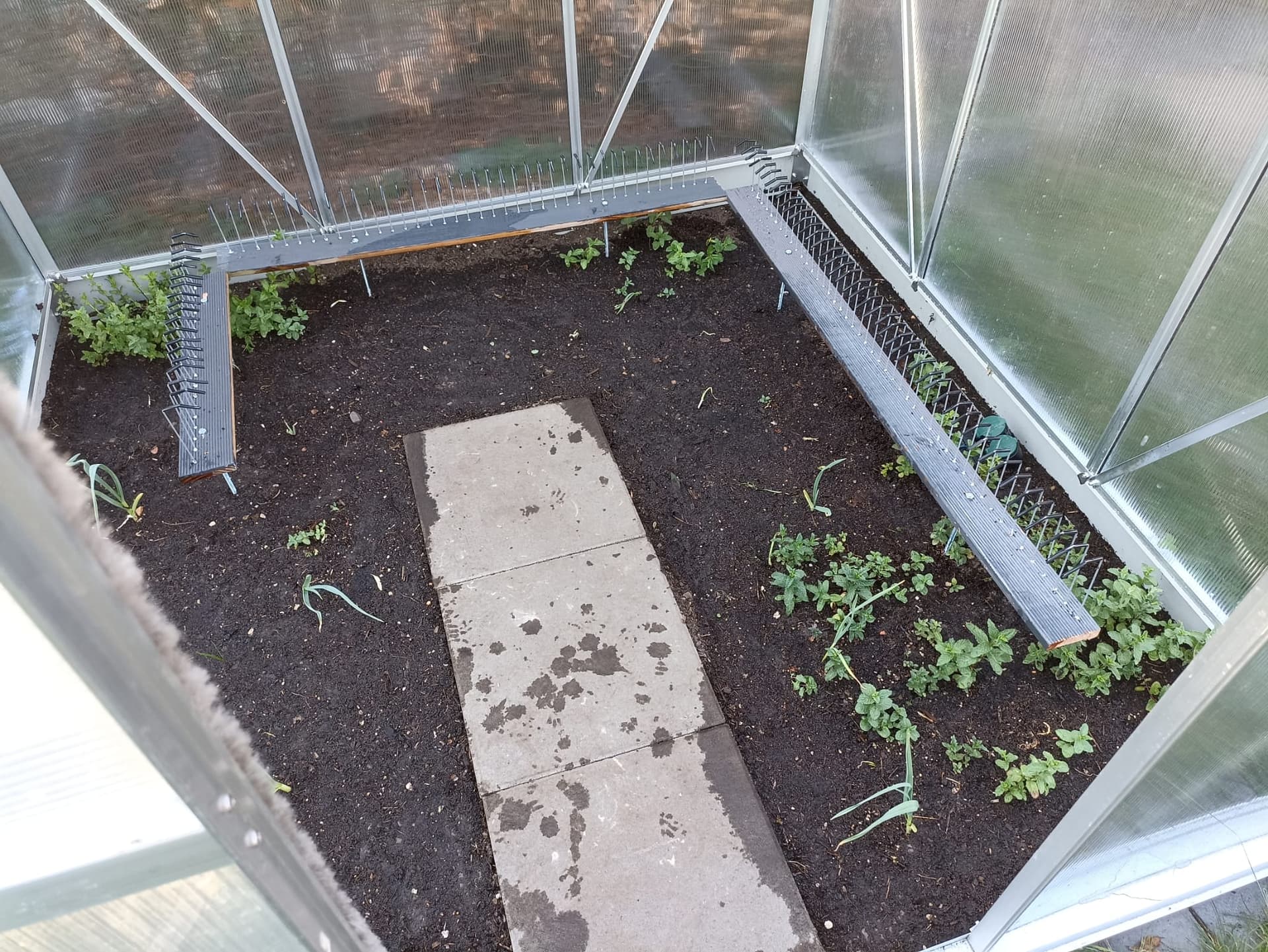 Damit die kleinen Stinker Pfefferminze und Knoblauch ungehindert wuchern können, hab ich das Gerüst aufgeständert. Das dürfte einen wirksamen Schutz gegen lästiges Viechzeugs geben.