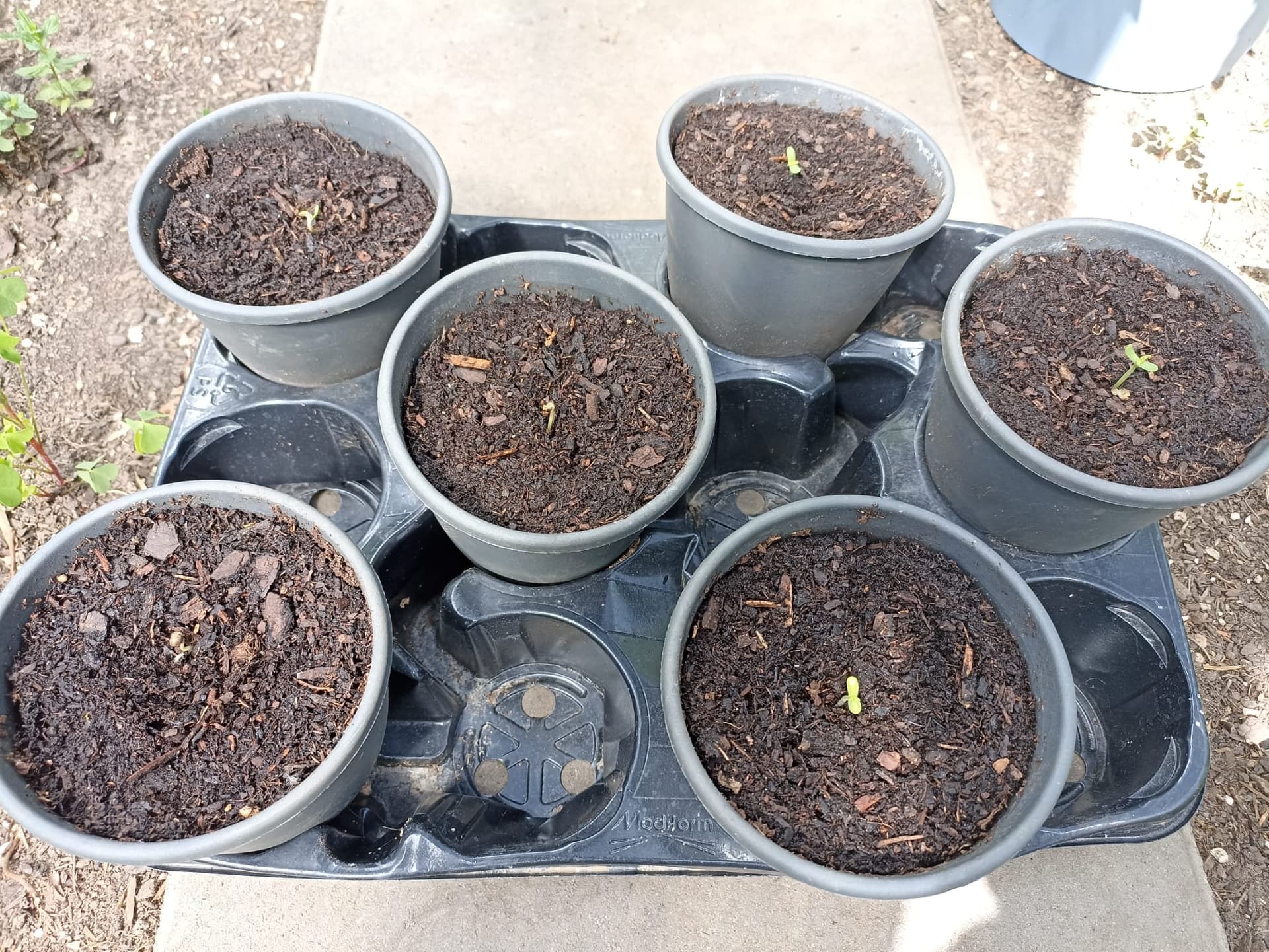 Plan ist, aus den 3 die größte, schönste und schlauste (vereint in einer Pflanze) auszusuchen. Bisher ist da noch kein Unterschied zu erkennen, nur das eine erstmal quer durch den Topf gewachsen ist, um dann ihr Köpfchen aus der Erde zu stecken (zu viel Kraft gepaart mit Dummheit? Vielleicht auch eine interessante Kombi…)