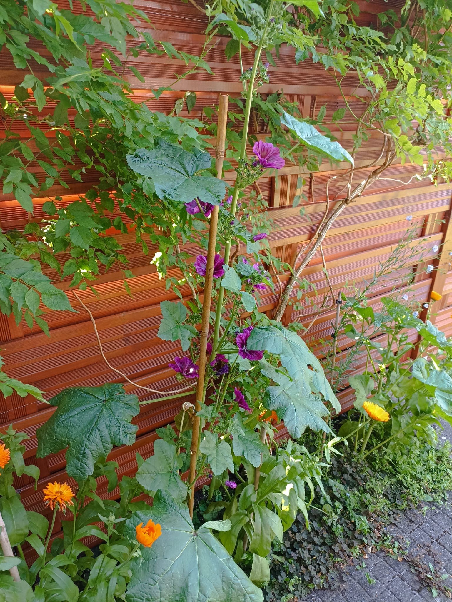 Hier noch etwas aus meinem Samenadventskalender. Hatte lange Zeit Zweifel, ob das Ding jemals anders aussehen würde, als unförmig groß und grün. Aber nun ist die Malve echt schick.