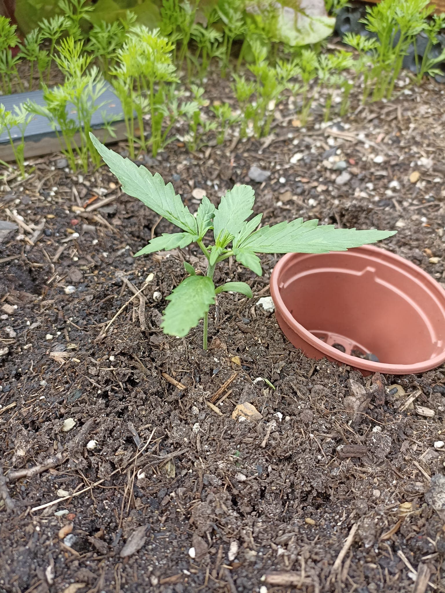 Moin, die Autos sind nun genau 1 Woche in den Beeten (VT14). Da es das erste mal Autos für mich sind, kann ich das Wachstum nicht genau einschätzen. Die Woche war aber auch nicht das beste Wetter. Von der Entwicklung sind Dicki, Ducki, Dacki und Zitronella weiter als die Gewächshaususchi Clementine. Die Lemon-CBD, die über ist, steht auch noch im Gewächshaus und sieht ziemlich identisch zu ihrer eingebuddelten Schwester aus. Ich glaube, dass das Gewächshaus von dem bisschen Sonne, das es gab, zuviel geblockt hat.