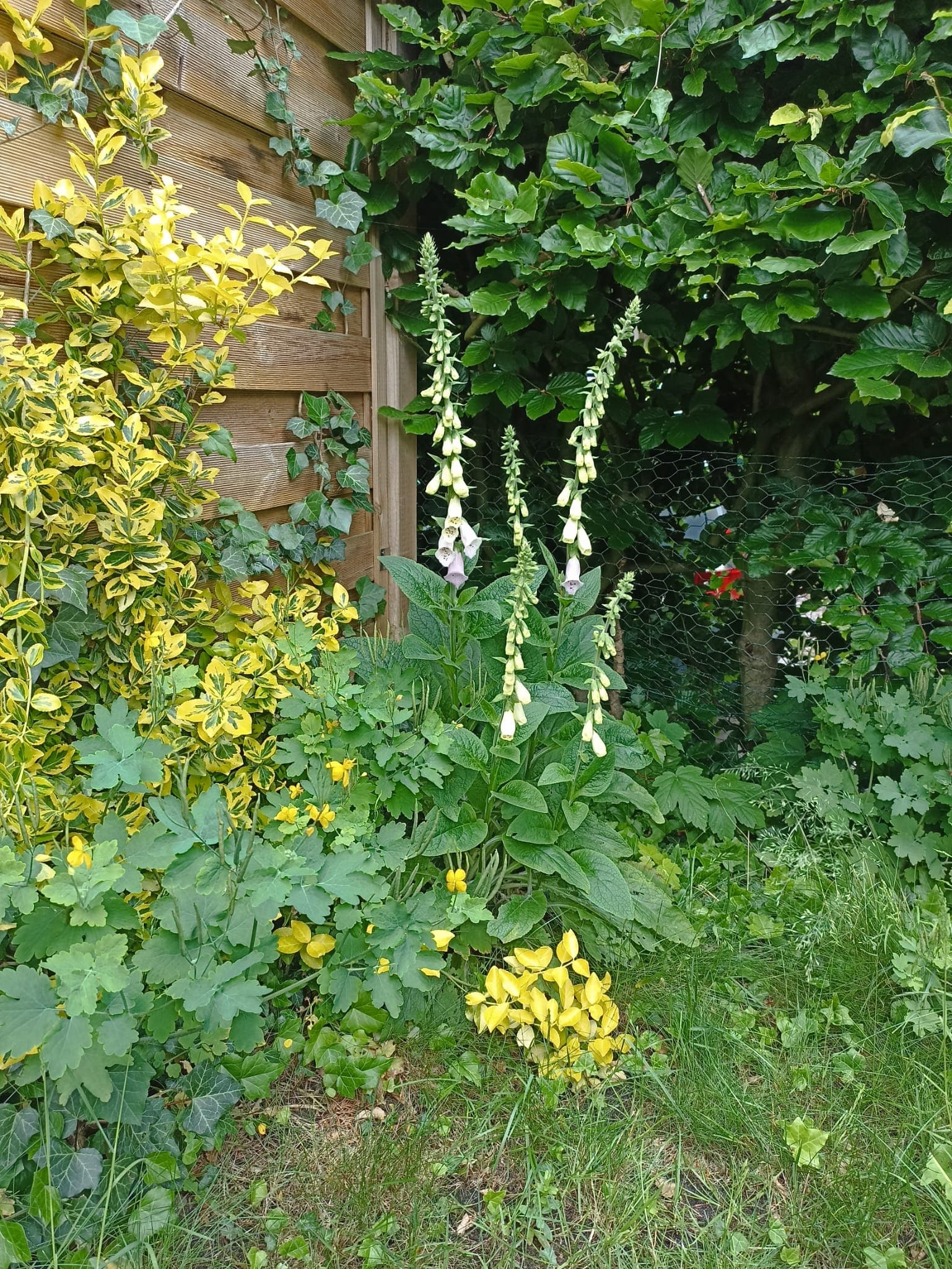 Der Hauptgewinn in der Kategorie „wunderhübsche Pflanze, für die ich nicht einen Finger krumm gemacht habe“ geht definitiv an den Fingerhut. Eigentlich lustig, dass ich streng genommen das Gewächshaus abschließen und die anderen Autos unzugänglich machen müsste, aber den ganzen Garten mit dem potenziell tödlichen Fingerhut vollknallen darf.
