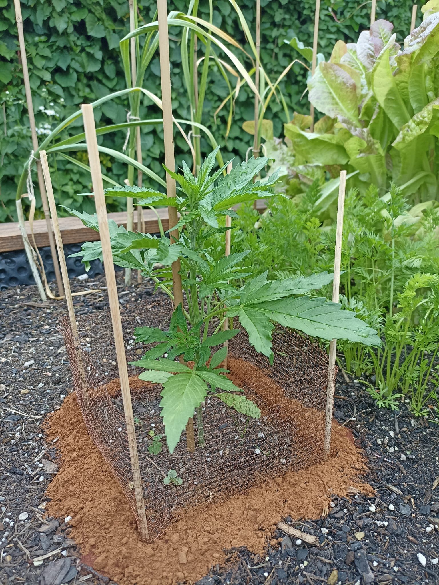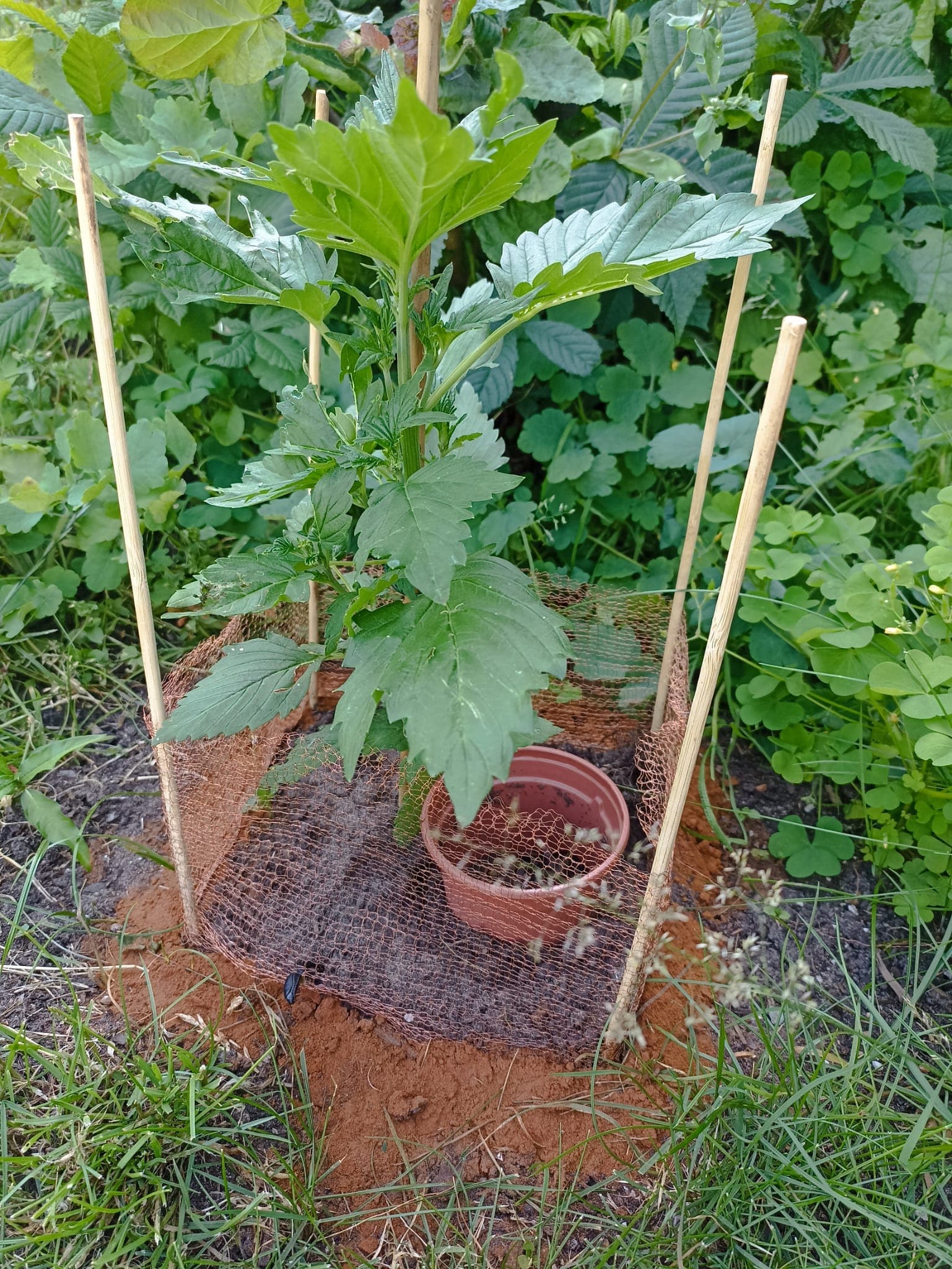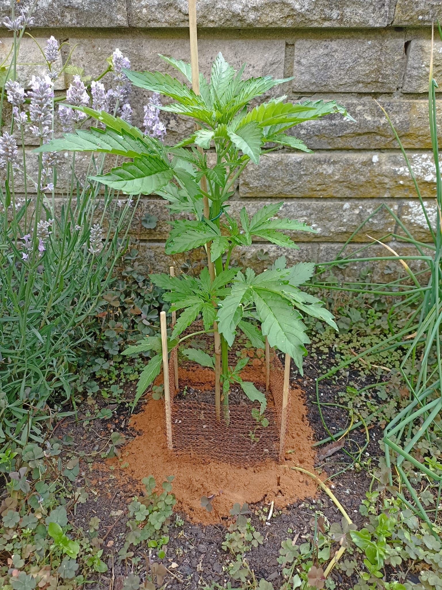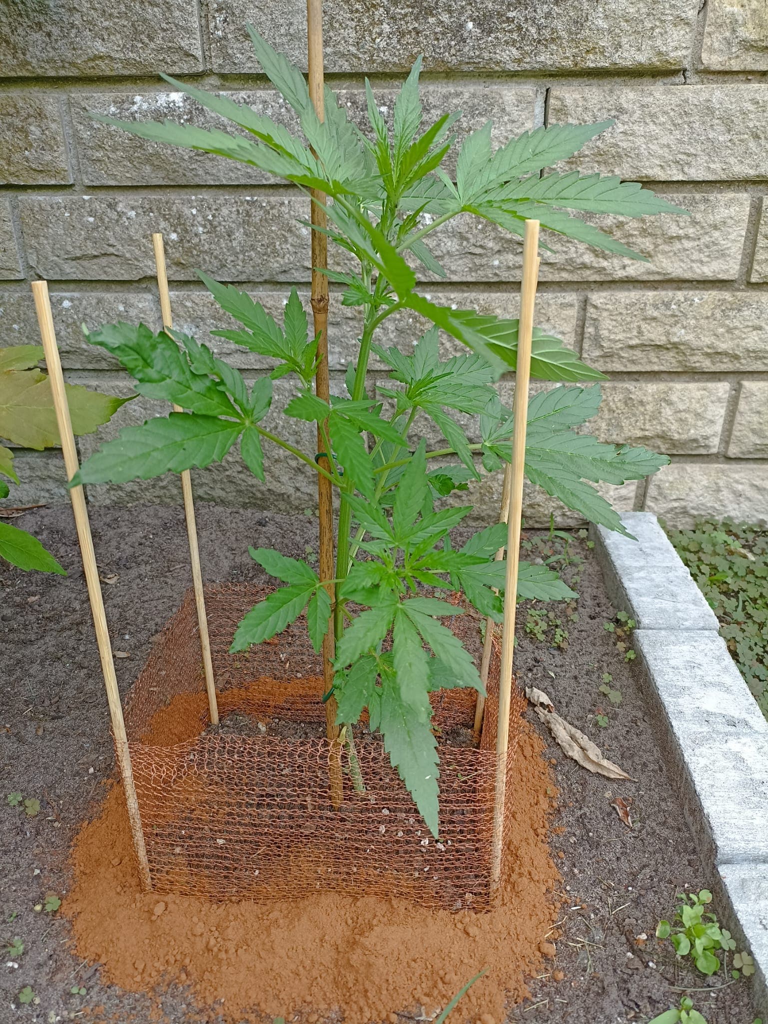 Citronella wurde fies angeschreddert. Da der Zimt von den letzten Regenfällen stark eingeschrumpft war, hab ich noch ne Ladung um alle verstreut. Das Kupfernetz alleine schützt also nicht 100 %.