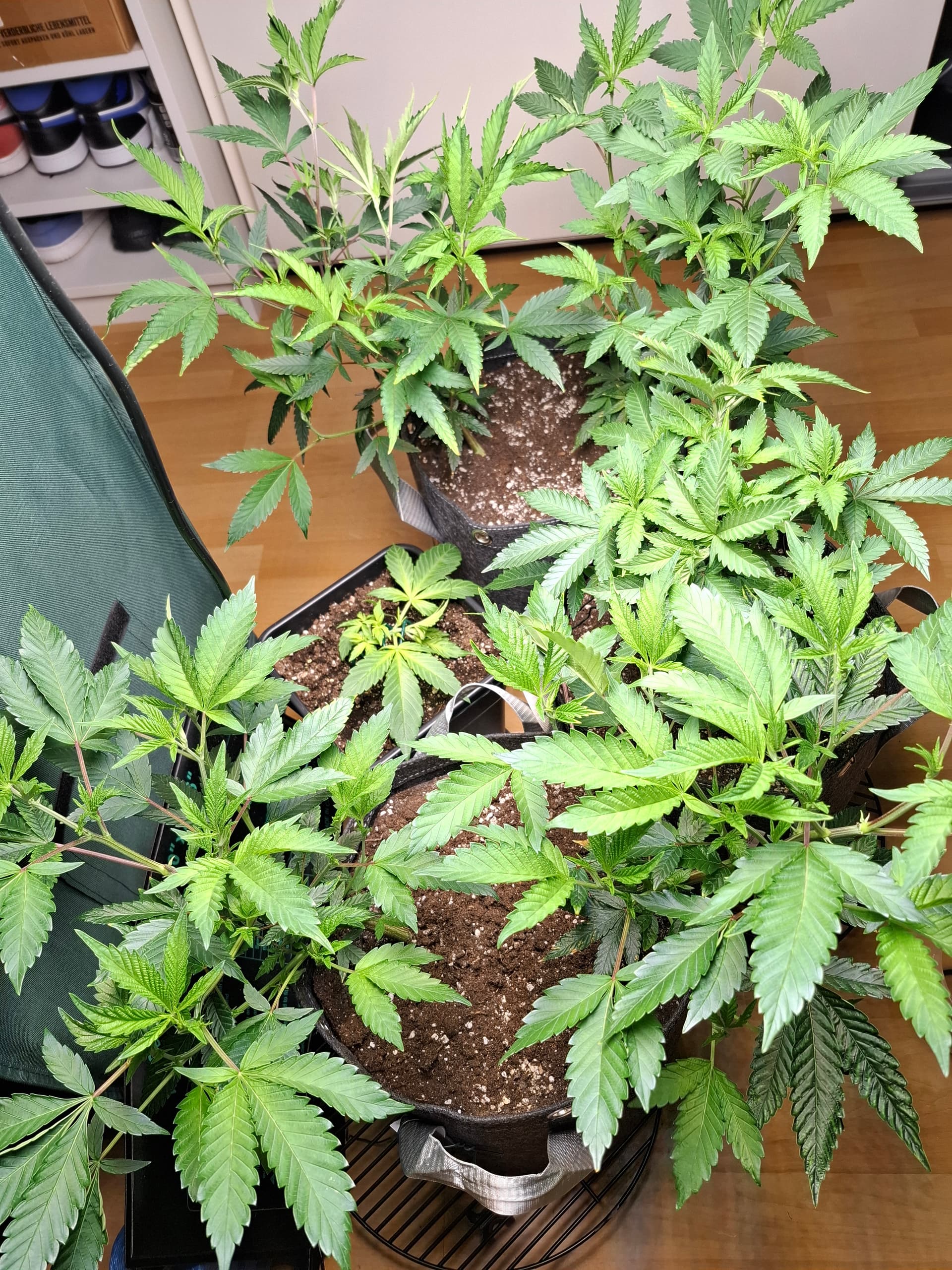 Ist halt schwierig hier ein Intervall anzugeben da die gerade erst am Durchwurzeln sind. Dem Wuchs nach sollte der Wasserbedarf nun steigen, da das Wachstum in den letzten Tagen exponentiell war und ich davon ausgehe, dass der Topf langsam besser durchwurzelt wurde von den Ladys.