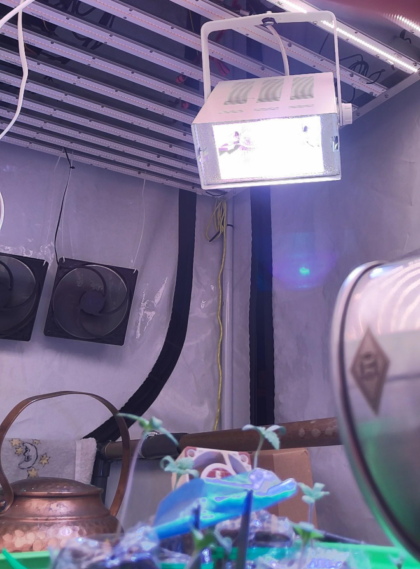 Mir war klar, dass die Strips mit 2700K für die Blüte besser geeignet sind als für Veg. Ich hatte angenommen, dass sie zwar für Veg nicht die Effizienz erreichen von blaueren LEDs und dass es mehr Stretch gibt, aber ich hatte mir damals sagen lassen der Stretch würde höchstens 5-10% zunehmen bei 10% Blauanteil. Ich vermute jetzt das stimmt nicht, so wie der Spargelacker bei mir aussieht. Die 6000K E27 LED macht einen riesen Unterschied und die Keimlinge stürzen sich drauf. Ich hab 2 alte 70W HQI-Strahler in 5200K ausgegraben und einen davon mit aufgehängt. Ich suche jetzt nach narrow band LEDs in 400-450nm um sie als Veg Zusatz mit aufzuhängen, gerne Strips ohne Heatsink oder COBs, evt. Optik dazu. Hat wer einen Tip?