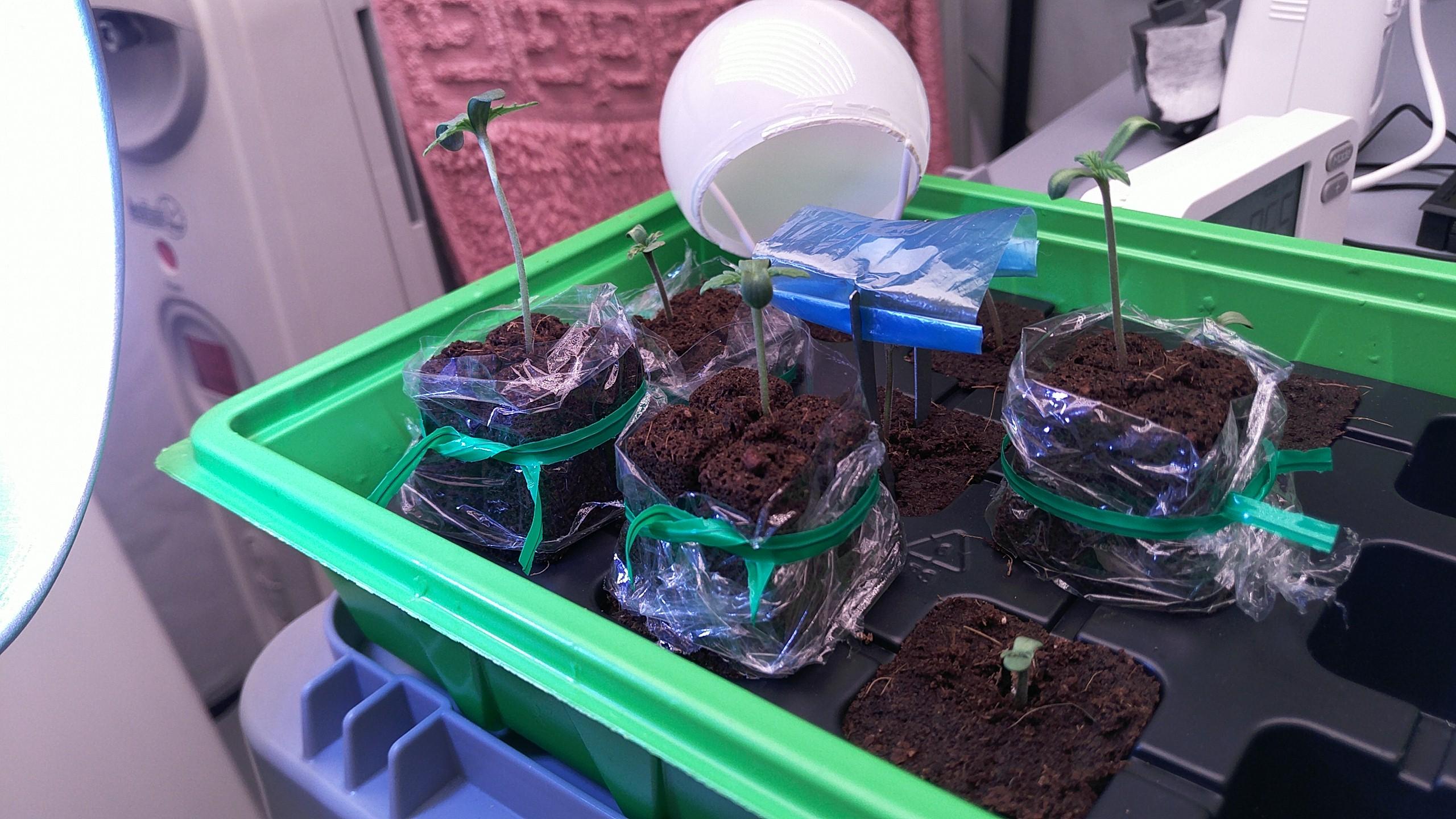 Handtücher hängen, Abluft regelt. Weil die ja später in Netpots passen müssen konnte ich nicht in größere Töpfe. Ich hab den Spargeln jetzt Kragen aus Plugs gemacht und Folie drum, damit die nicht sofort austrocknen.später kann ich die Netpots unten so aufmachen, dass der untere Plug raus schaut aber noch hält. Der Keimling in der Mitte bleibt jetzt seinem Schicksal überlassen x)