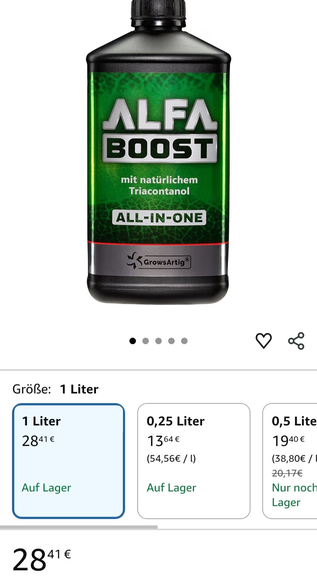Werde das Alfaboost allinone wieder kaufen, aber im 1Liter Gebinde bei 250ml ist der Preis schon fast unverschämt.