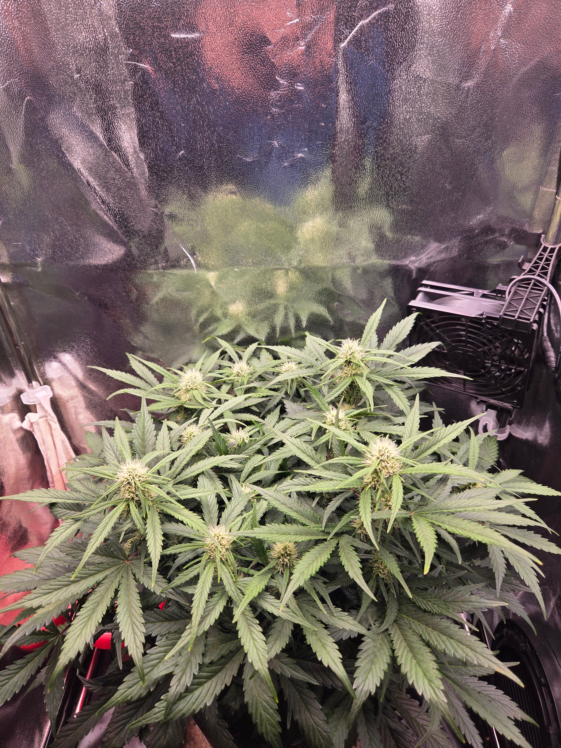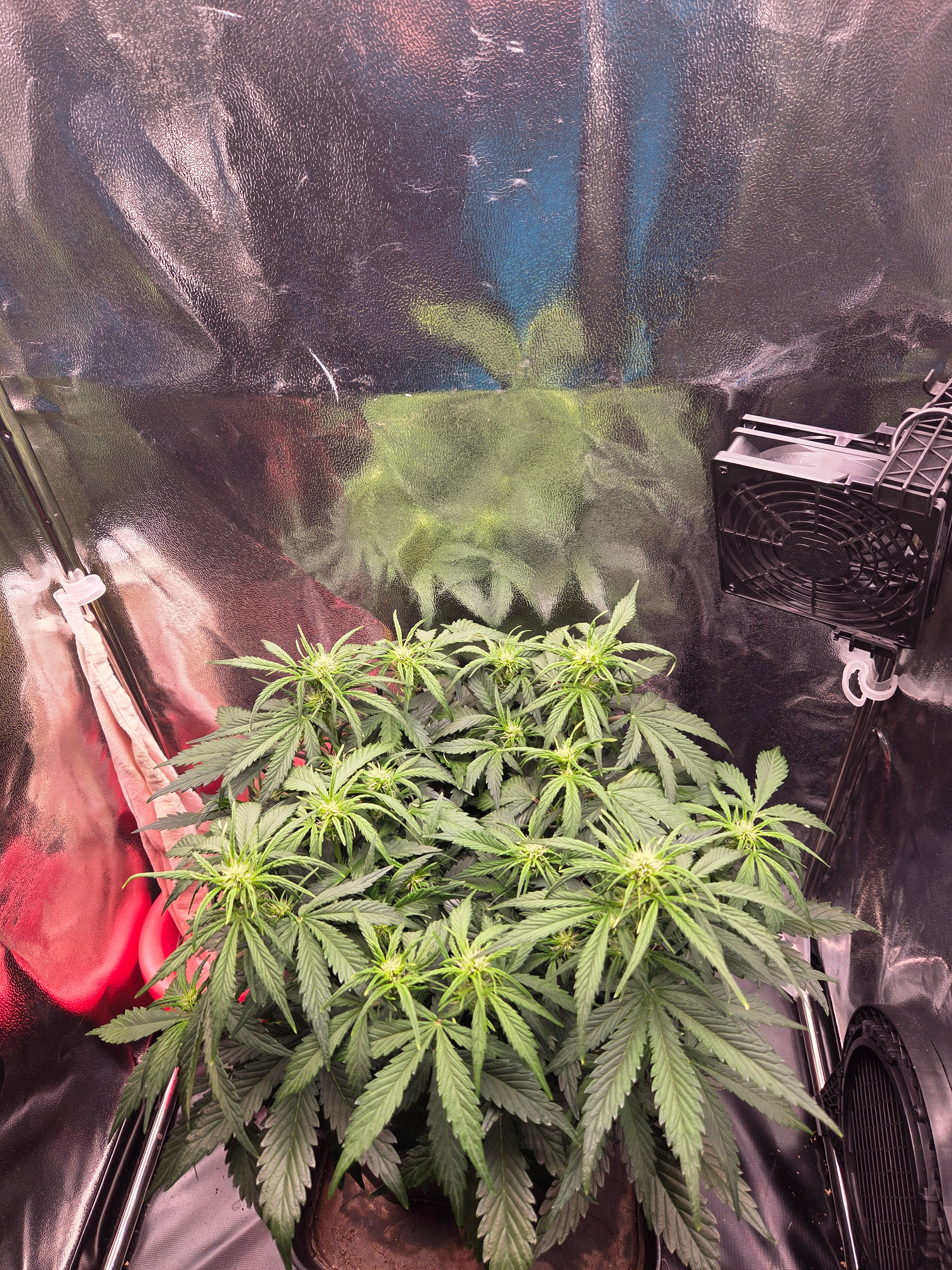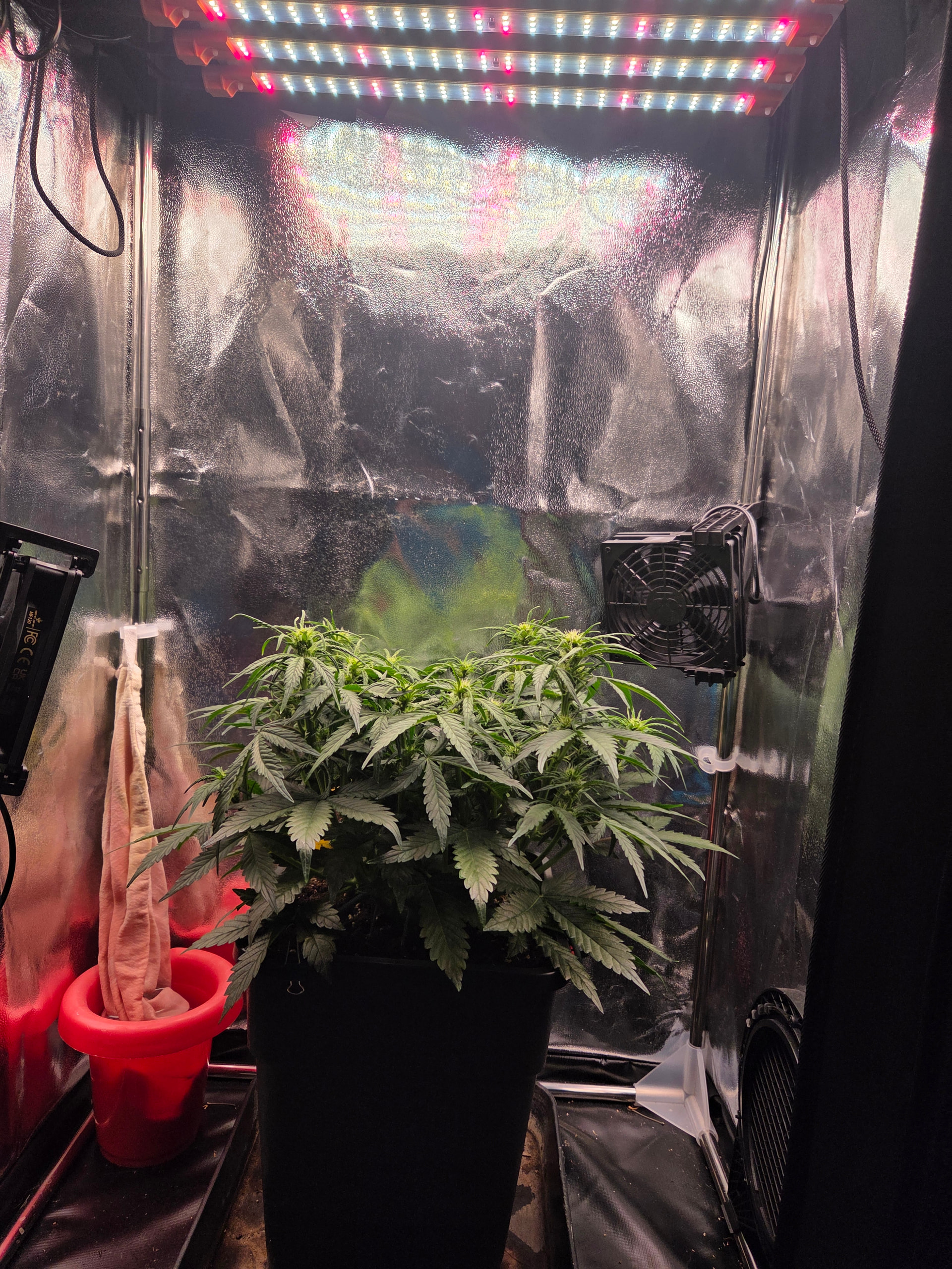 Netz wurde gespannt, Licht läuft bei ca 40cm auf 70W. Zusätzlich noch den zweiten Umluftventilator angebracht.