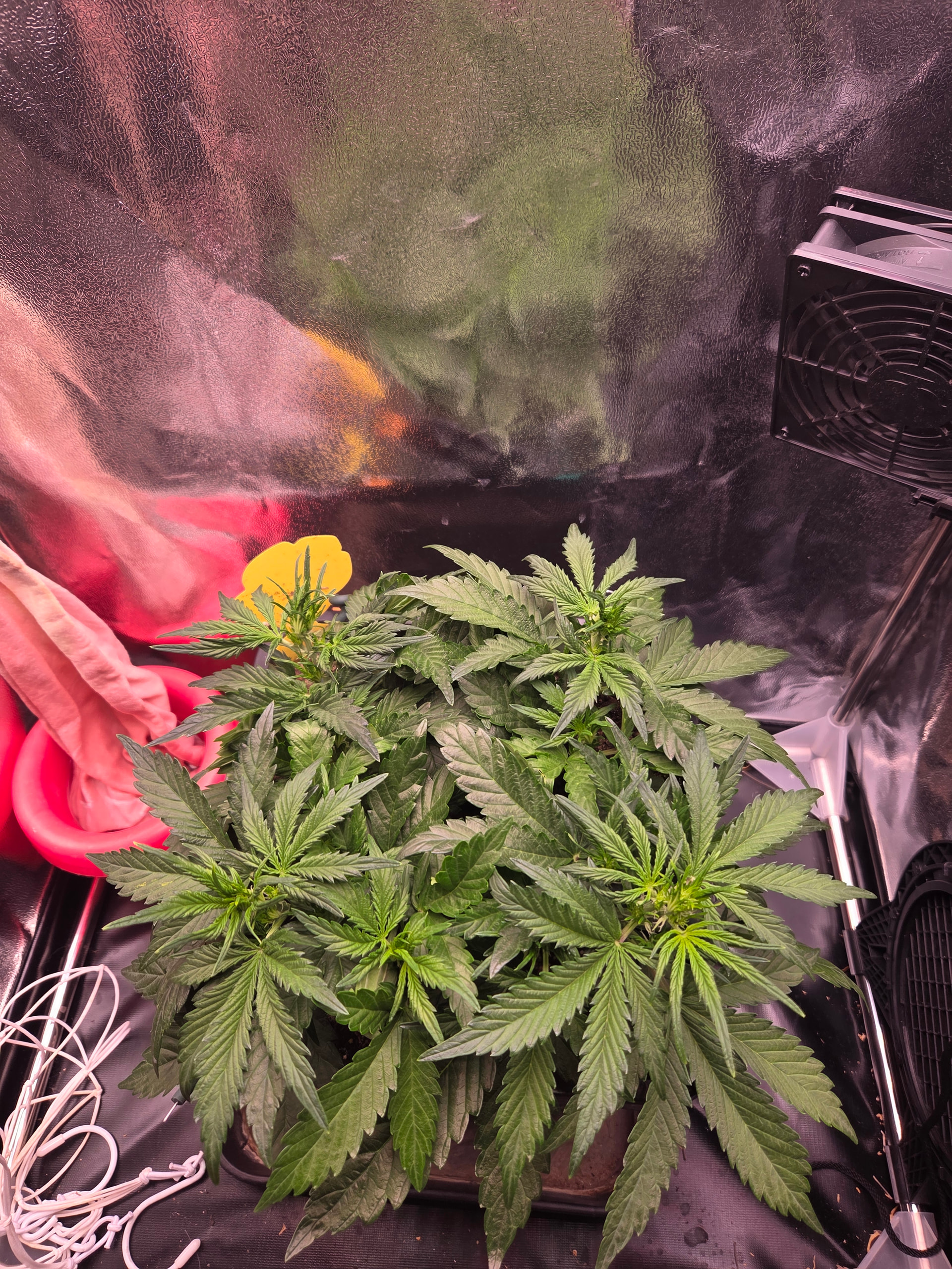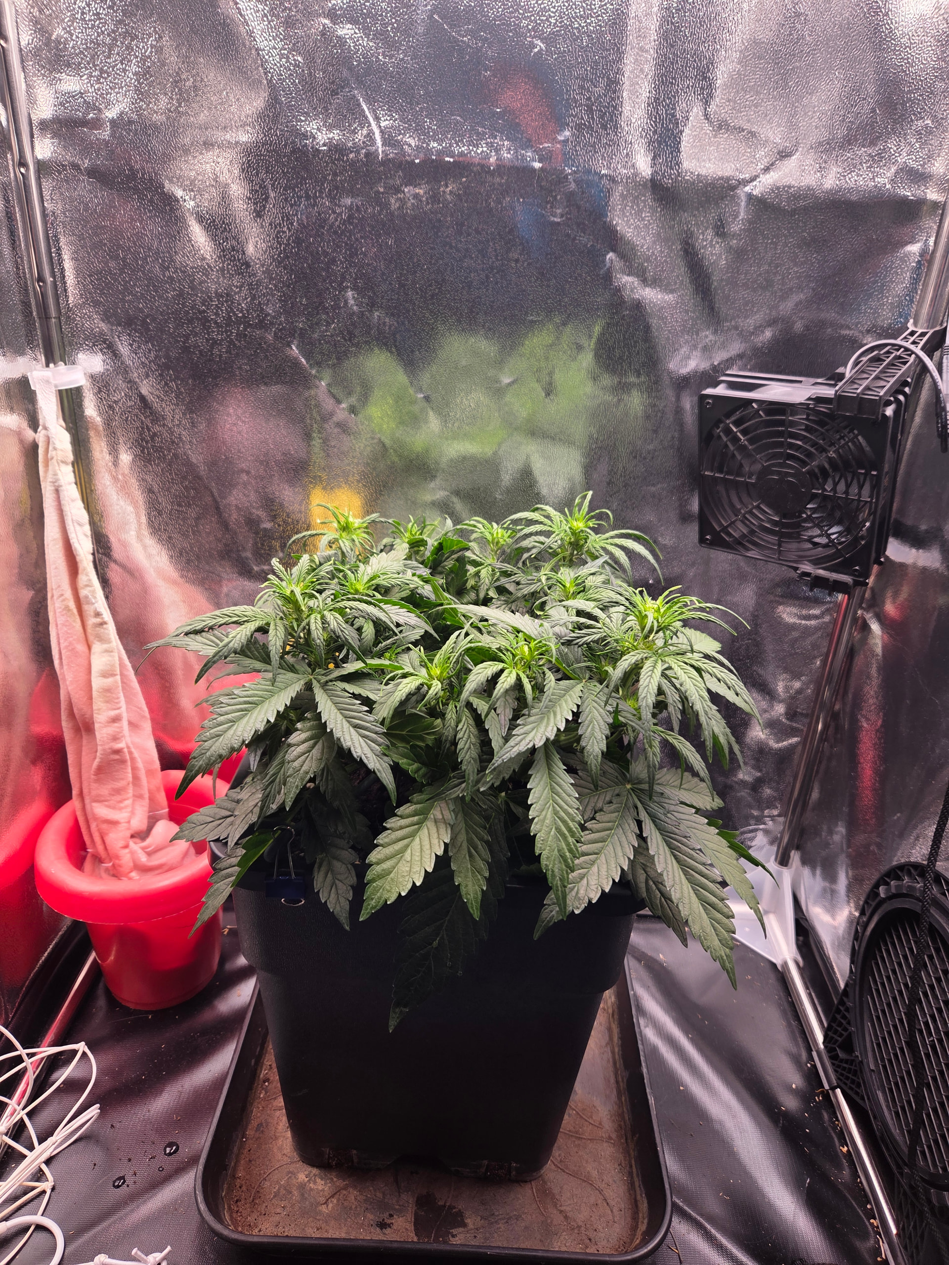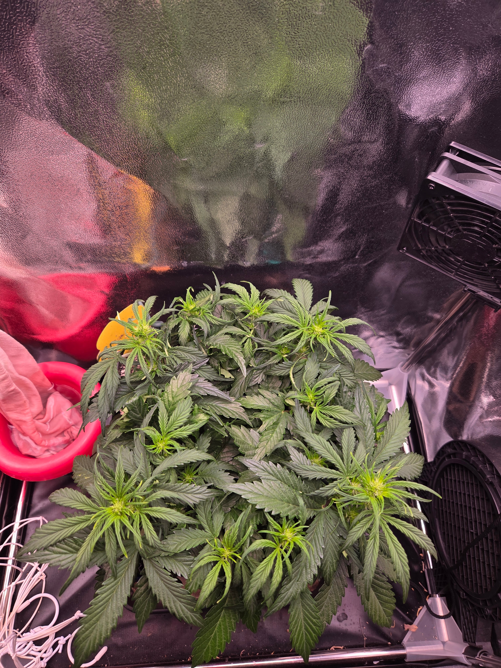 Netz wurde gespannt, Licht läuft bei ca 40cm auf 70W. Zusätzlich noch den zweiten Umluftventilator angebracht.