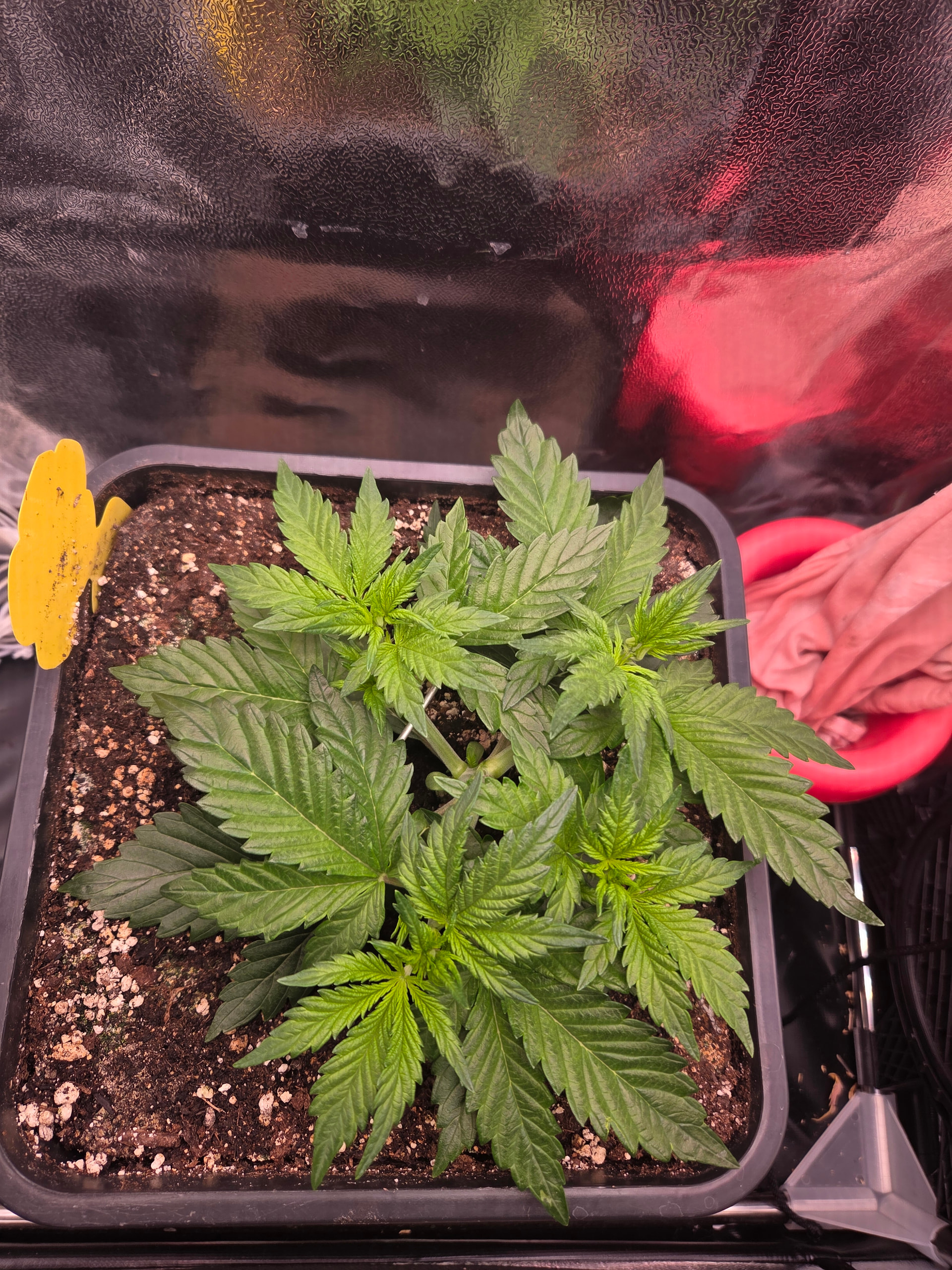 Heute wurde wieder gegossen, es gab 24 Stunden abgestandenes Leitungswasser plus 0,7gr Bittersalz sowie 6ml Alfa Boost. Lampe wie bereits erwähnt auf 100w, derzeit 35cm Abstand - ich lasse die Dame auf 30cm ranwachsen, dann wird täglich gecheckt und während des Stretch angepasst. Werde auf bei 20/4 durchgehend bleiben.