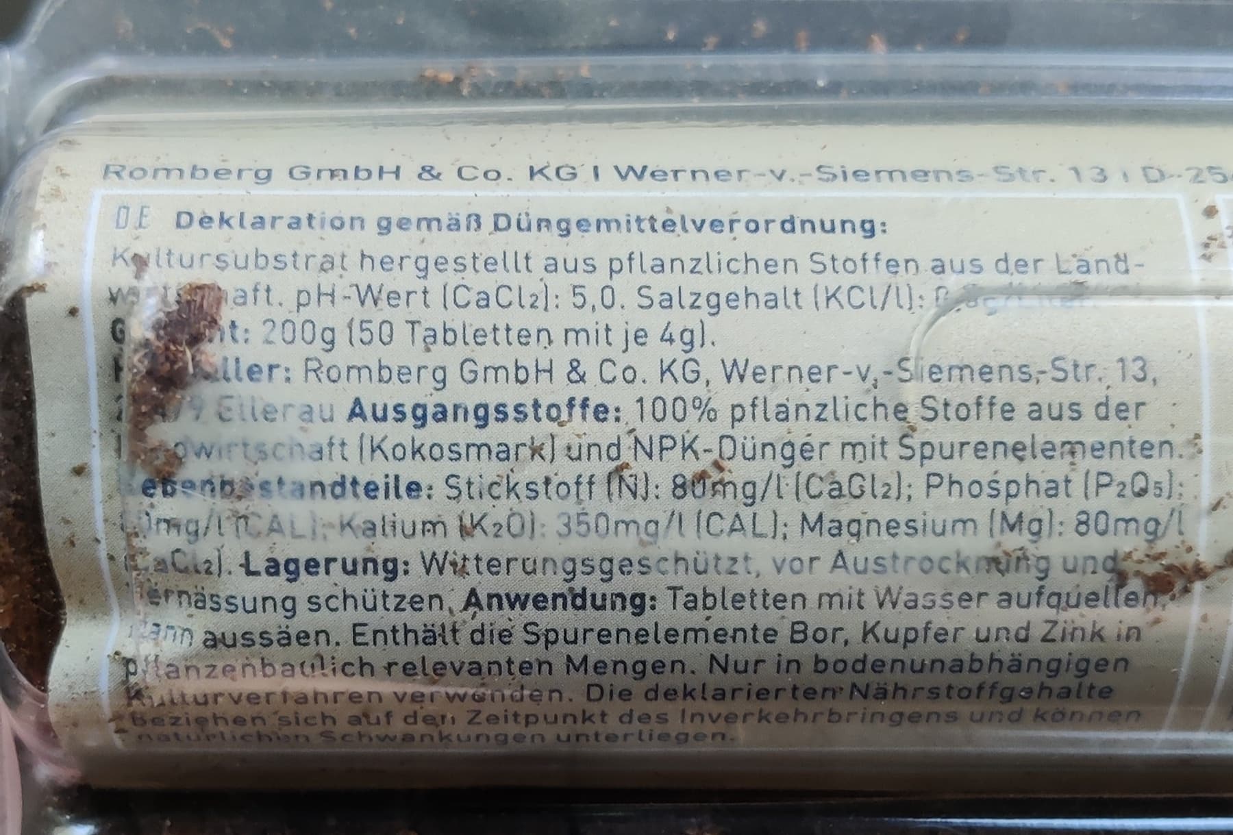 Kokosquelltöpfe in Tablettenform: z. B. von Floraworld, dürften wegen dem Kokos wohl eine minimale Vordüngung beinhalten.