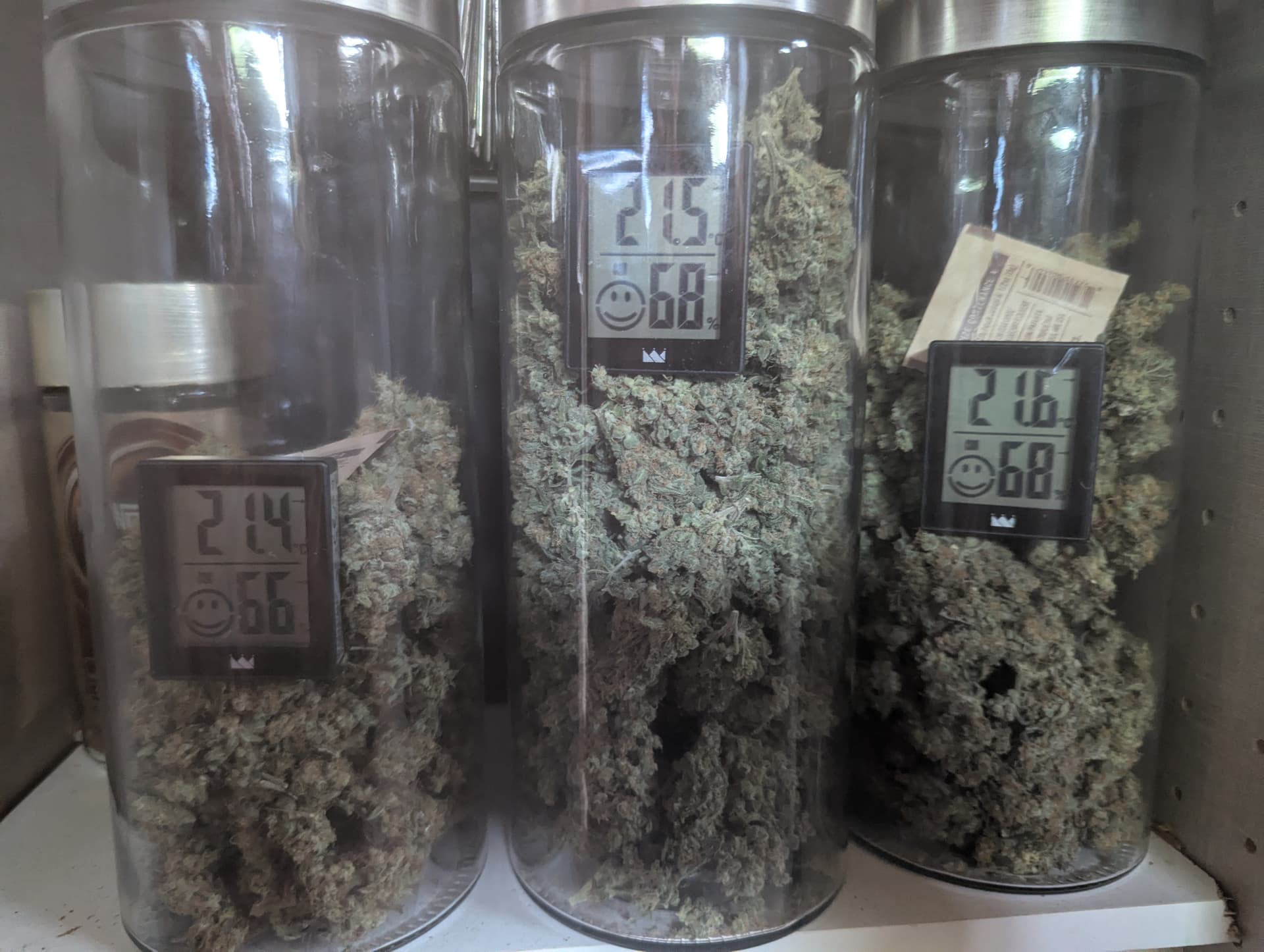 Nach der Ernte, dem Trocknen und dem Trimm sind die Sorten, getrennt voneinander in Gläser gewandert