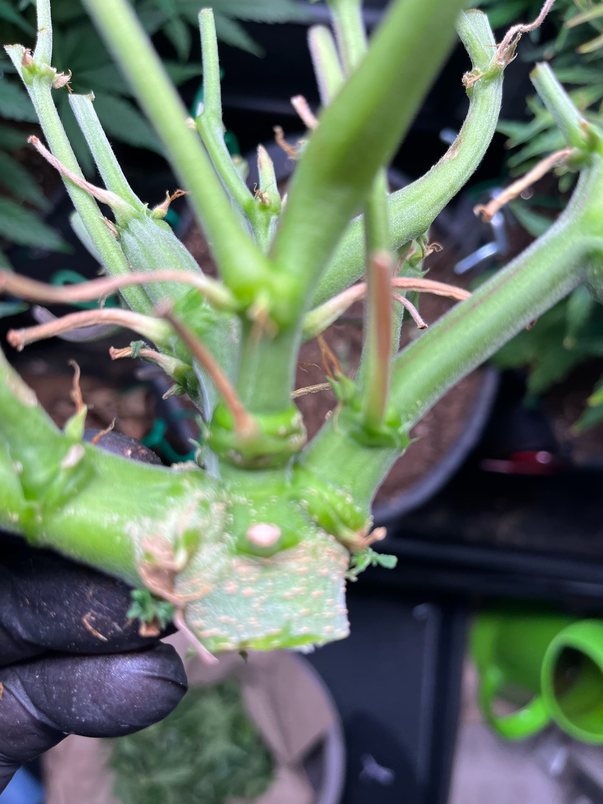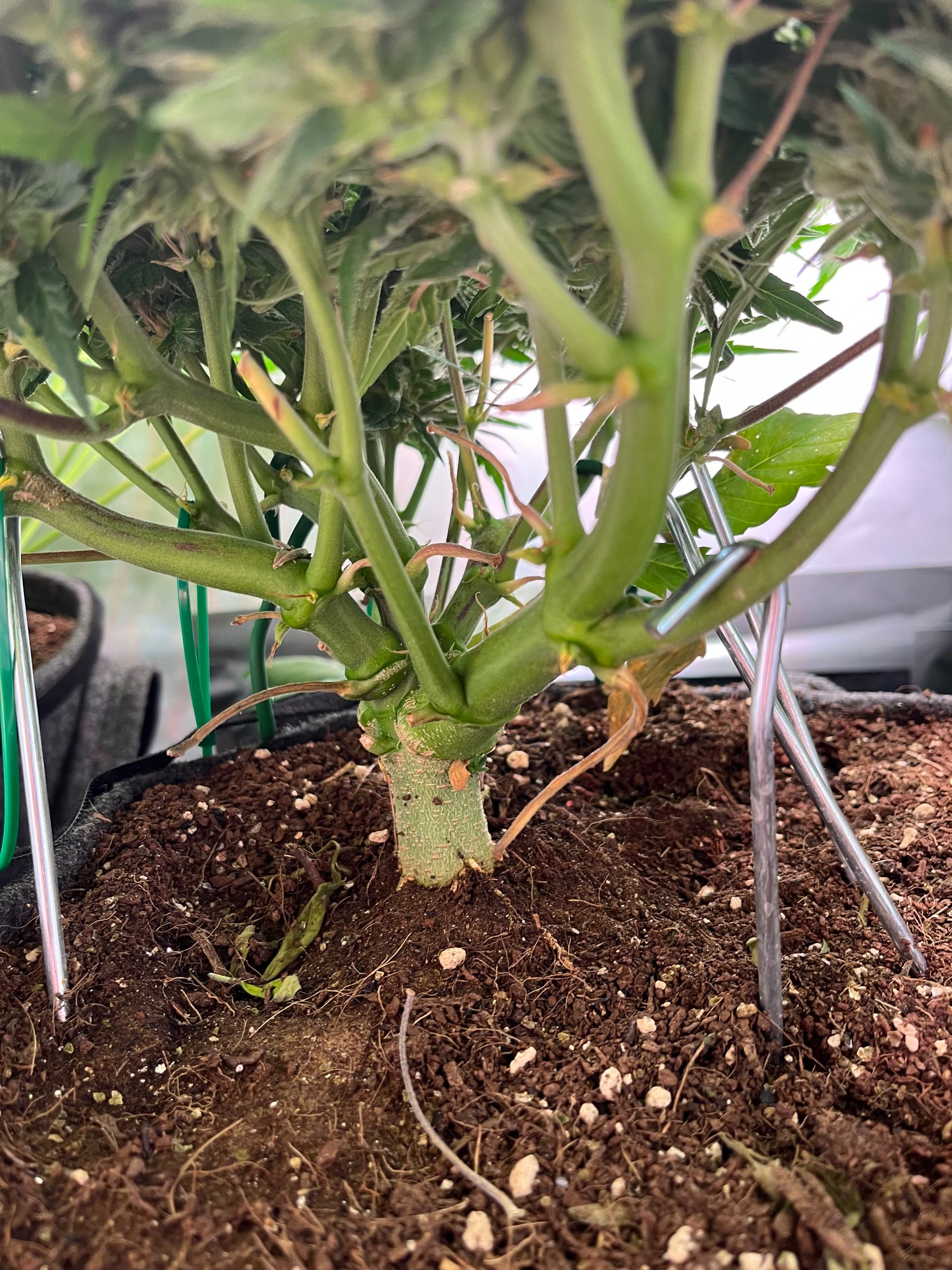 Wie getoppt wird und LST gemacht wird, weiß man (macht es einfach) oder es gibt genug Lektüren wie man es machen könnte. Ich toppe die 6 Nodie (raus puhlen reicht) und breite dann alle Zweige sternförmig aus und arbeite dann nur noch nach, damit ich auf einer Höhe bleibe.