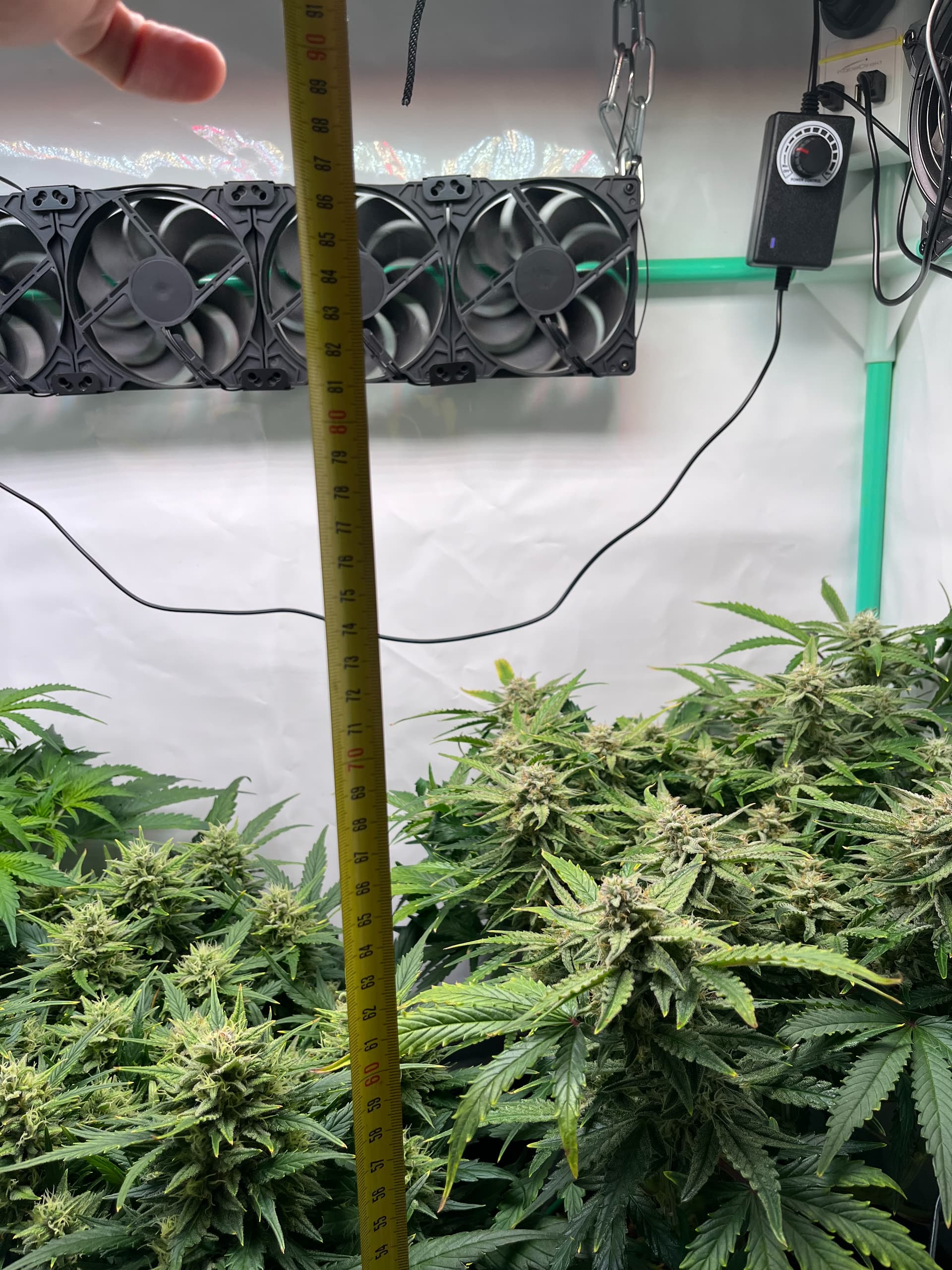 Die ersten drei Wochen war es sehr windig, der AC Infinty oszillierend Stufe 4 über Pflanzen aber schon ordentlcih Bewegung in den Blättern… PC Lüfter liefen auch.