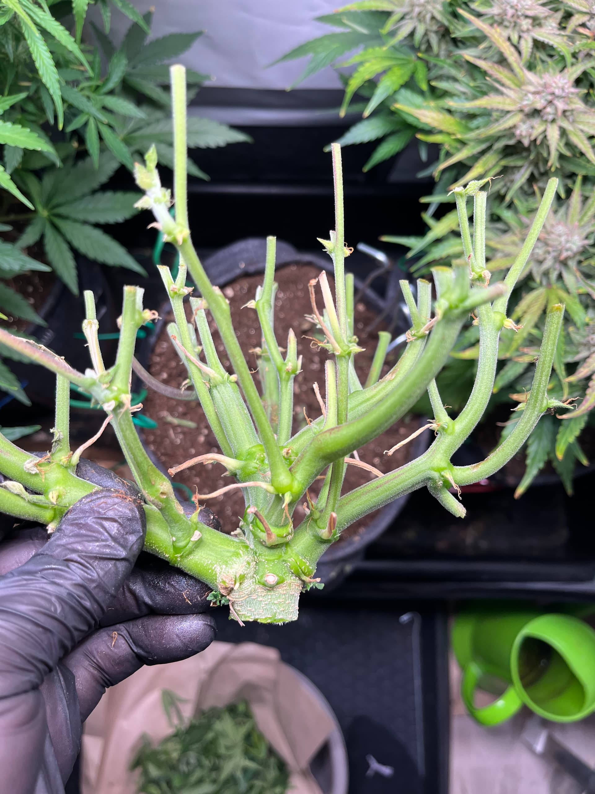 … da ich ja einfach zu faul für einen Growreport bin, zeig ich mal zusammenfassend wie ich in meinem aktuellen Grow (Ernte ca.04.05.24) meine Autos schön klein trainiert habe. Was bei rum kommt (?) zeige ich dann wenn ich die Pflanzen ernte…