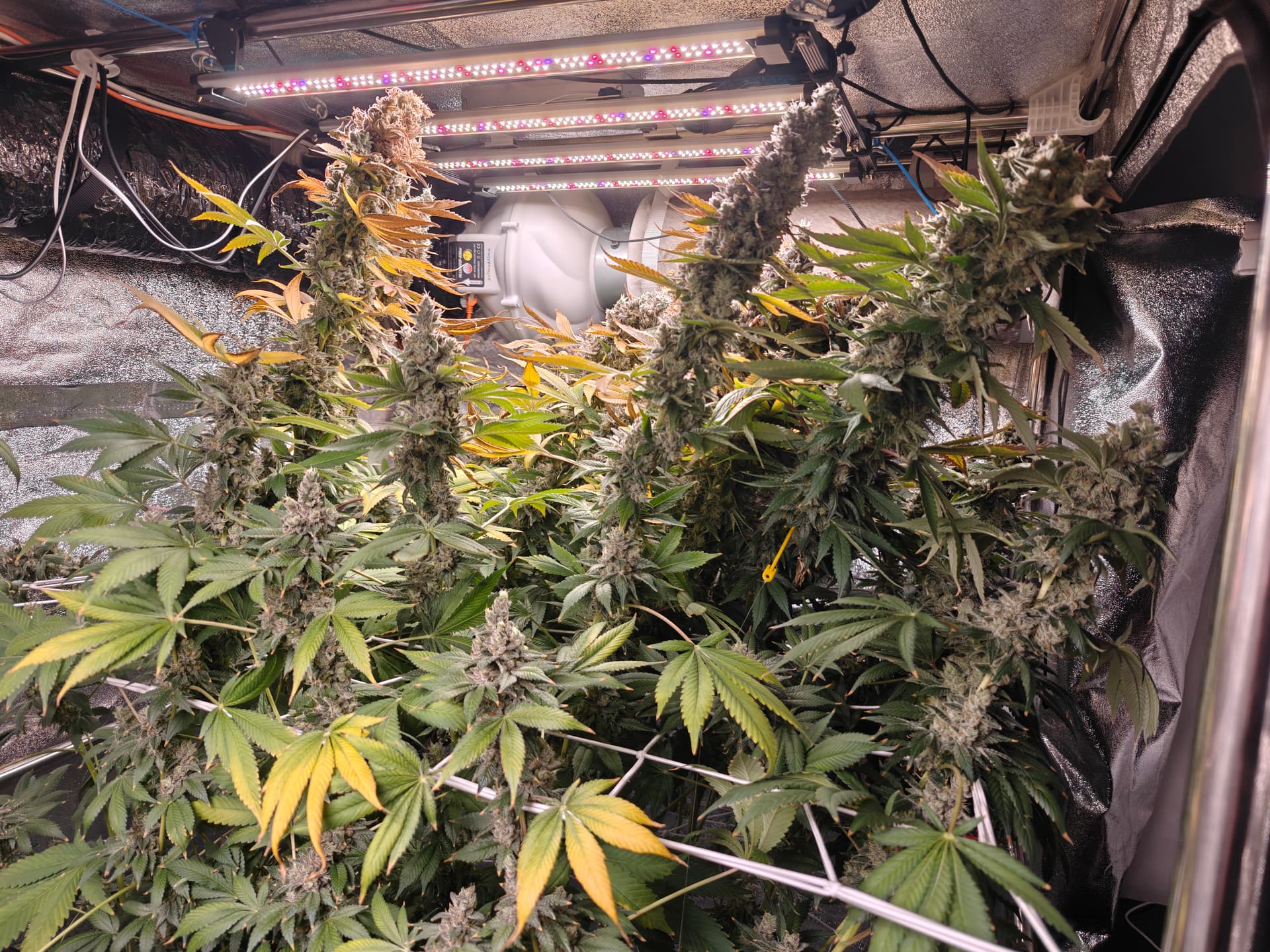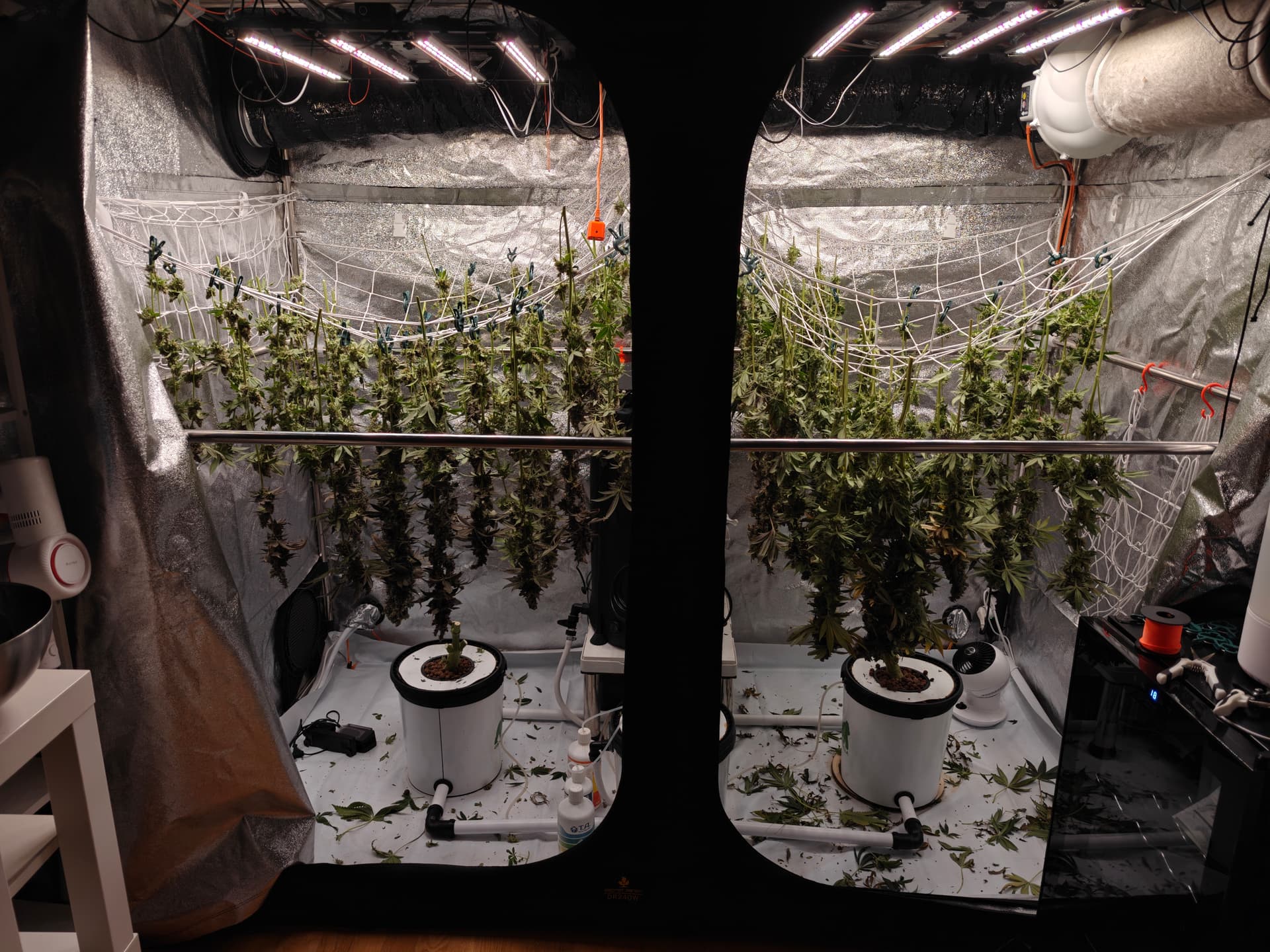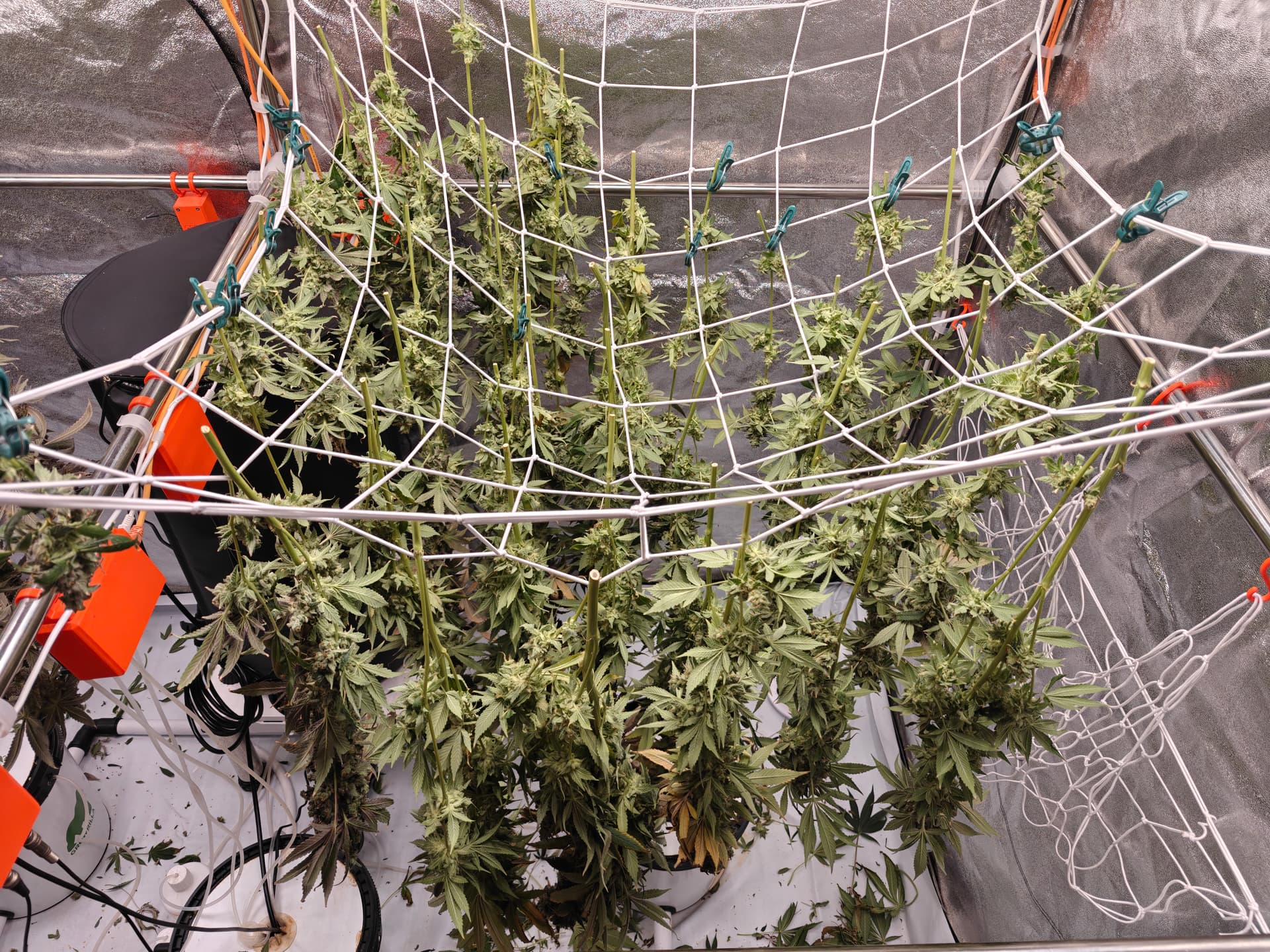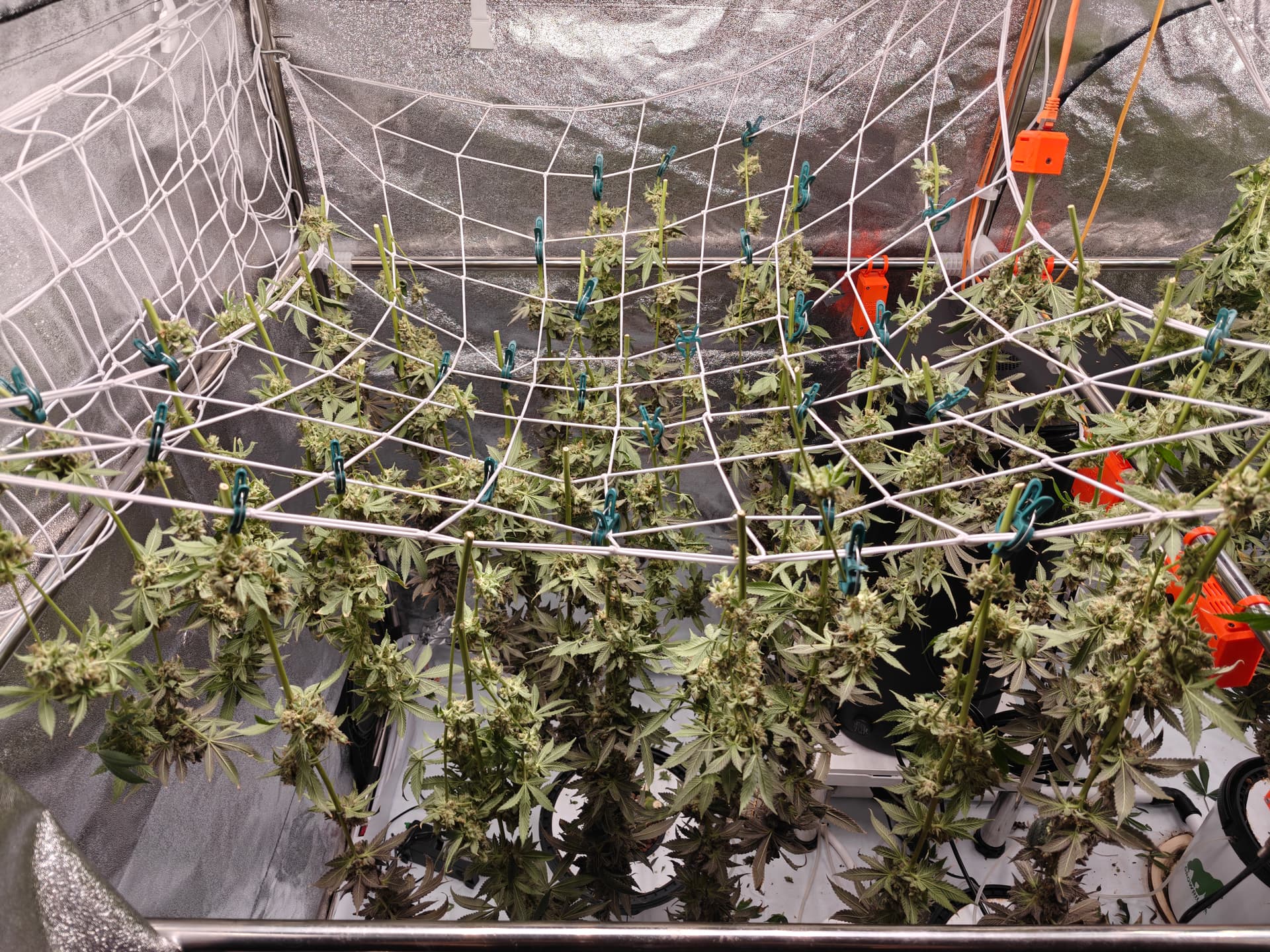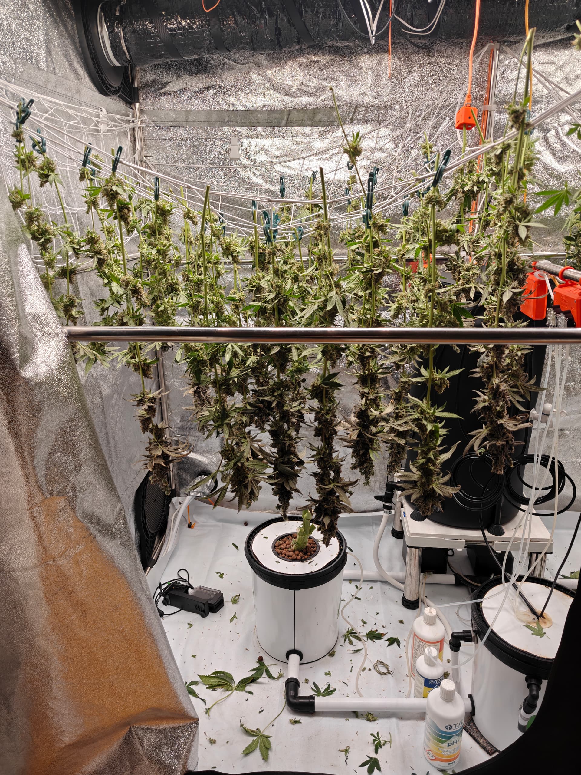 Lektion fĂŒrâs nĂ€chste Mal: Wenn das Zelt hochskaliert, definitiv auch die wesentlich lĂ€ngeren Strecken zwischen Ventilator und Head Buds beachten⊠und halt definitiv noch ein biĂchen âniedrigerâ in die BlĂŒte gehen.
