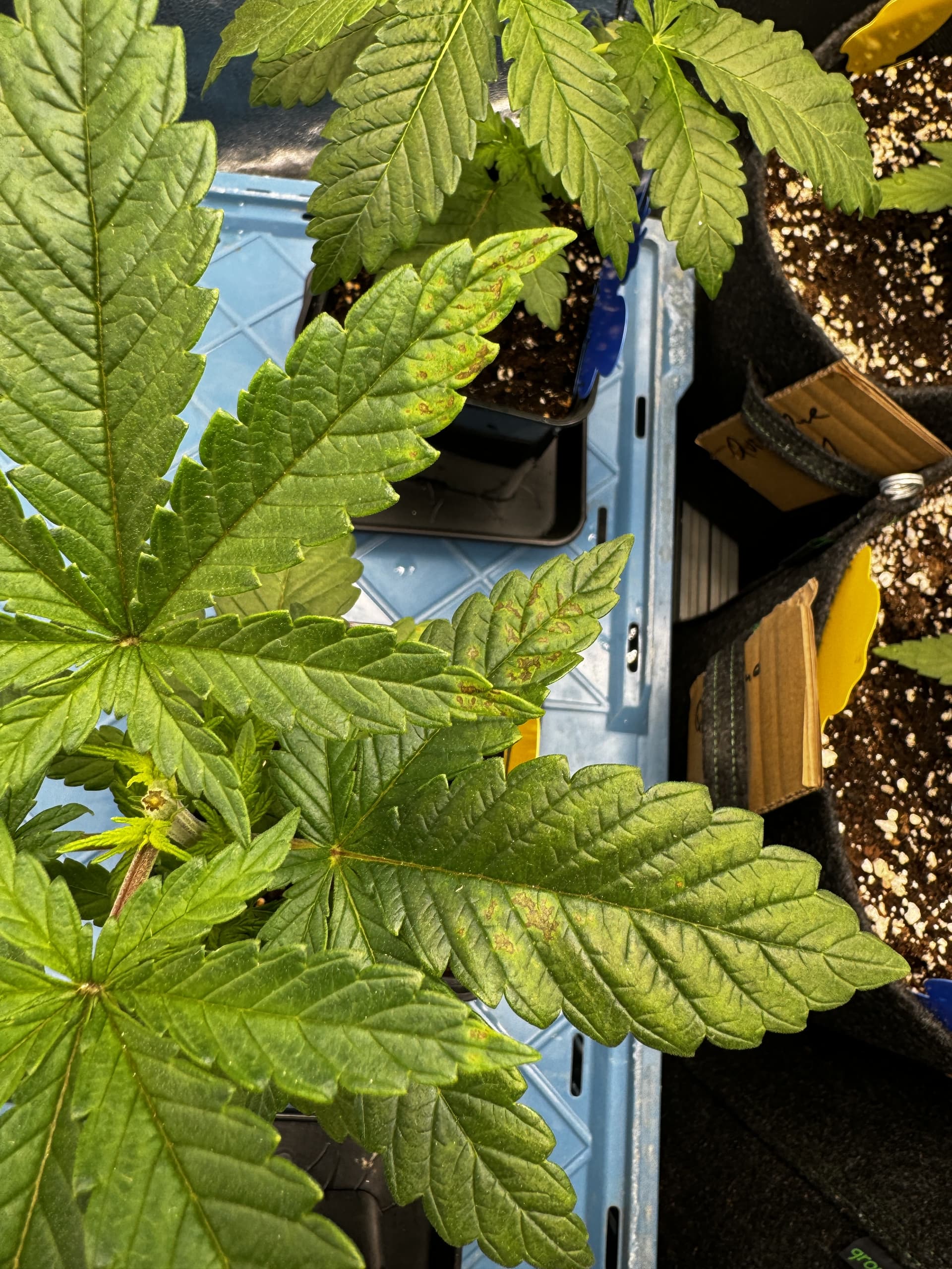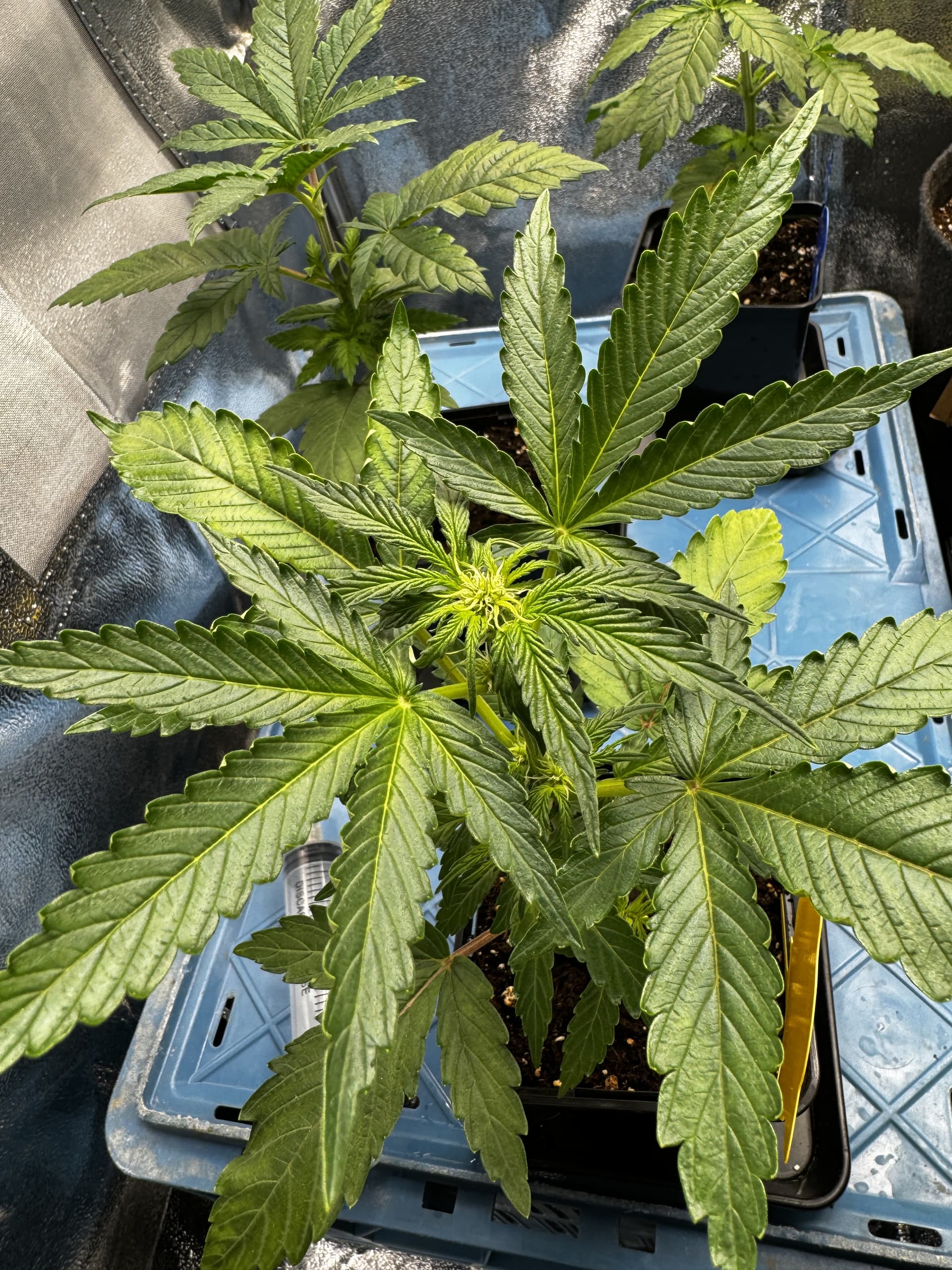 Nachdem ich mir hier hab sagen lassen, dass die weitläufige Meinung ist, dass ab dem 1. Fünf-Finger-Blatt die Wachstumsphase beginnt, sind wir dort nun angekommen. Es gab jetzt auch das erste mal Dünger nach Schema, es hatten sich nämlich auch bereits Mangelerscheinungen gezeigt, woran genau es mangelt, konnte ich nicht ermitteln. Gegossen nach 1/3 Methode. Wird sich dann die Tage zeigen, ob fehlender Dünger das Problem war/ist.