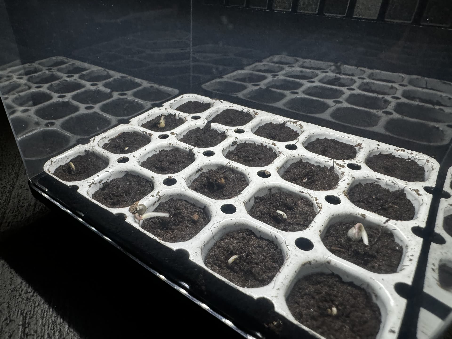 Nachdem nun mittlerweile definitiv festgestanden war, dass die Teil-Legalisierung zum 1.4 kommt, habe ich direkt den Propagator vorbereitet und die Samen eingesetzt. Es kann doch schonmal eine Weile dauern, bis was keimt, aufgrund meiner bisherigen Gemüseerfahrung bin ich davon ausgegangen, das dauert mindestens eine Woche. Zudem hatte ich auch schlechte Erfahrungen mit der Keimfähigkeit gemacht, daher auch mehr Samen in die Erde geworfen. Ich wollte eben auf Nummer sicher gehen und auch keine Zeit verlieren.