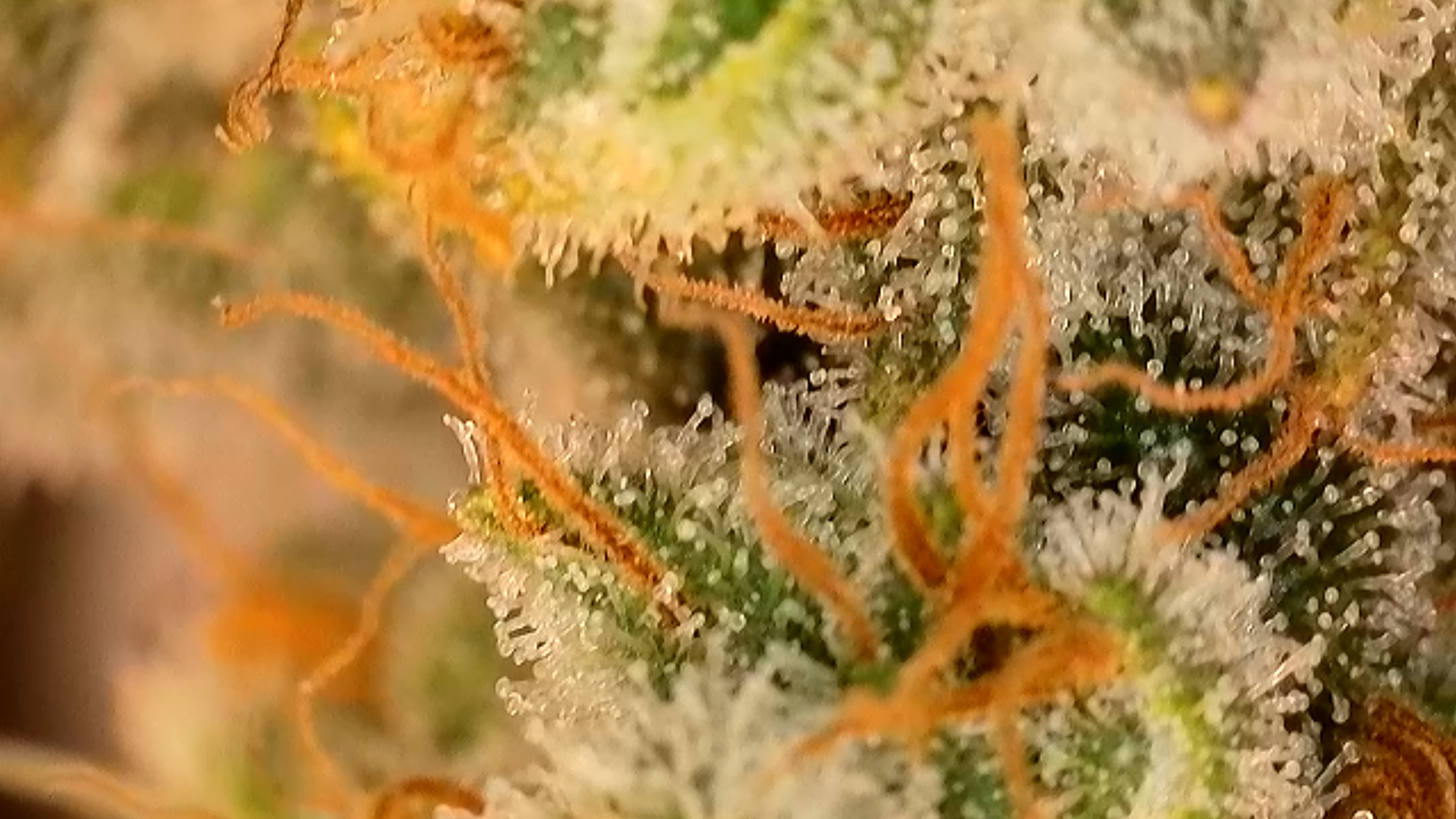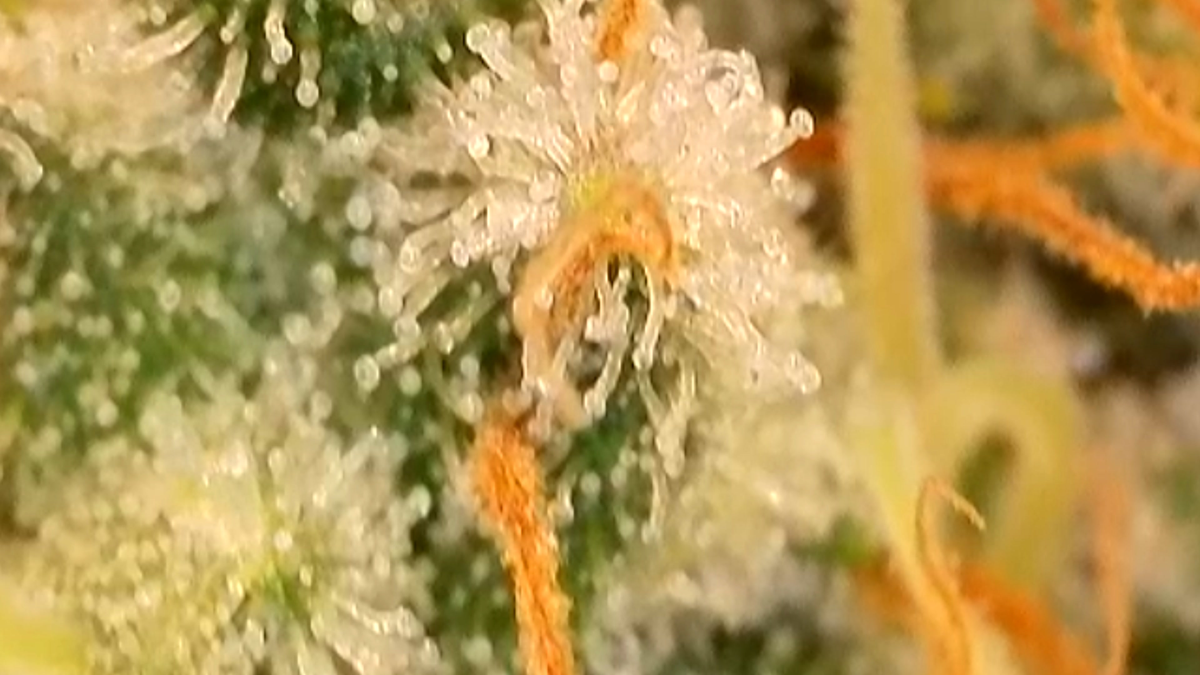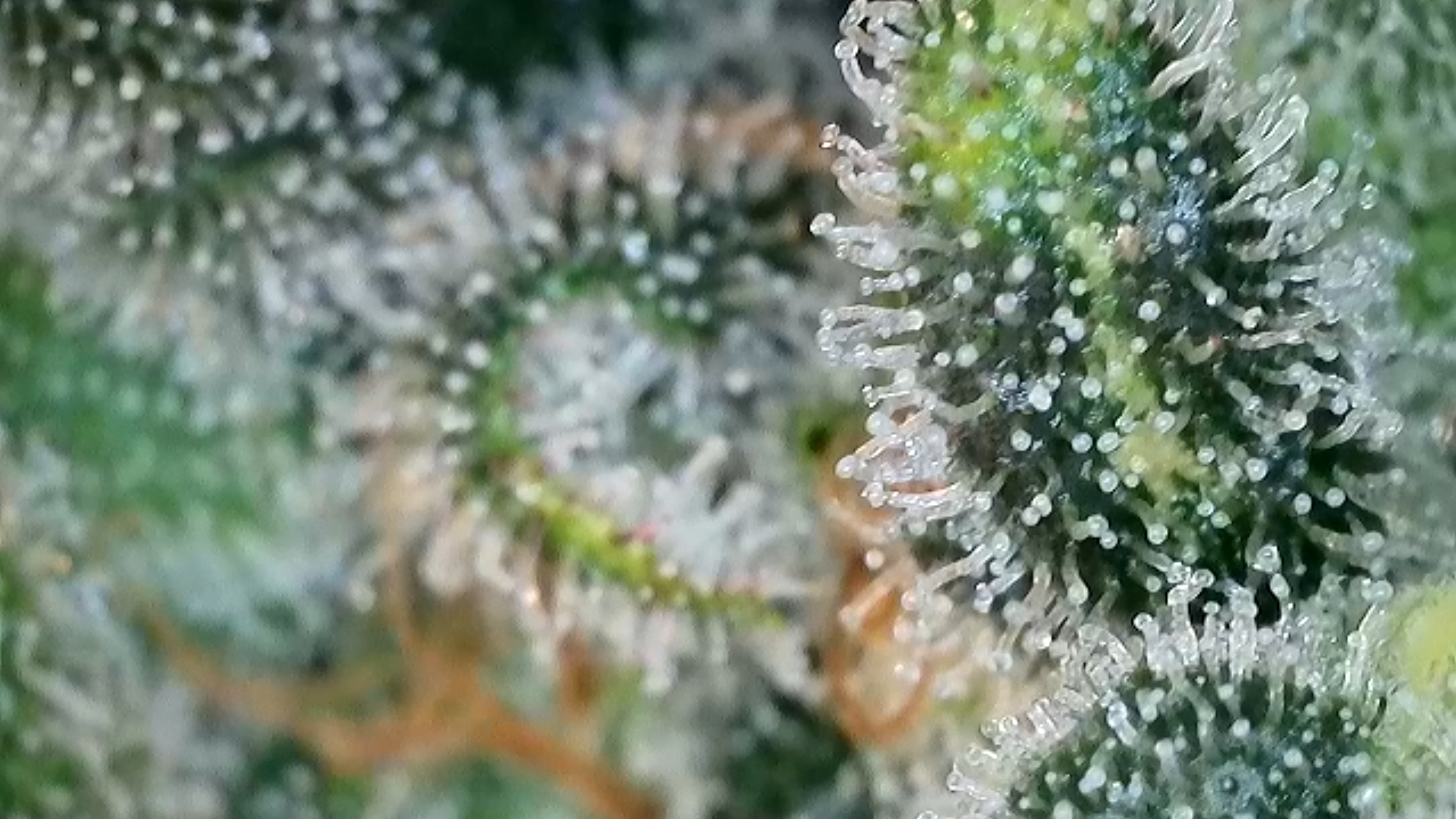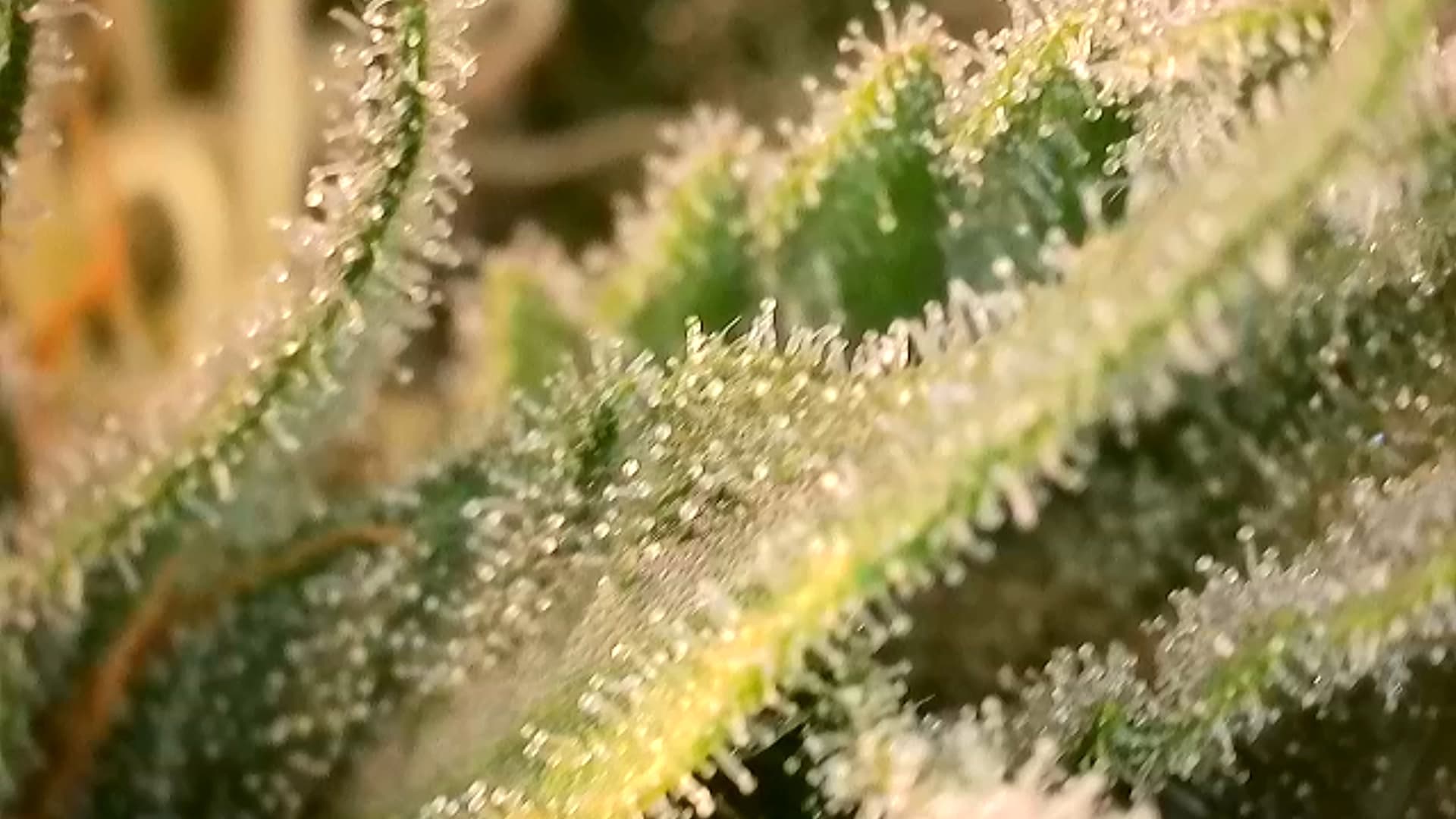 Die Trichome werden langsam alle trüb, vereinzelt finden sich auch bernsteinfarbene.