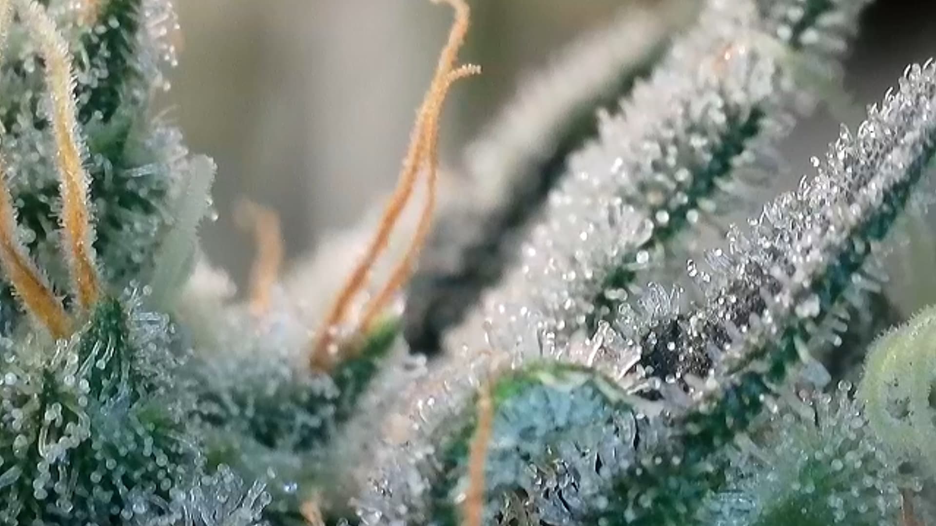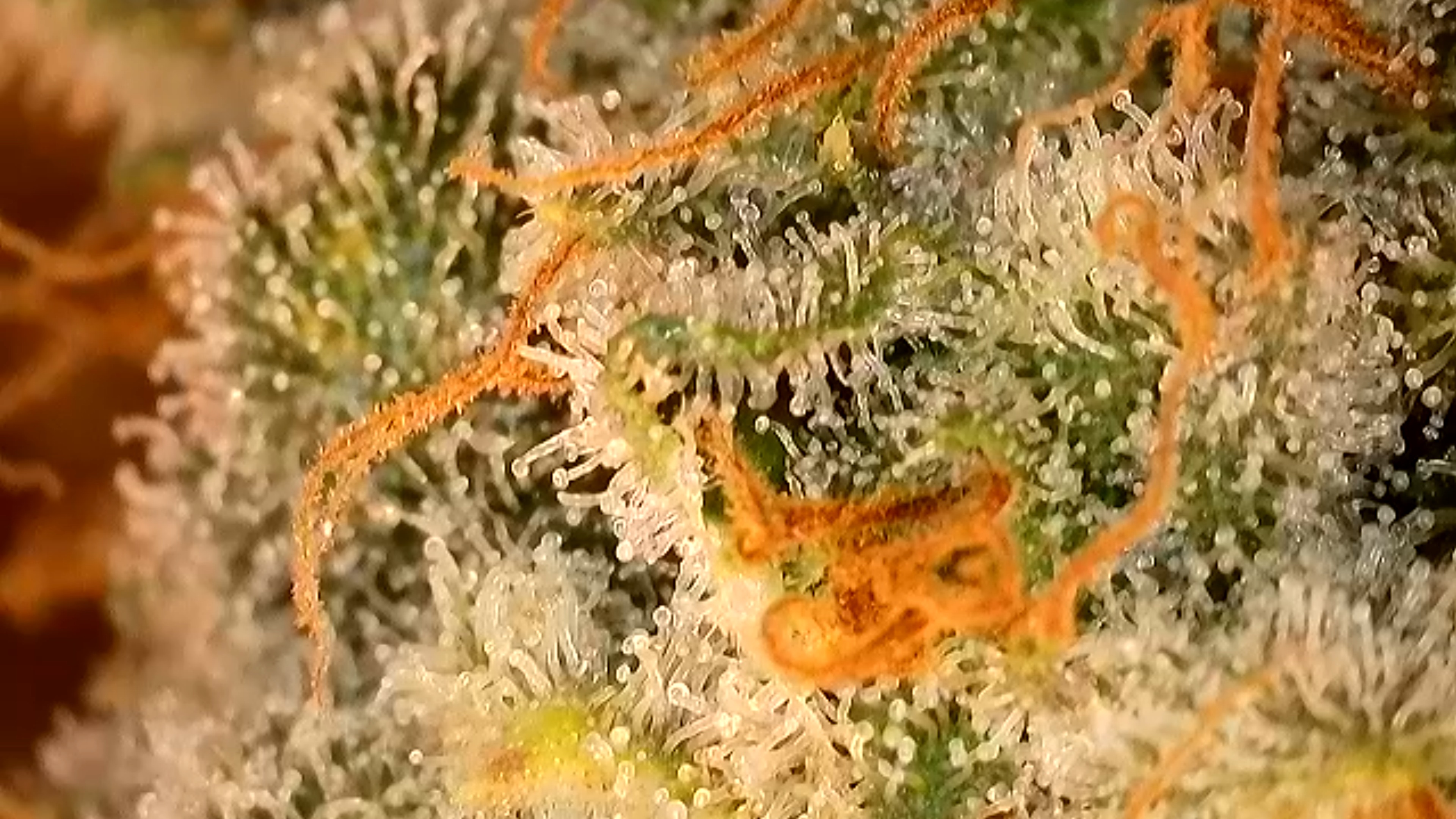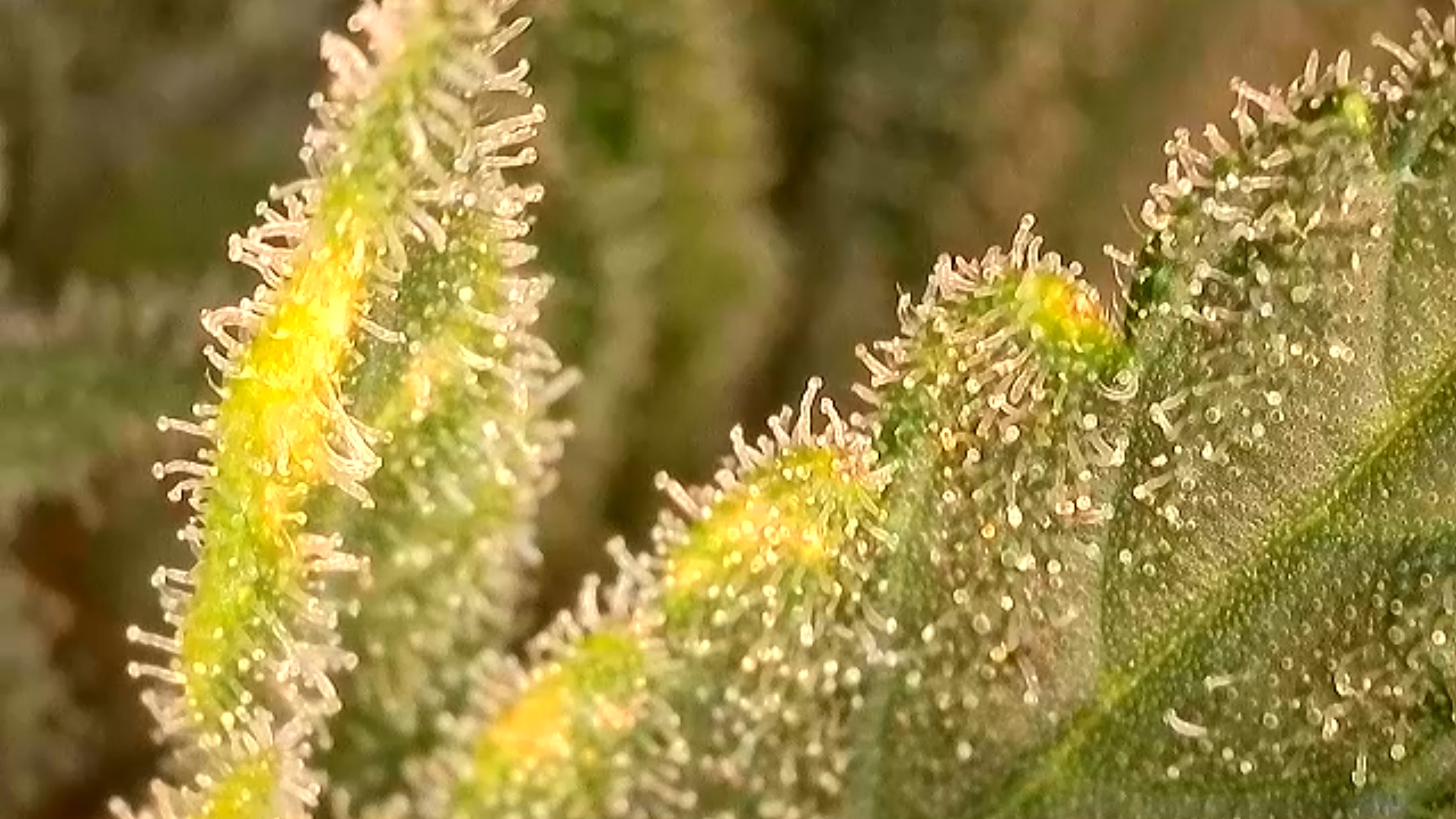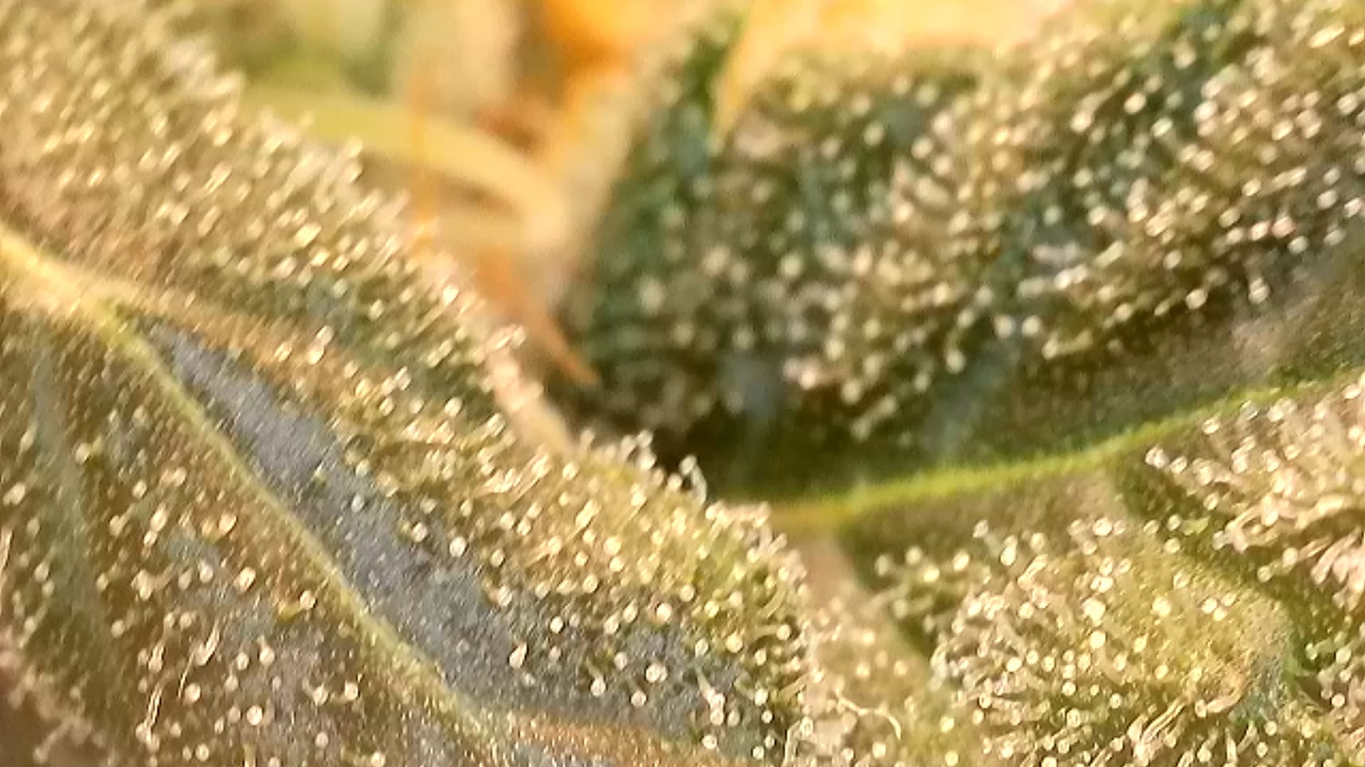 Die Trichome werden langsam alle trüb, vereinzelt finden sich auch bernsteinfarbene.