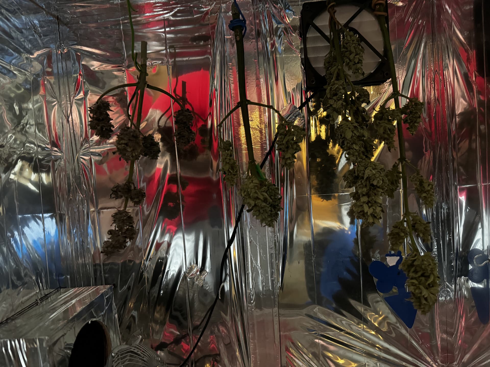 Zum Trocknen habe ich alle drei einem Wet-Trim unterzogen, einfach um die Schimmelgefahr zu minimieren. Nachdem die Ausbeute (wie erwartet" eh nicht so hoch ausfällt, wollte ich dieses Risiko minimieren. Sie hängen jetzt in meiner Shitbox zum trocknen.