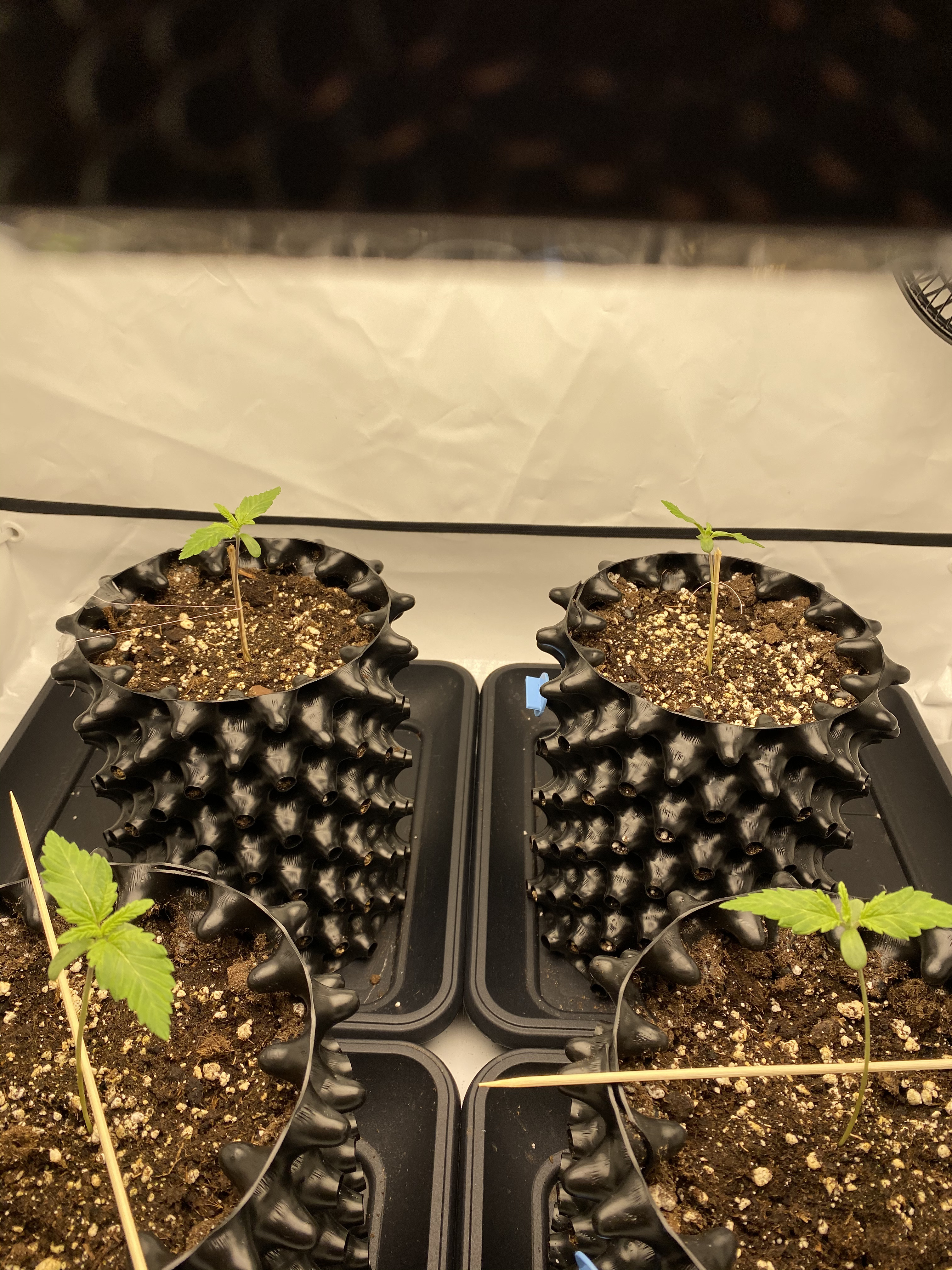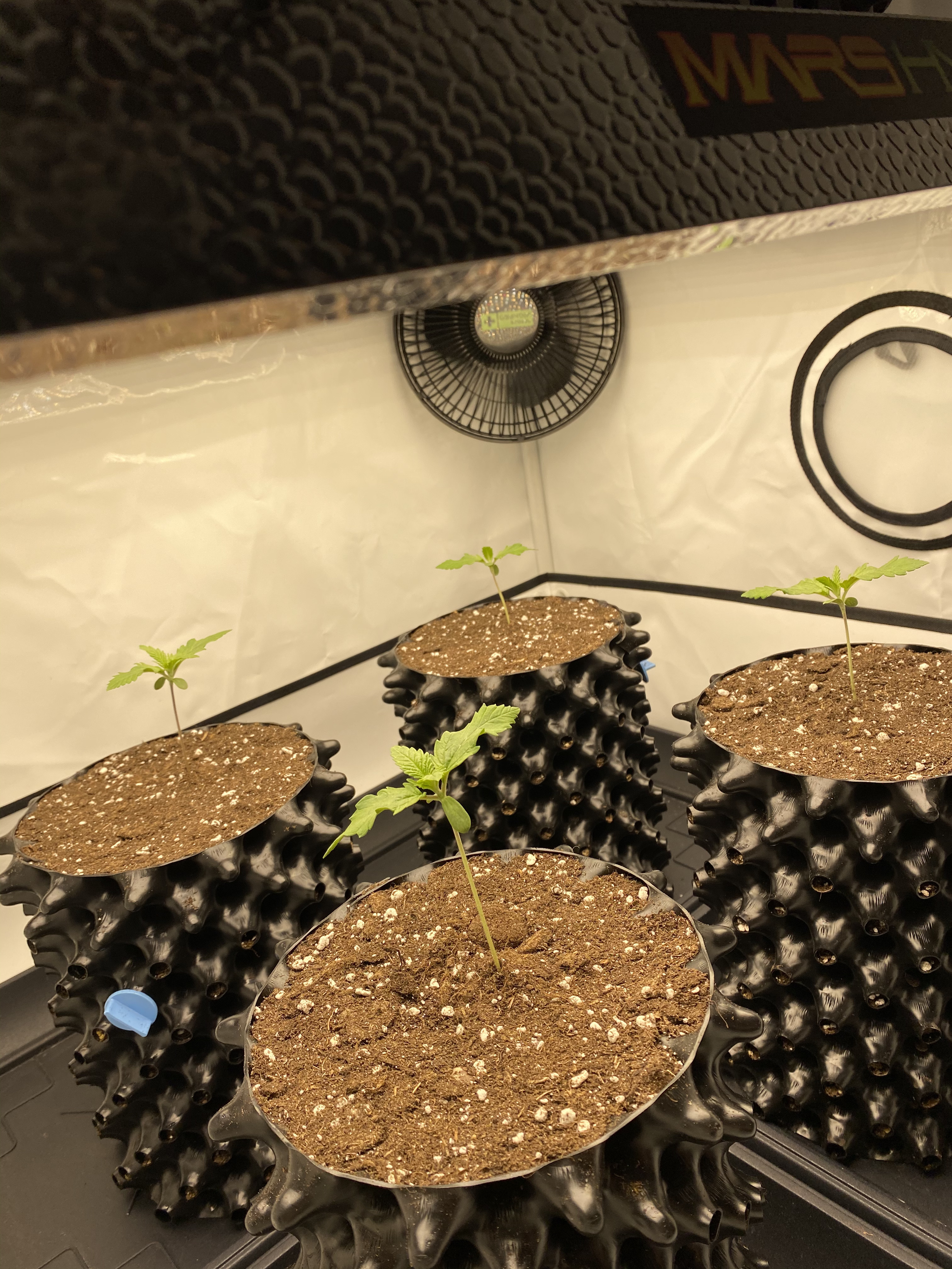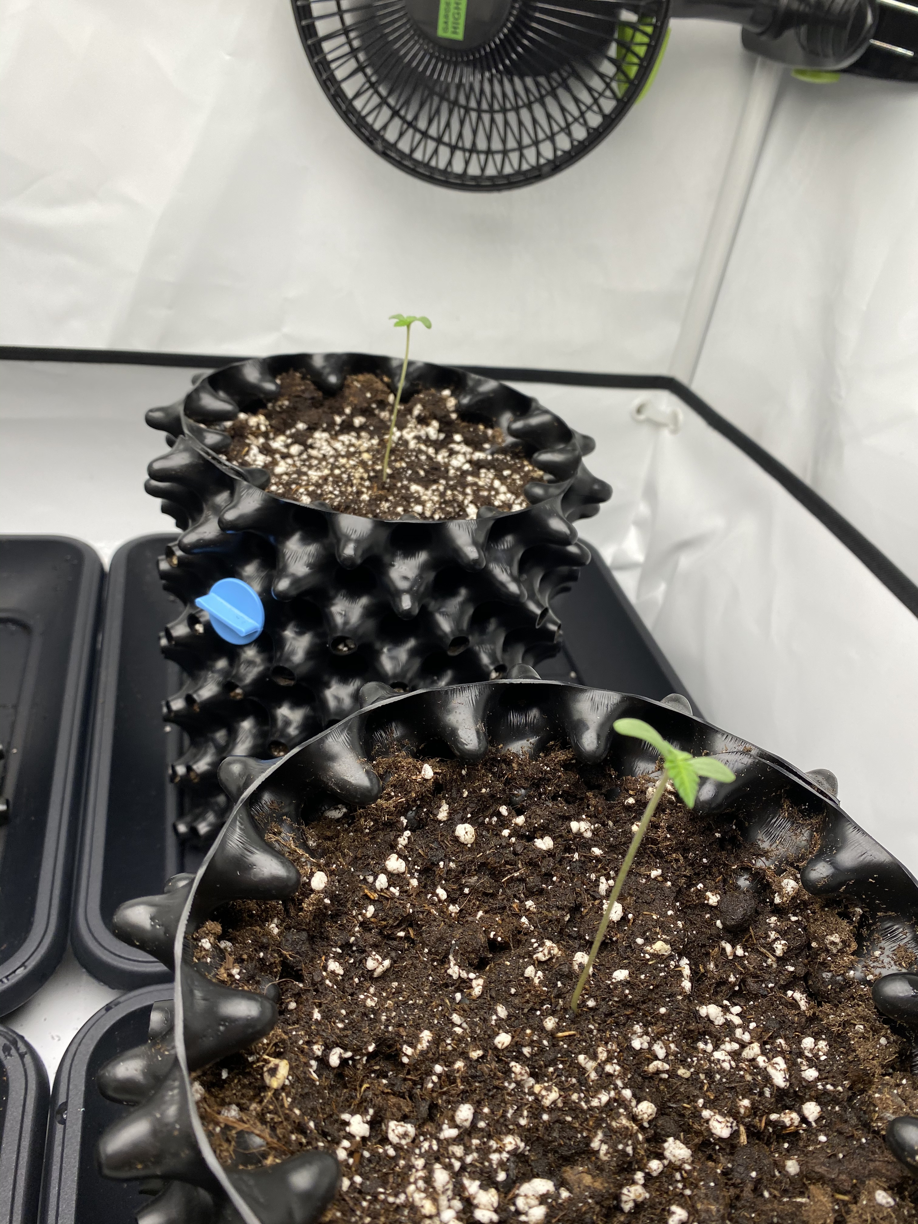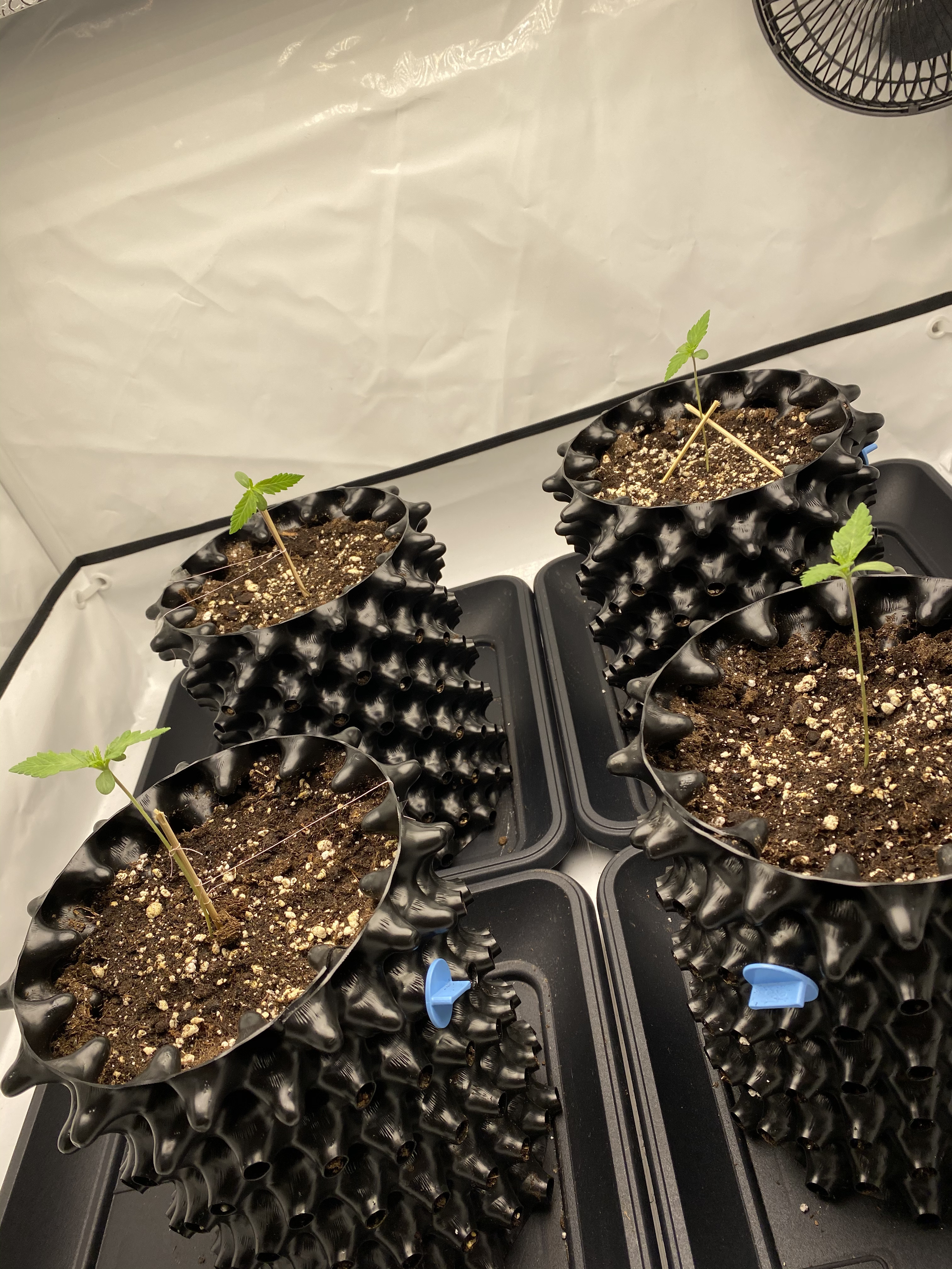 Sieht gut aus, wie meine Vorgänger würde ich den Ventilator anmachen fördert durch die Bewegung das Wurzelwachstum und bilden einen gleichmäßigen Stamm ansonsten könntest du es haben das der Stiel unten dünner ist und im schlechtesten Fall die Pflanze um bricht oder du viel stützen musst.