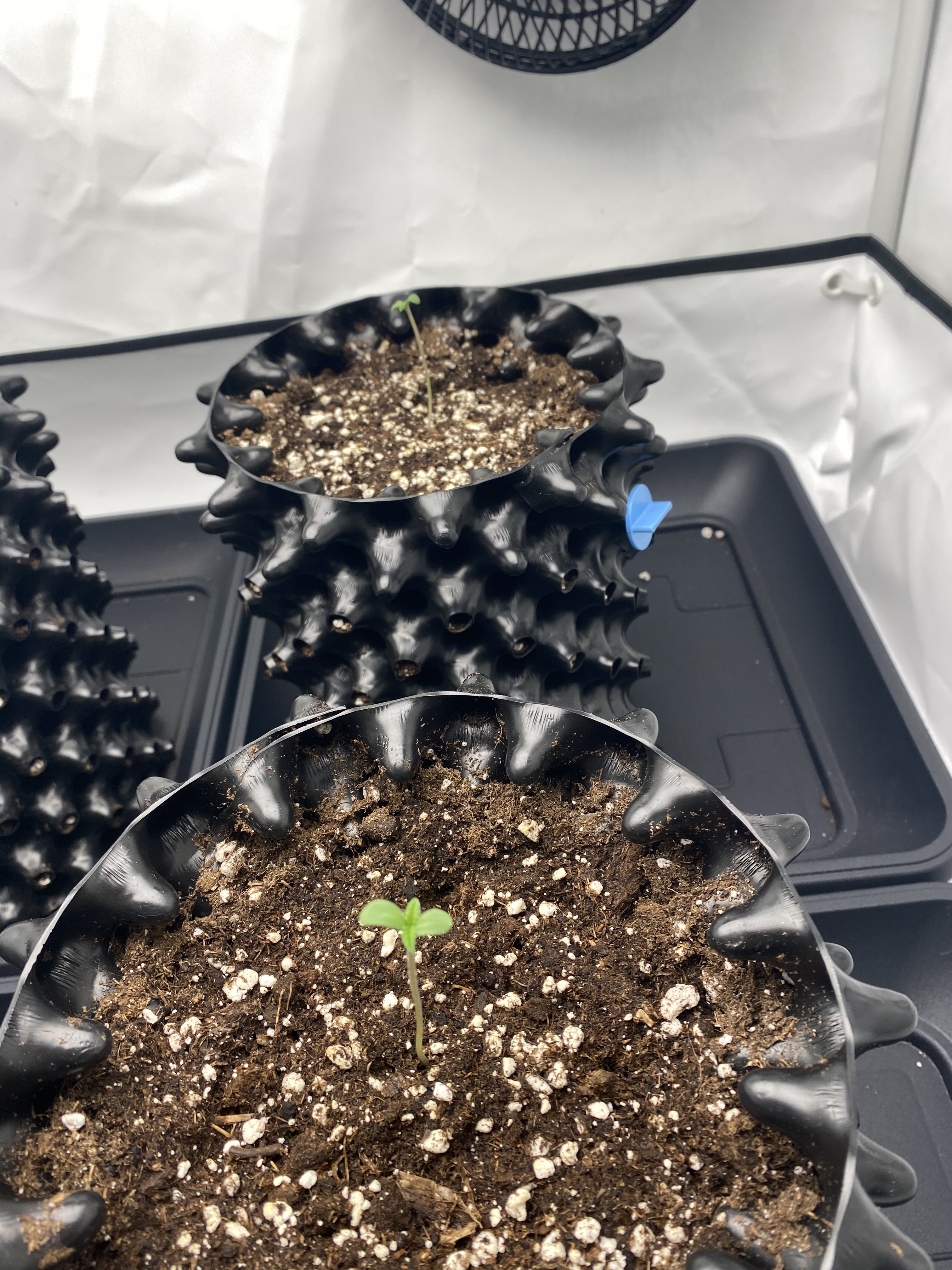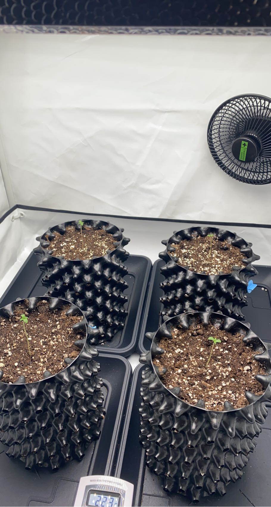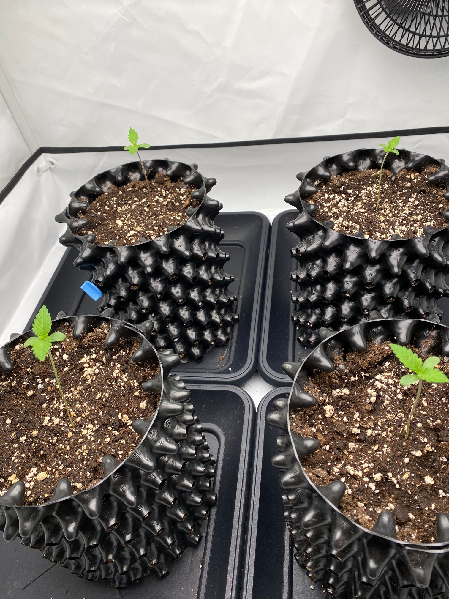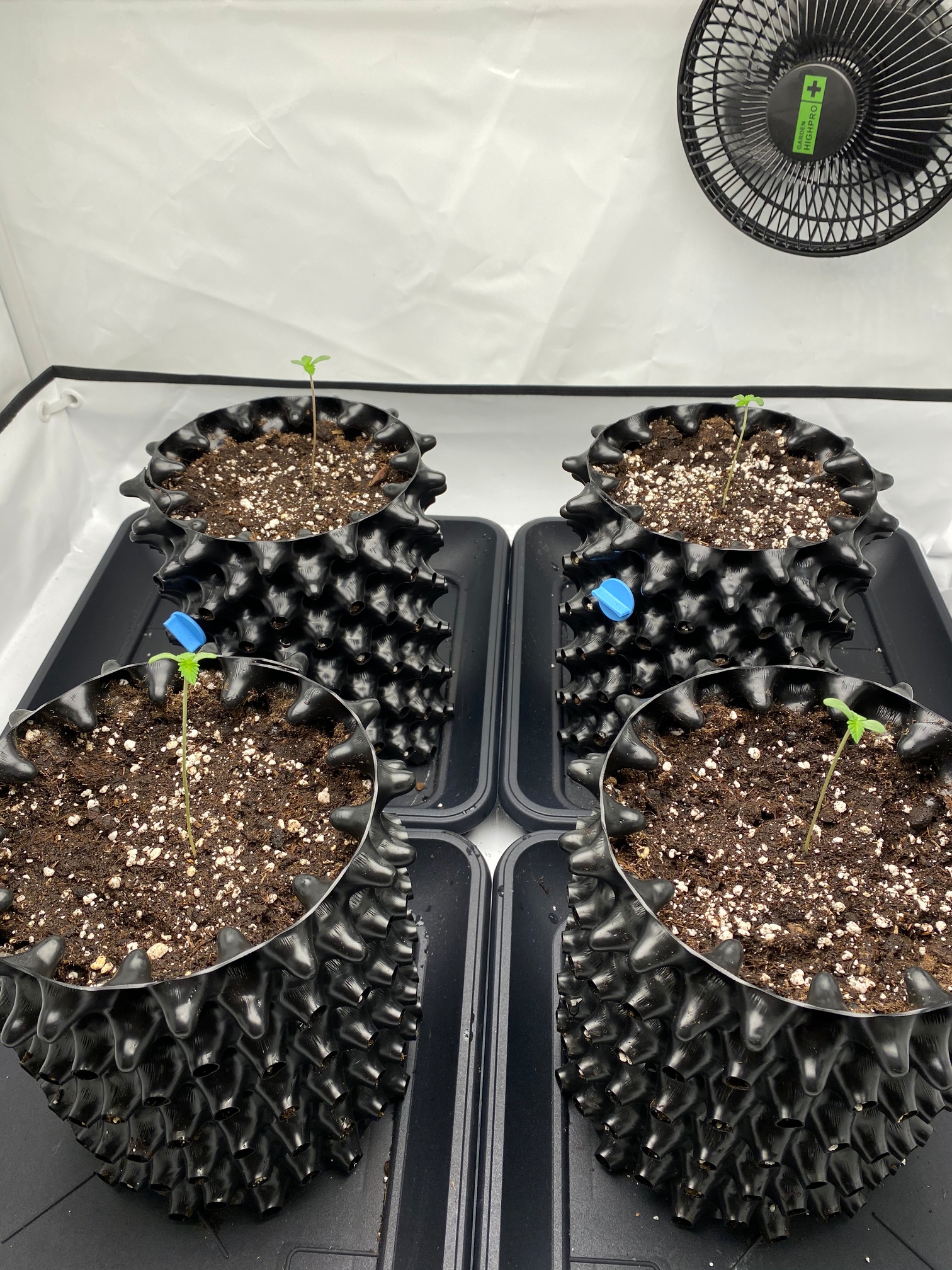 Sieht gut aus, wie meine Vorgänger würde ich den Ventilator anmachen fördert durch die Bewegung das Wurzelwachstum und bilden einen gleichmäßigen Stamm ansonsten könntest du es haben das der Stiel unten dünner ist und im schlechtesten Fall die Pflanze um bricht oder du viel stützen musst.