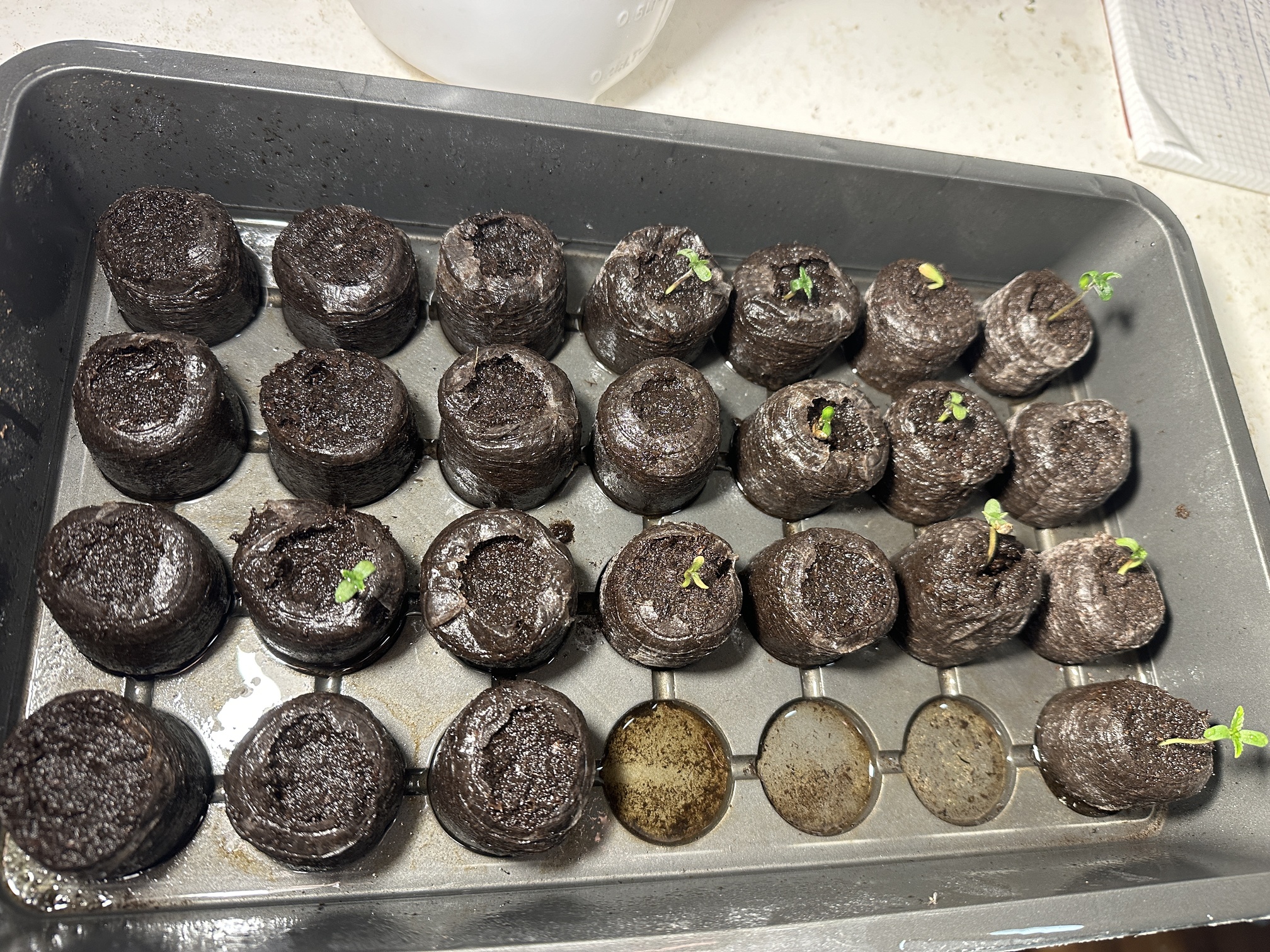 Im Anzuchtkasten habe ich es Ordentlich feucht gemacht. Dennoch waren einige Jiffys sehr Trocken.