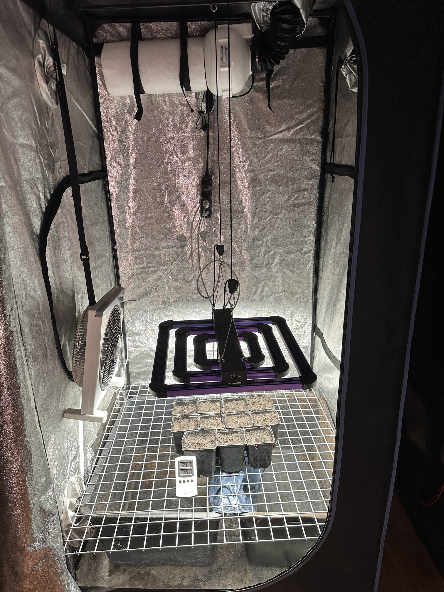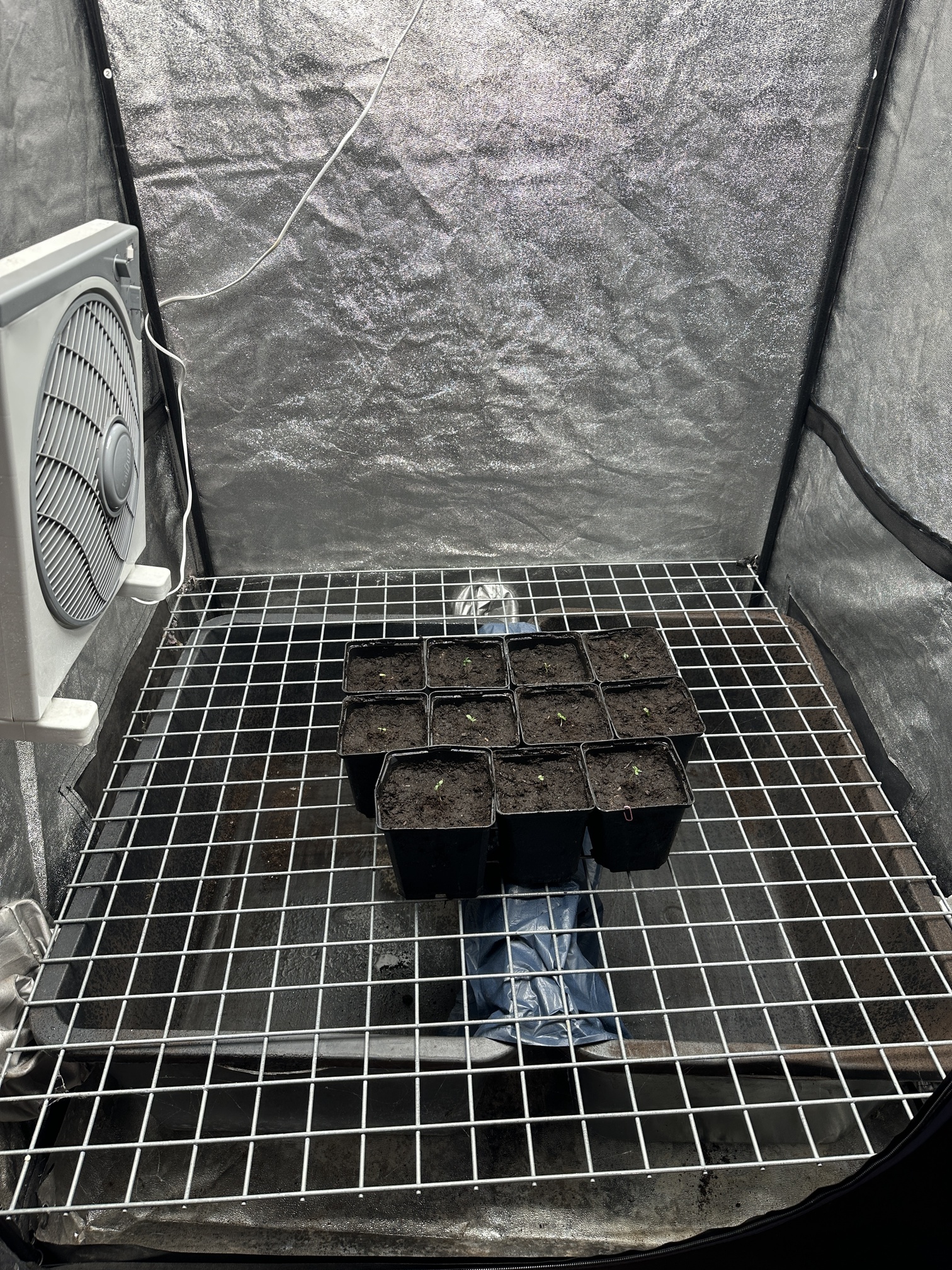 So alle sind eingepflanzt und ins Zelt gestellt auf eine Heizmatte damit sie es schön muckelig haben danach geht es direkt in die Endtöpfe. Wollte 9x 14 L nehmen aber bin mir unsicher da die Pflanzen nicht so groß werden.
