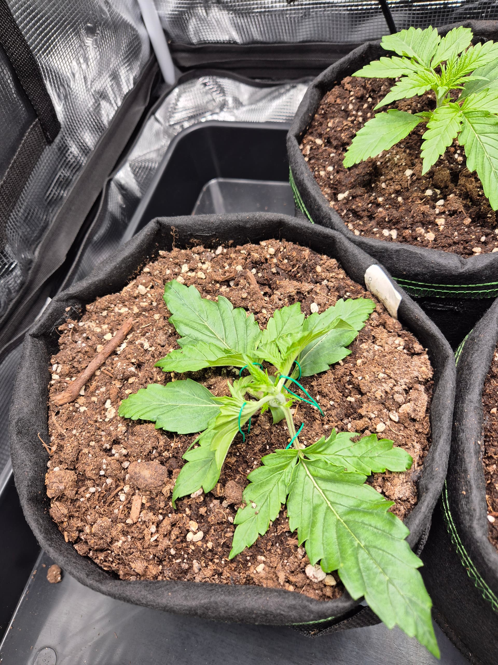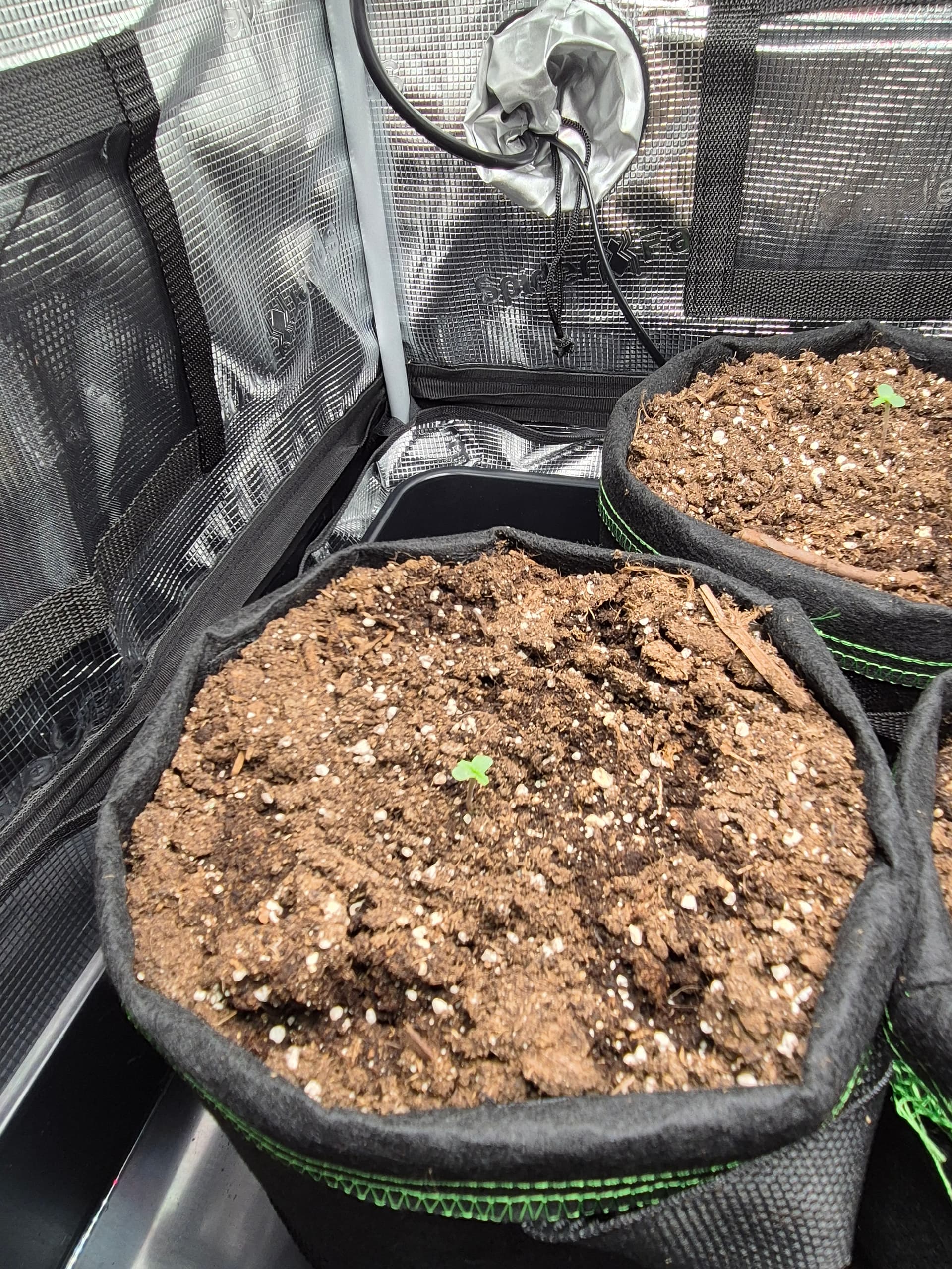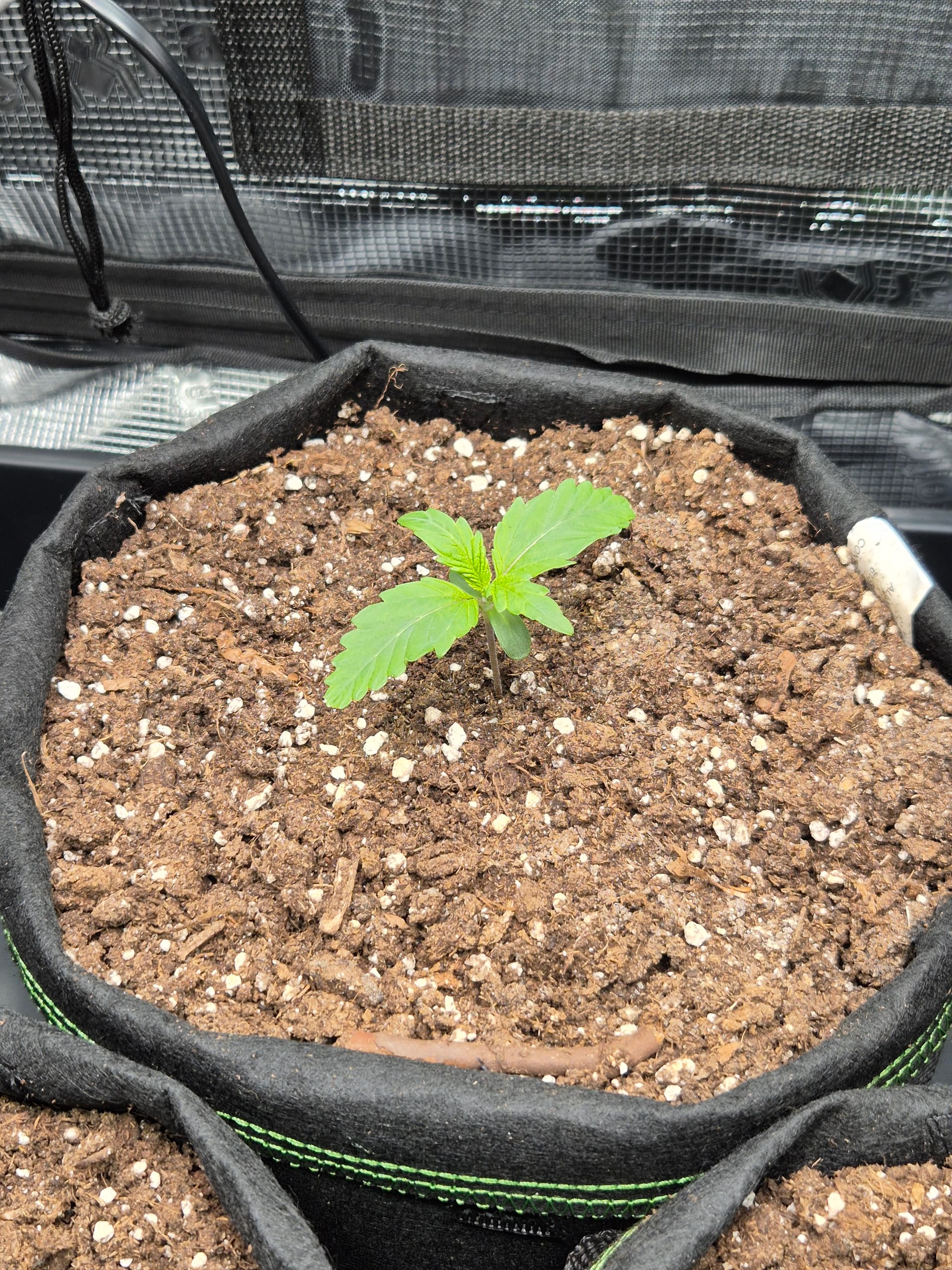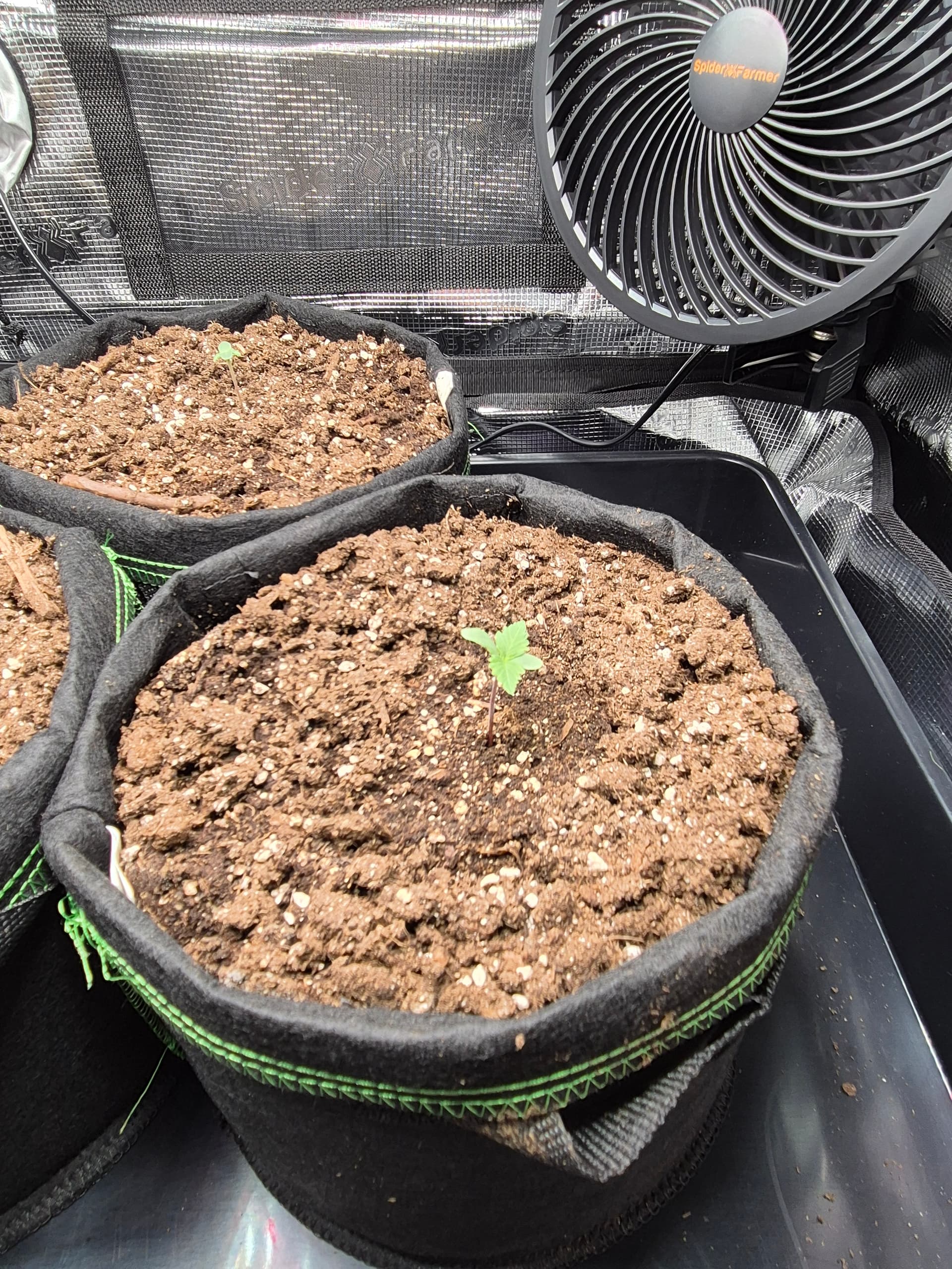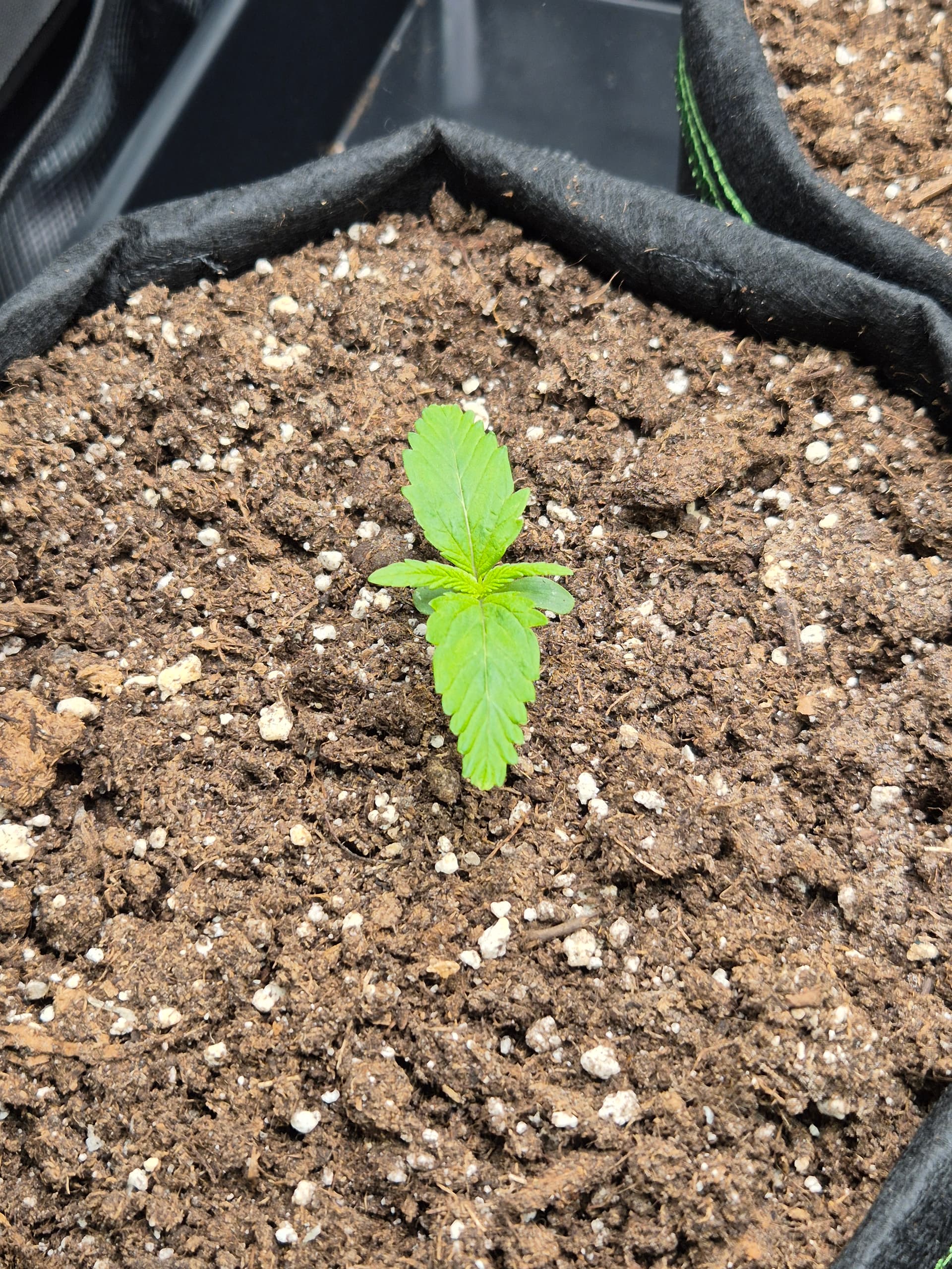 •Gepflanzt wurde direkt in den Endtopf 10L Stofftöpfe mit BB Light Mix. Anfängerfehler, Töpfe waren nicht ganz gefüllt, deswegen umgekrempelt.