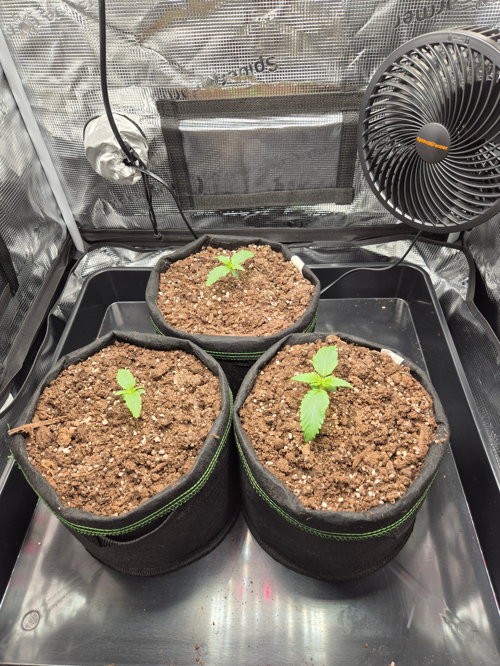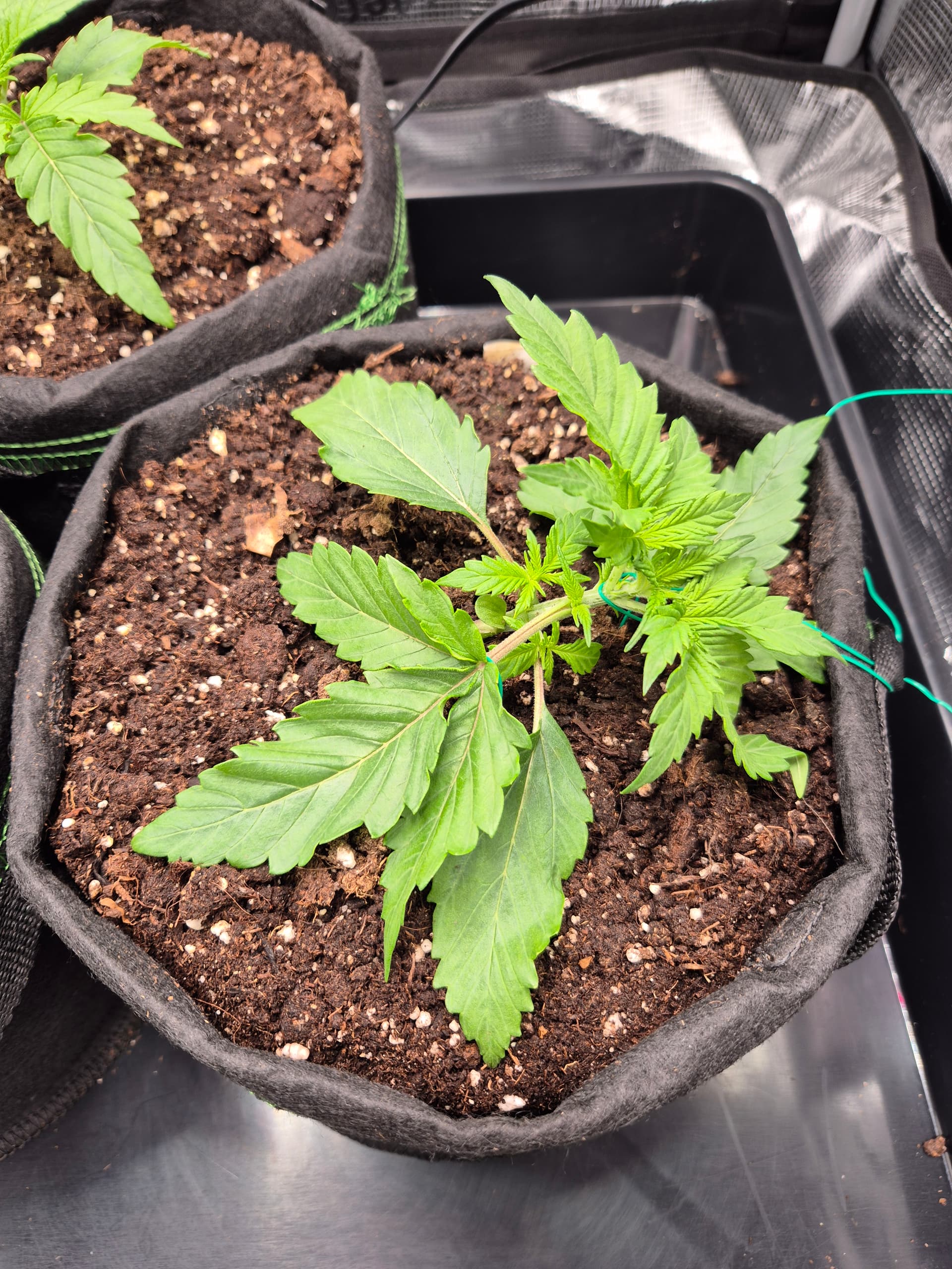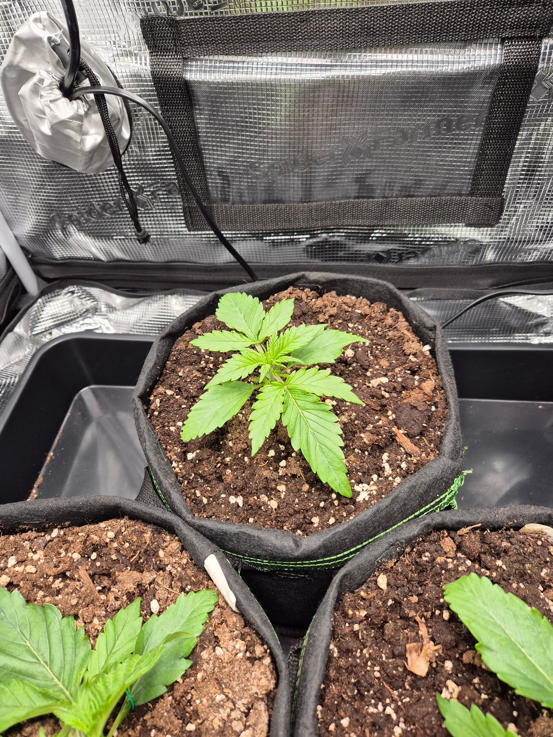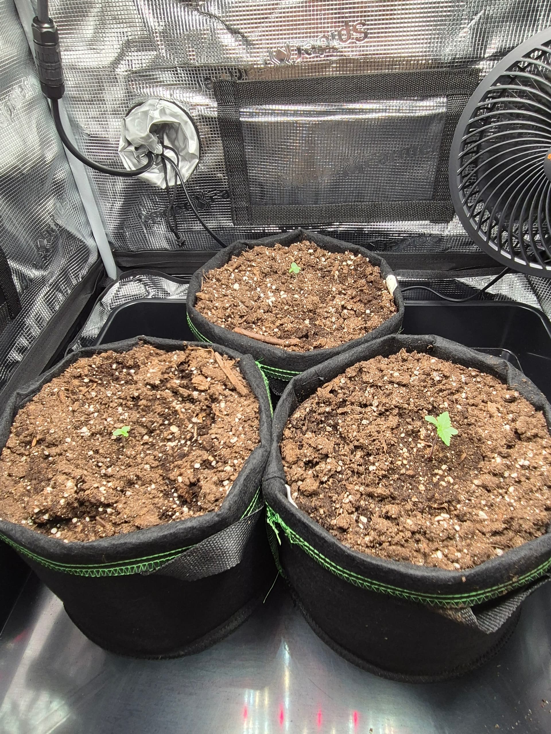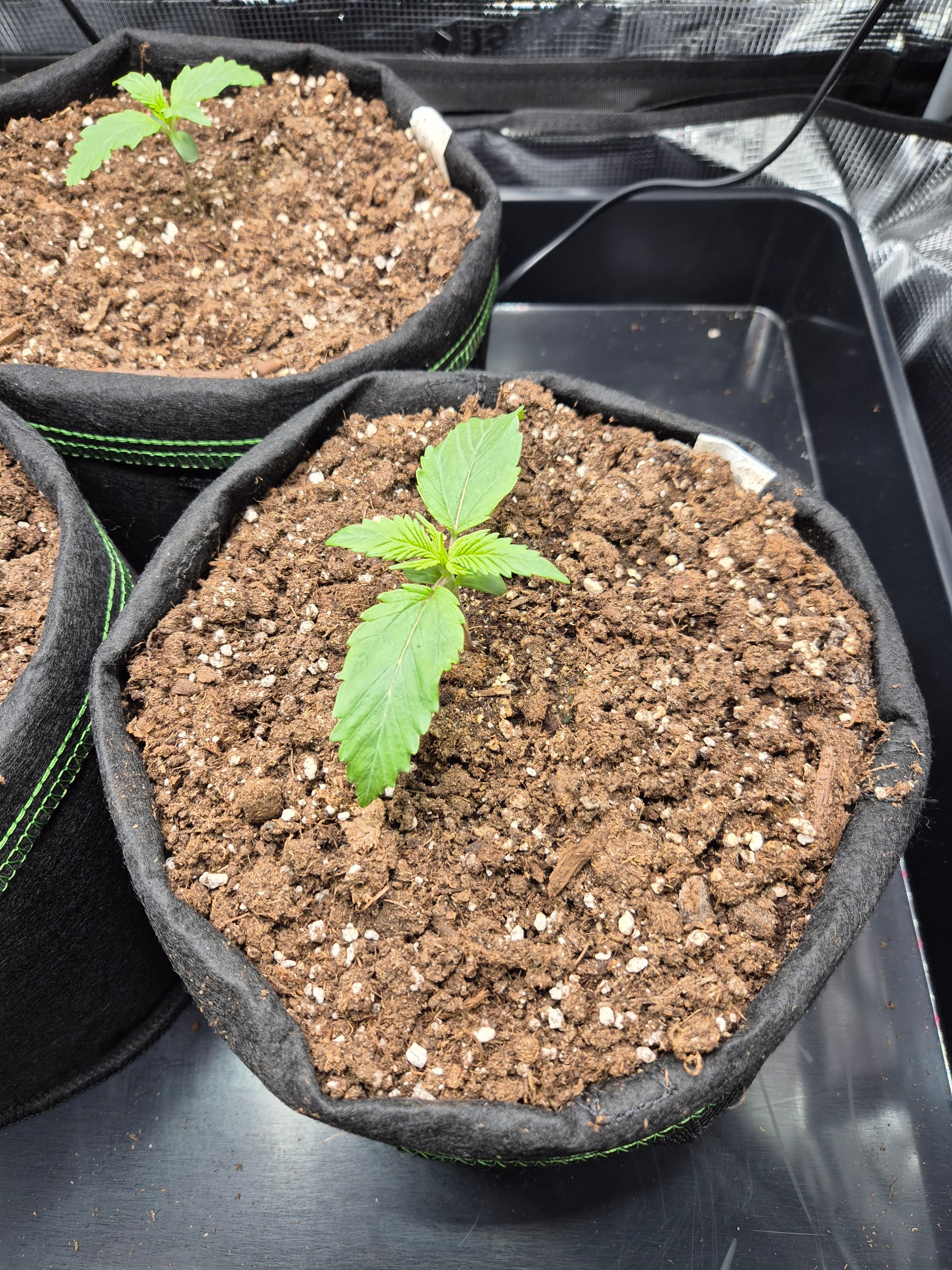 •Gepflanzt wurde direkt in den Endtopf 10L Stofftöpfe mit BB Light Mix. Anfängerfehler, Töpfe waren nicht ganz gefüllt, deswegen umgekrempelt.