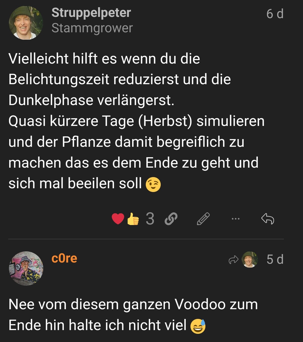 Vielleicht sollten wir mal einen grow Mythen Thread eröffnen, falls es das nicht schon gibt…