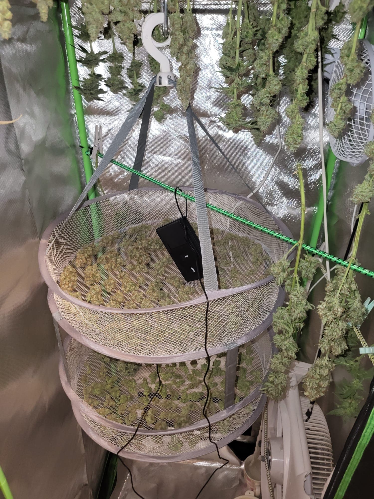 Das hygrometer hänge ich dann so das es möglichst in mitten der ganzen trocknenden Buds hängt ![]()