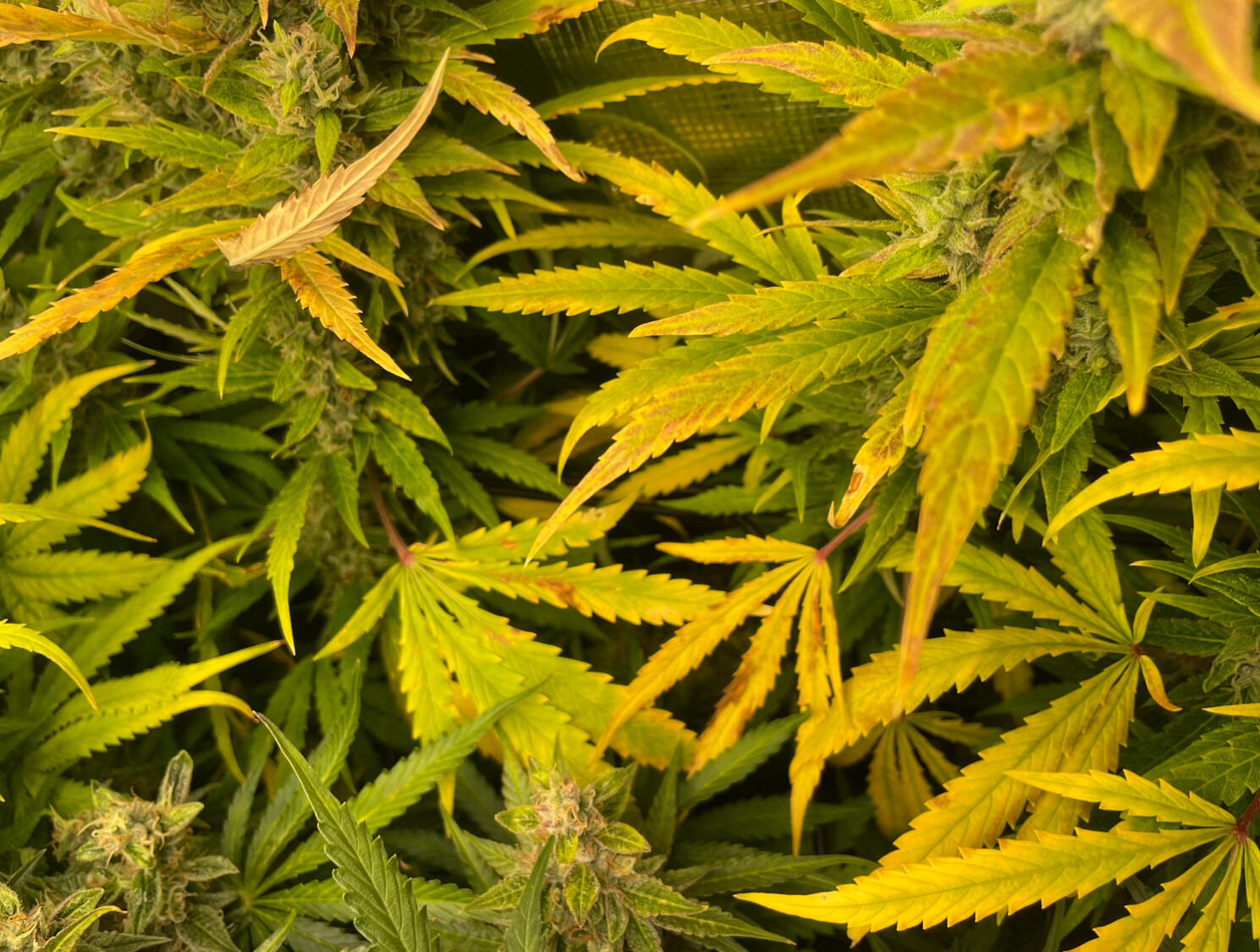 Alle hellen Stellen sind nur bei dieser Pflanze, eigentlich bekommen alle drei genau das Gleiche und werden aus einem Tank mit Blumat versorgt. Herbstelt die schon?